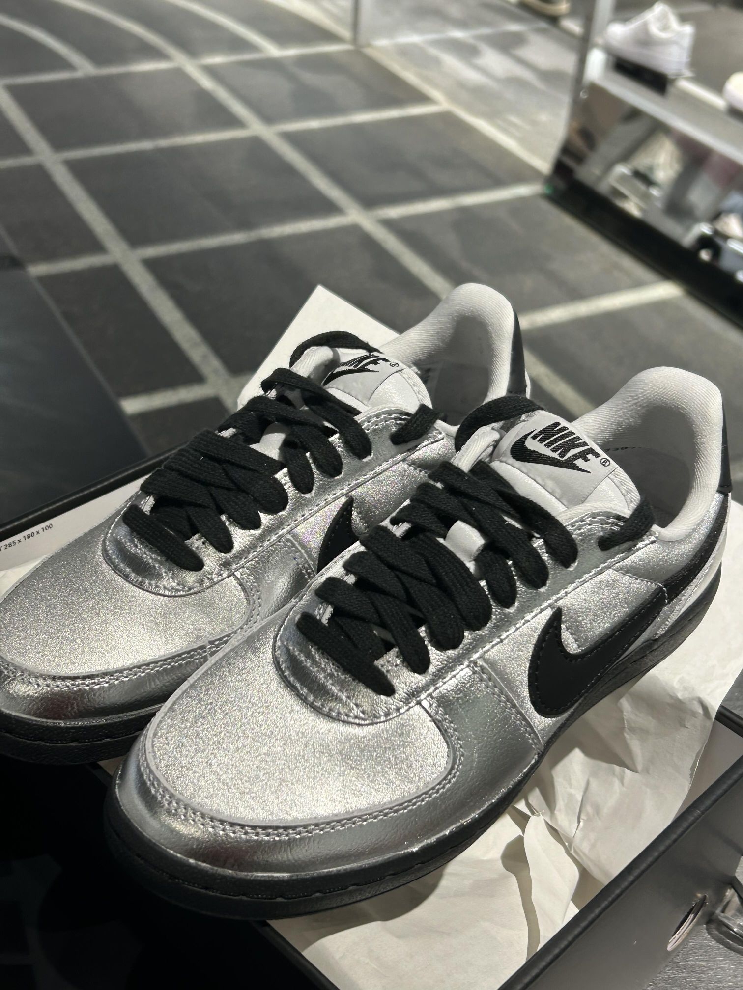 分享今日份好穿搭的鞋子~ 银色Nike鞋可搭配带点小波点的白袜子 简单又好看 日常这么穿舒服又亮眼🧐 感觉走路都带风 🍃 咱就是说 舒服和好看这不就都拿捏住啦🥰