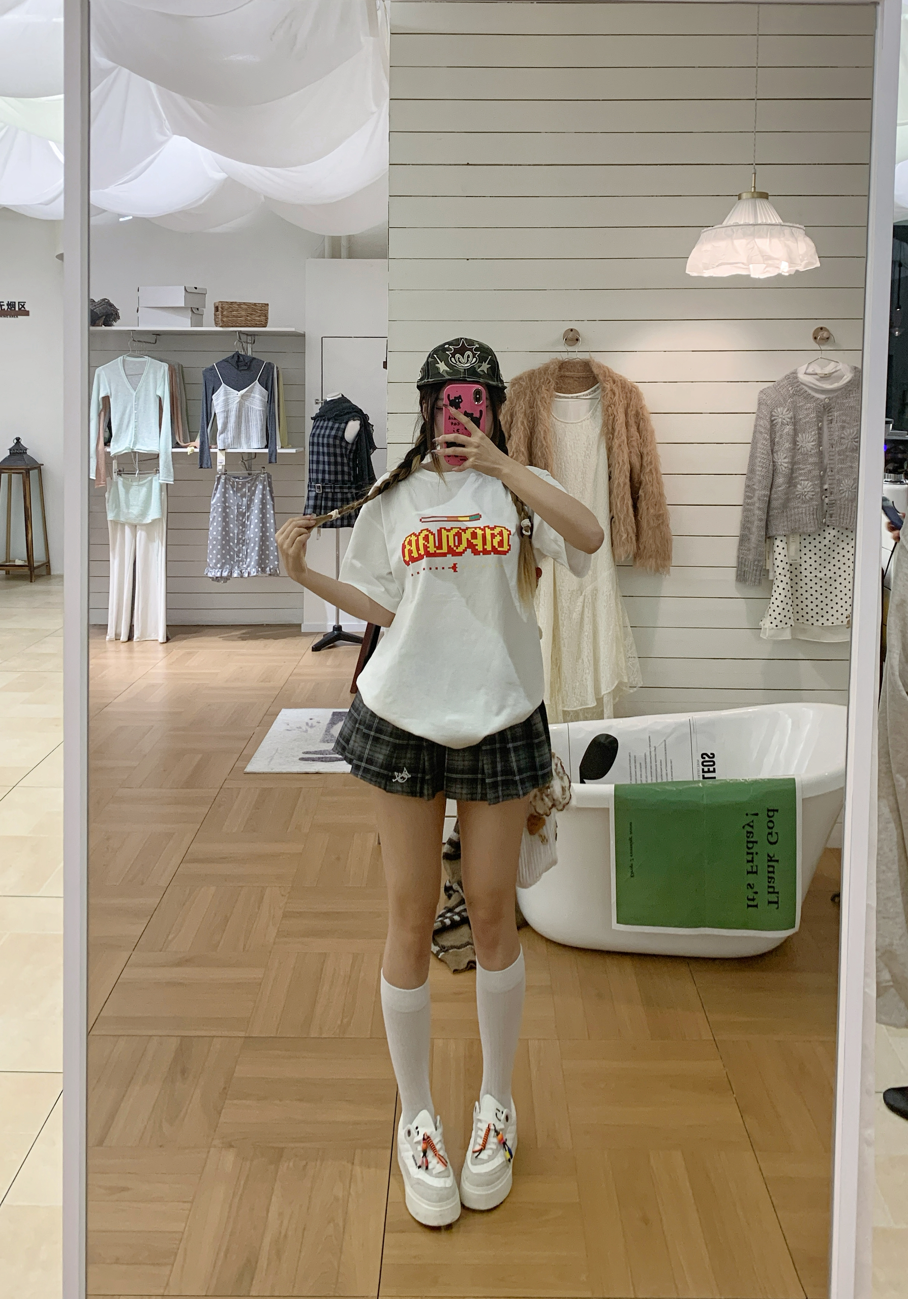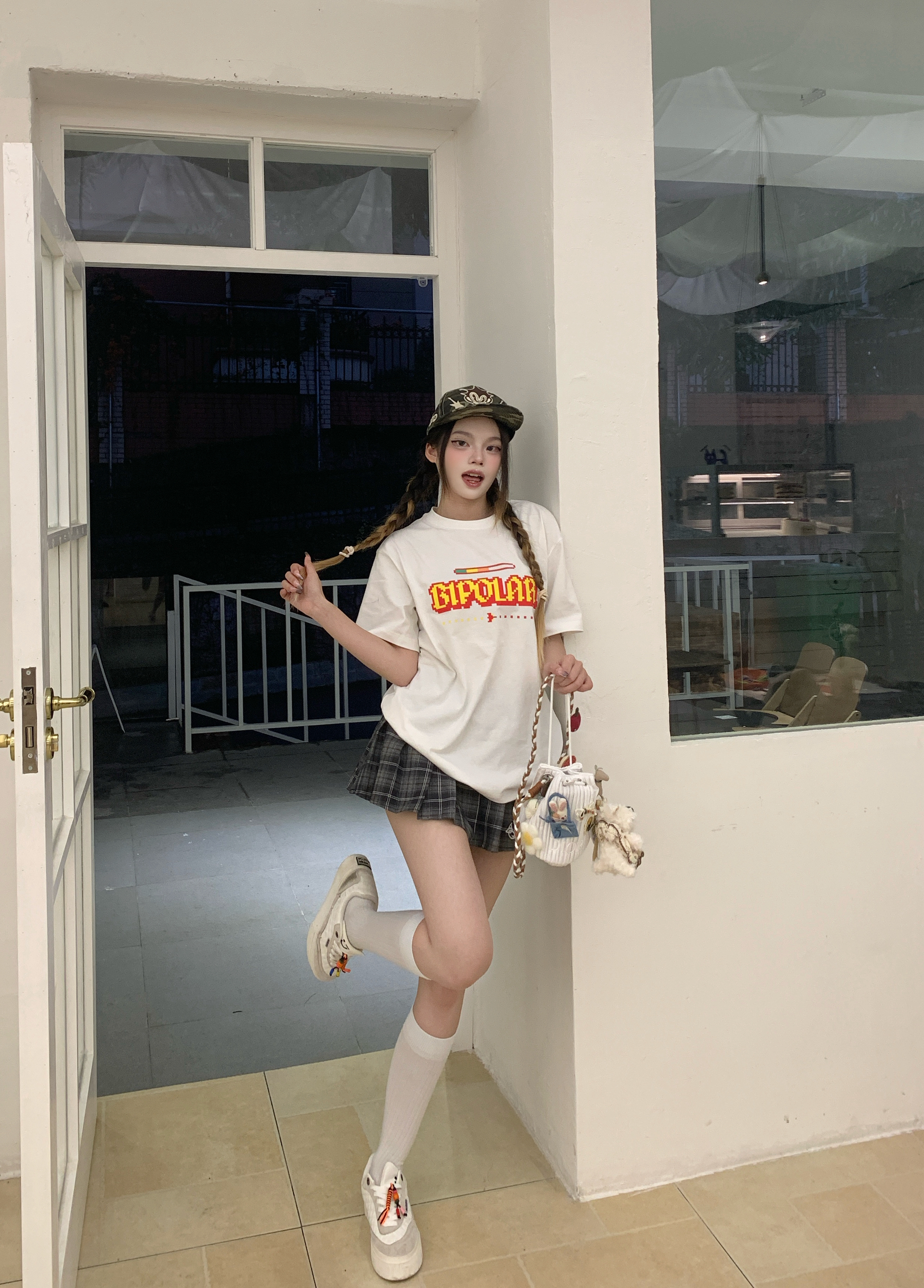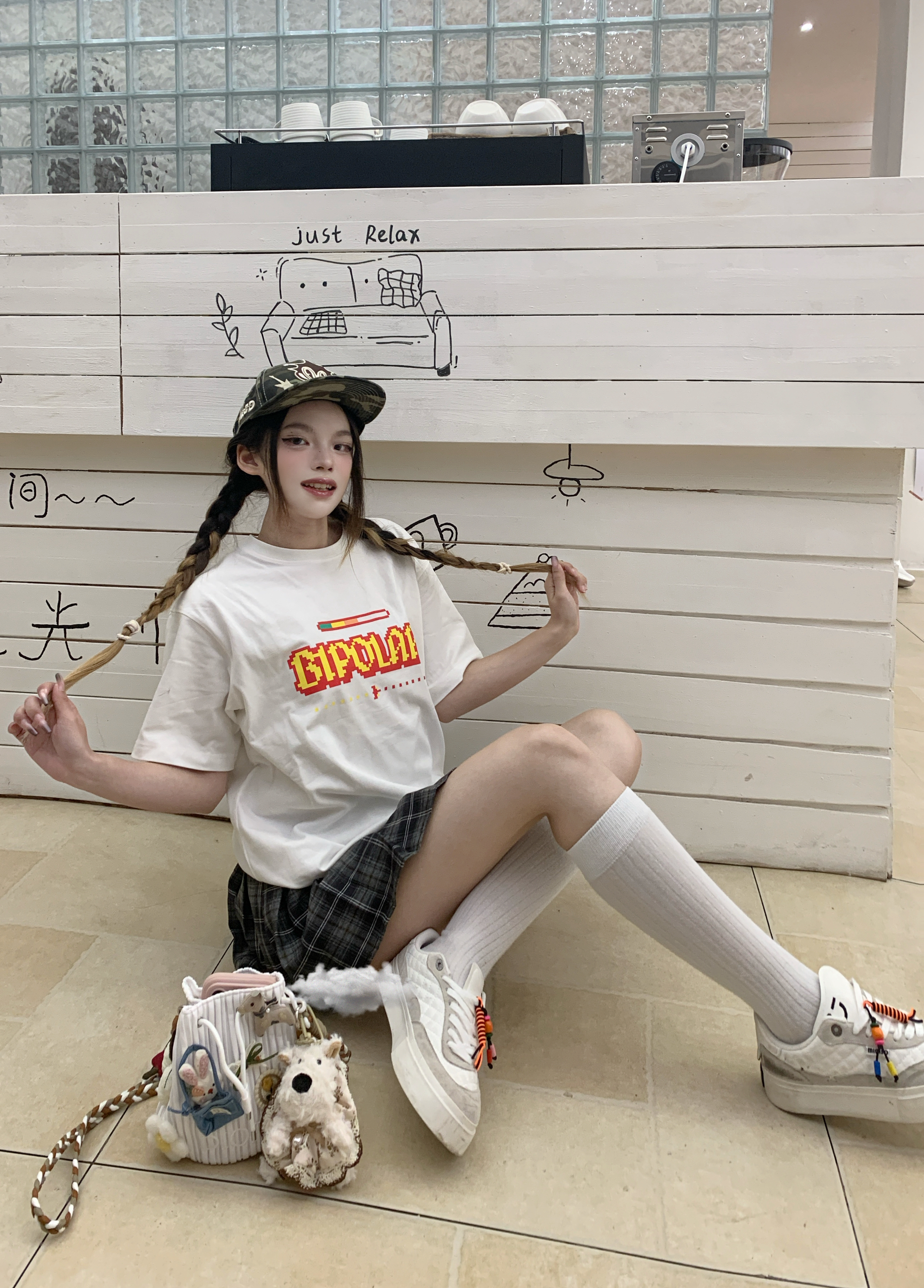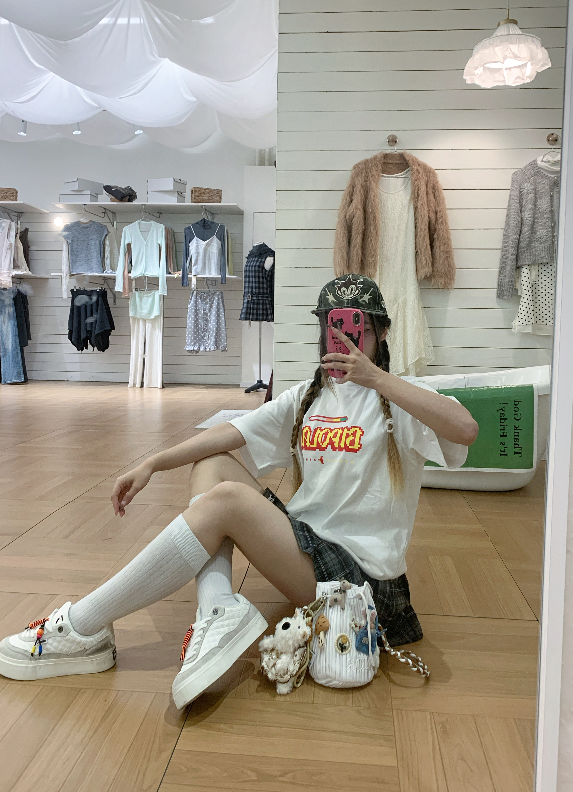 今天是美式校园里的像素甜心🎮 oversize白T+格纹百褶裙 像素风印花自带美式滤镜,随便搭都很出片📜 双麻花辫+棒球帽,美式校园感满满🩵 白袜+厚底鞋,腿长比例瞬间优化 再挂个可爱小包包🎀 日常出街、探店拍照都超合适~ 我165/96 穿的s