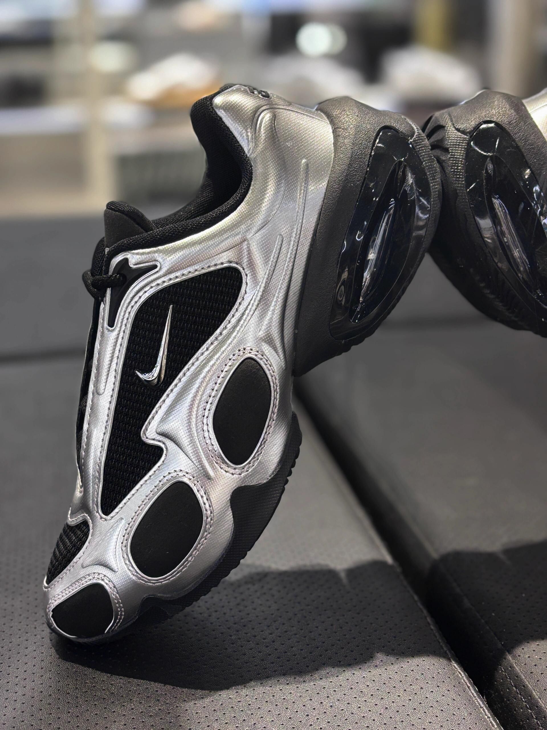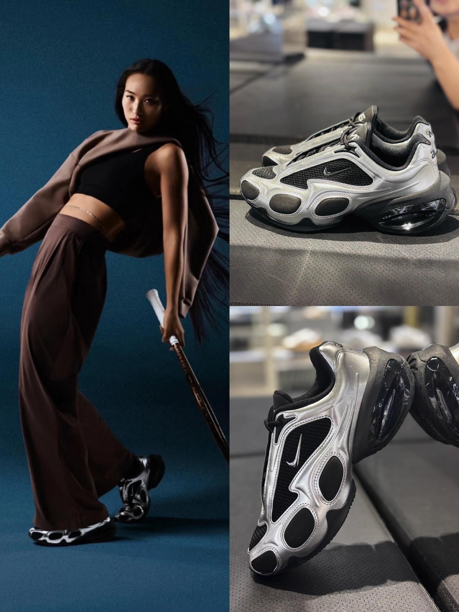 耐克新的鞋友哟,很有未来感的液态银配色 郑钦文同款👀柳智敏同款 很有未来感的一个配色 银黑色真的帅晕了!配上中筒袜更加好看!!这个夏天的逛展穿搭有了🖼️ 偷偷长高5cm」心机buff!👉 增高的流畅足弓线条太绝了!上脚瞬间腿长「咻——」拉到脚踝!穿鲨鱼裤像开了长腿特效,配阔腿裤走路带风~ 很适合在外面走一天的时候穿~
