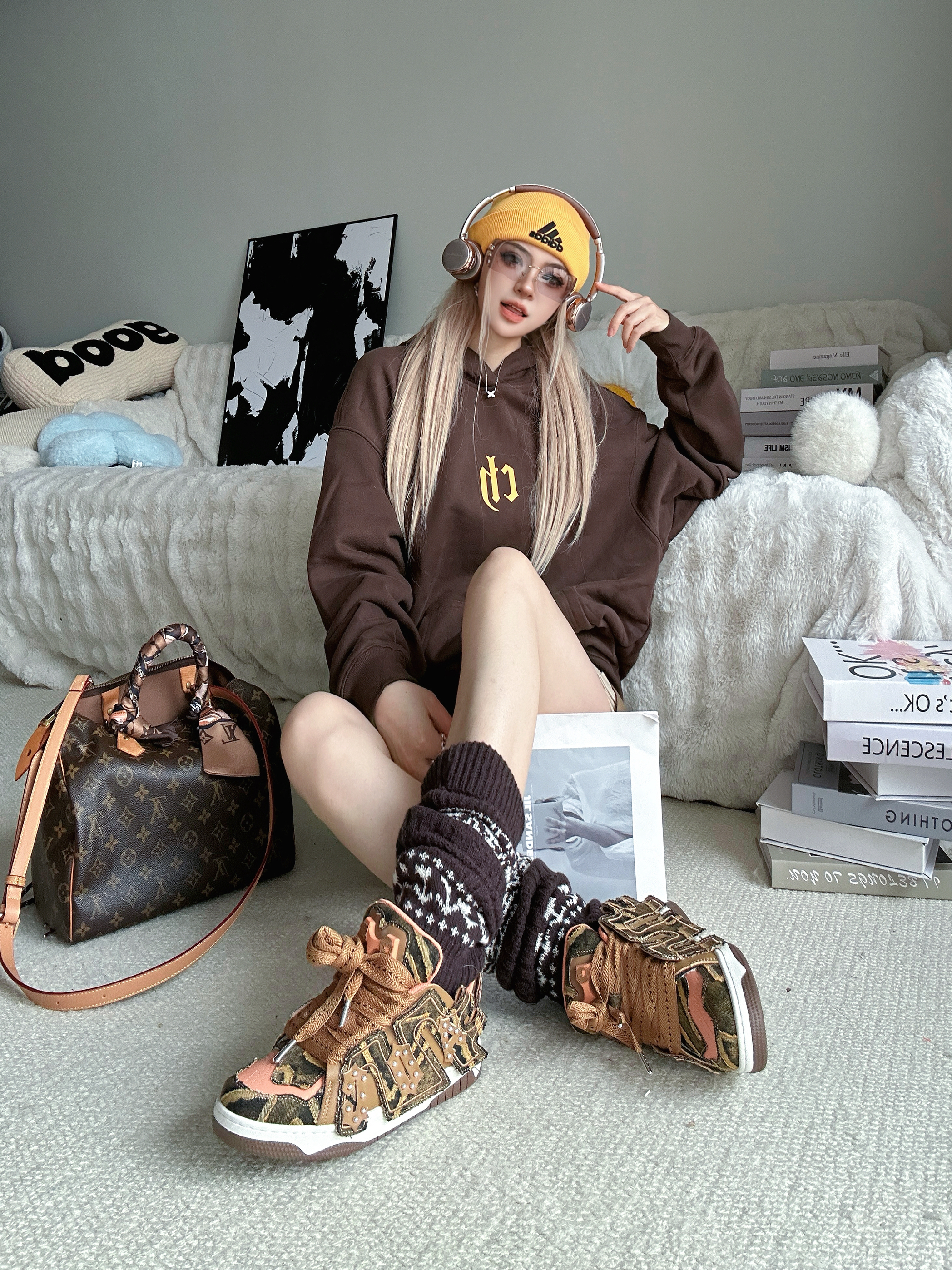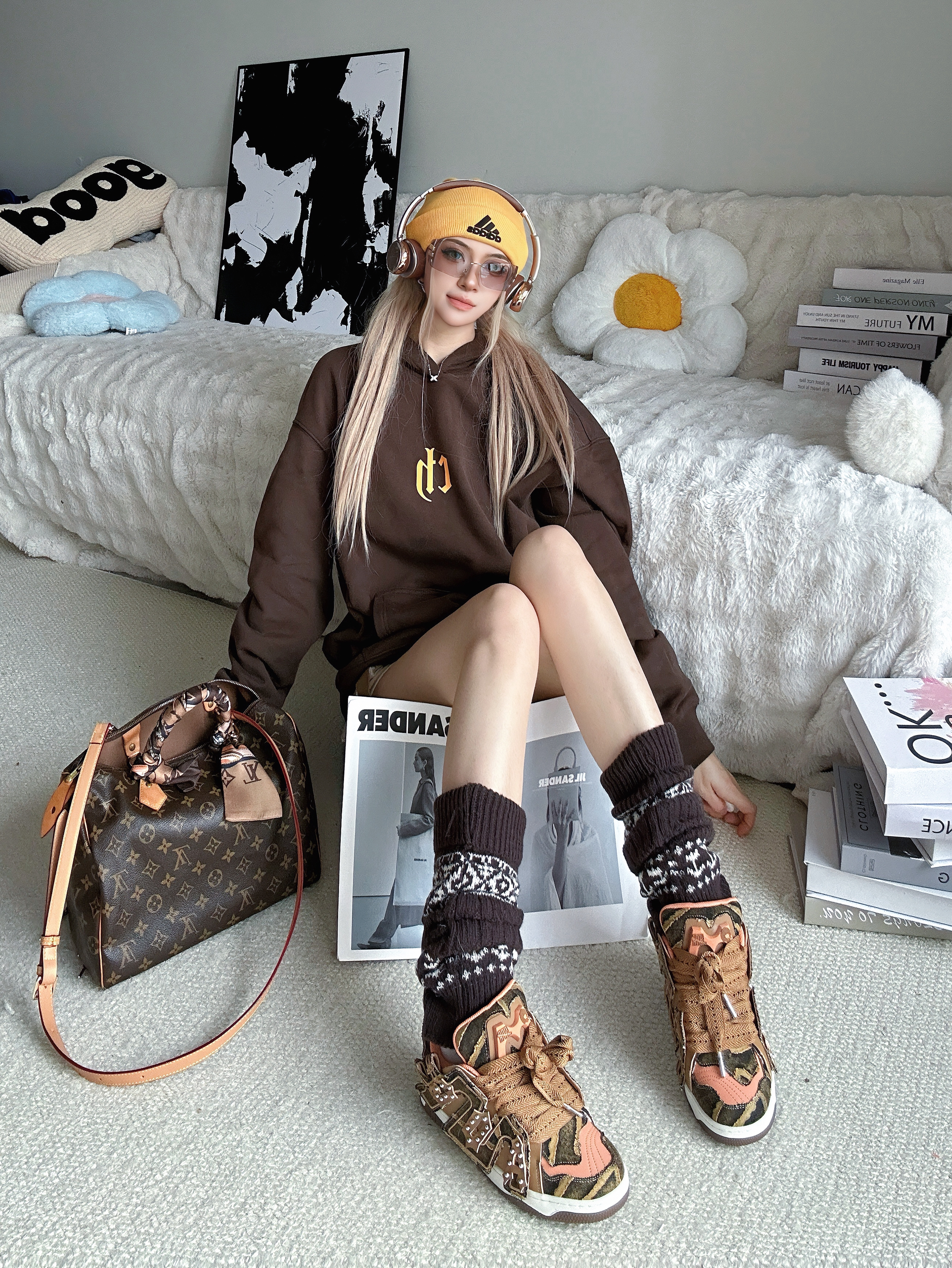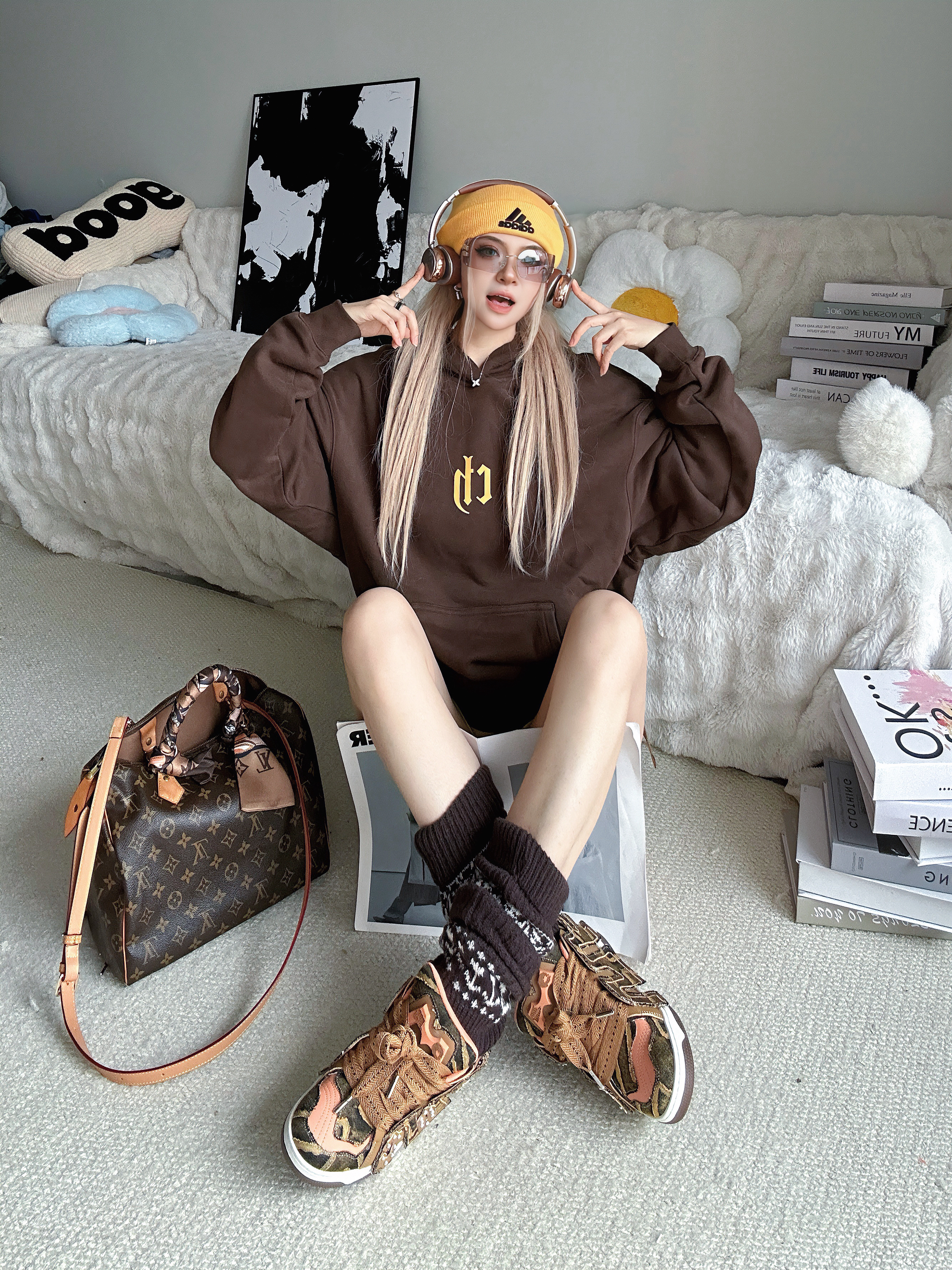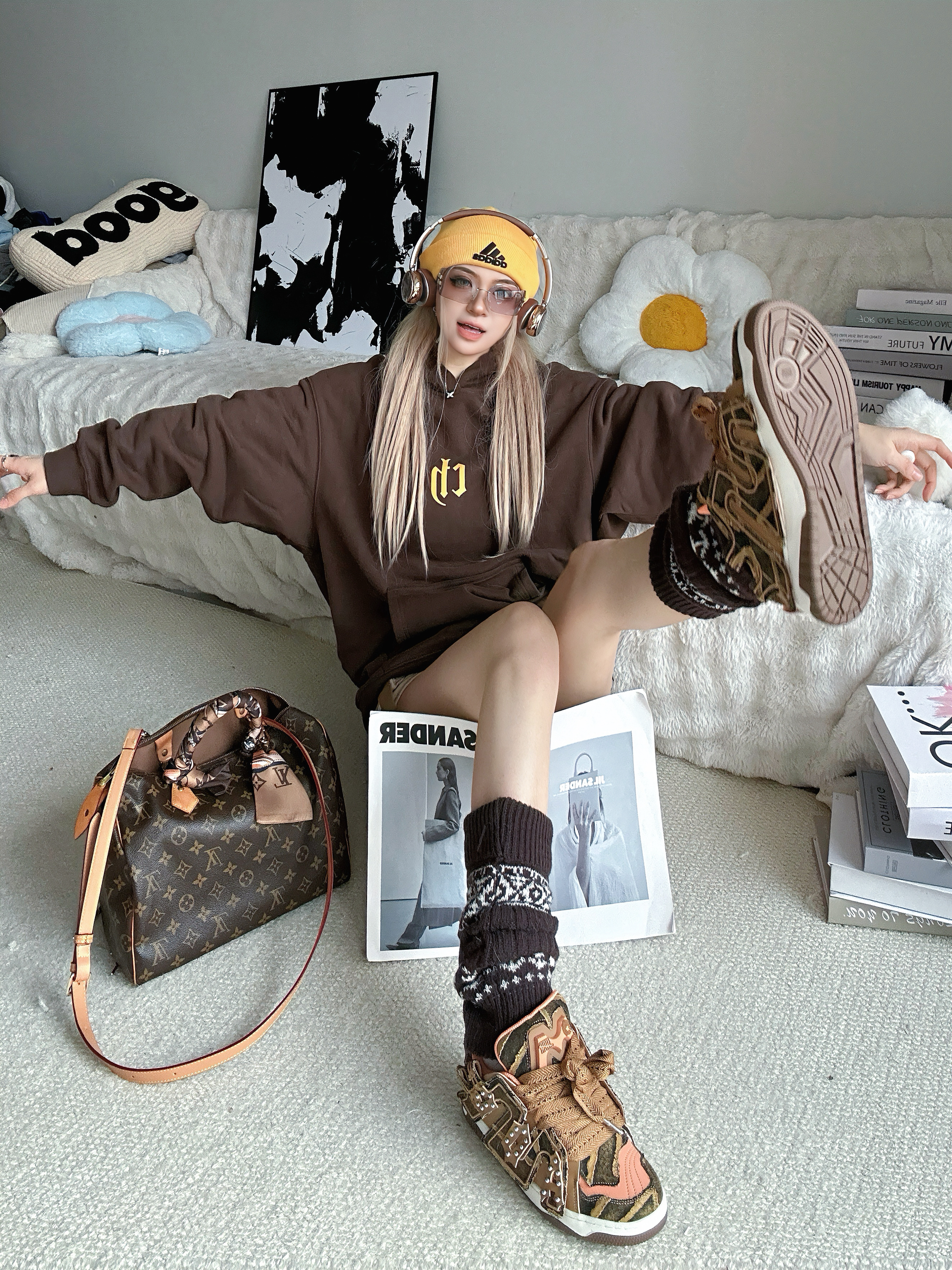 秋冬真的好爱棕色系哦(ฅ•.•ฅ)ﻌﻌﻌ♥️ 今日简简单单(◍•ᴗ•◍)搭配一套棕色系Look ⬇️ 棕色连帽卫衣,简约ch字母 面料软糯舒适✅ 棕色费尔岛腿套➕棕色系面包鞋 大大的鞋舌,立体字母刺绣设计很有特色 脚感也是软乎乎的☁️ 搭配黄色针织帽点缀一下💡 整身配色和谐但又不单调有亮点 快来抄作业(◕_◕)/✏️