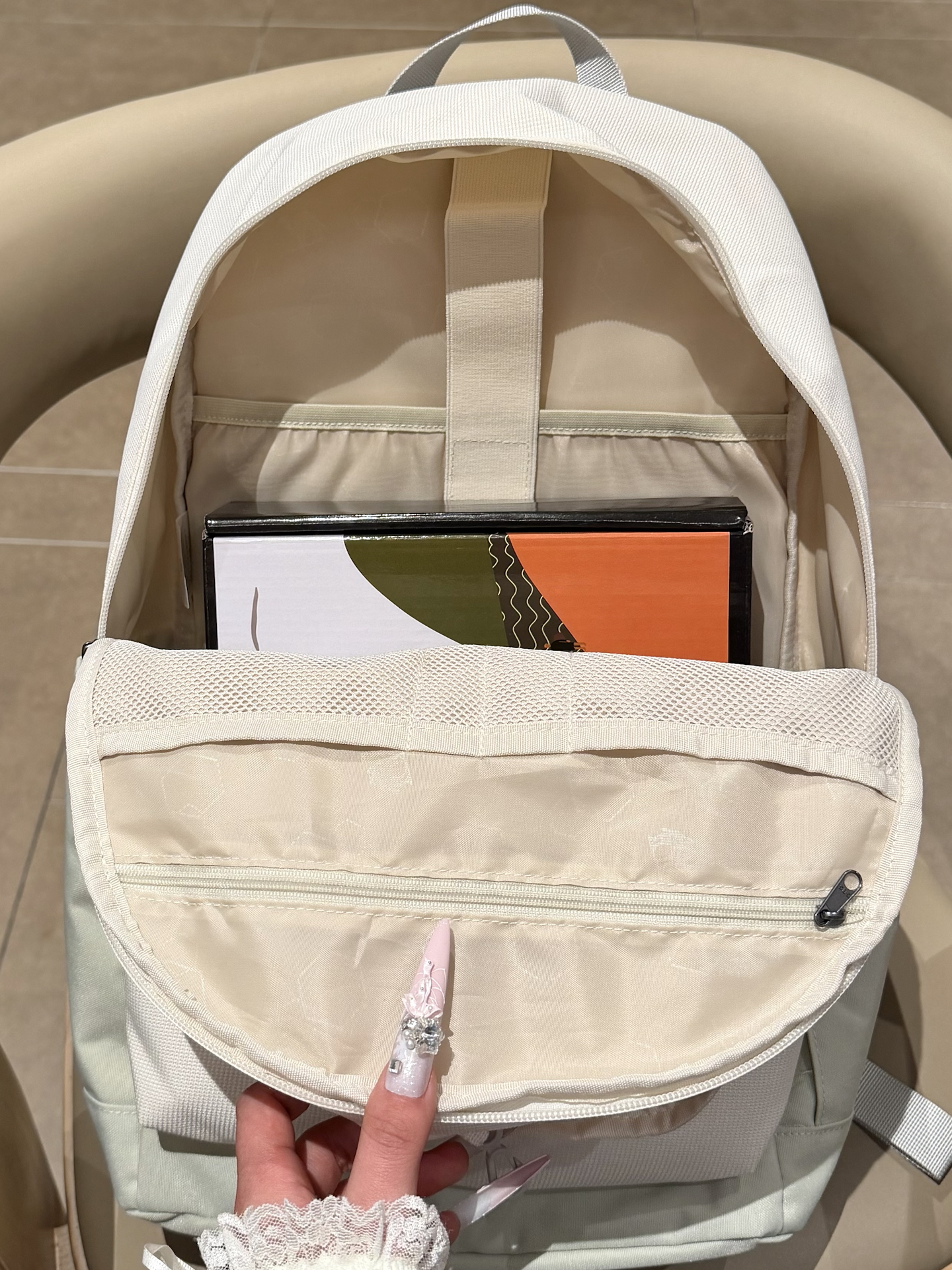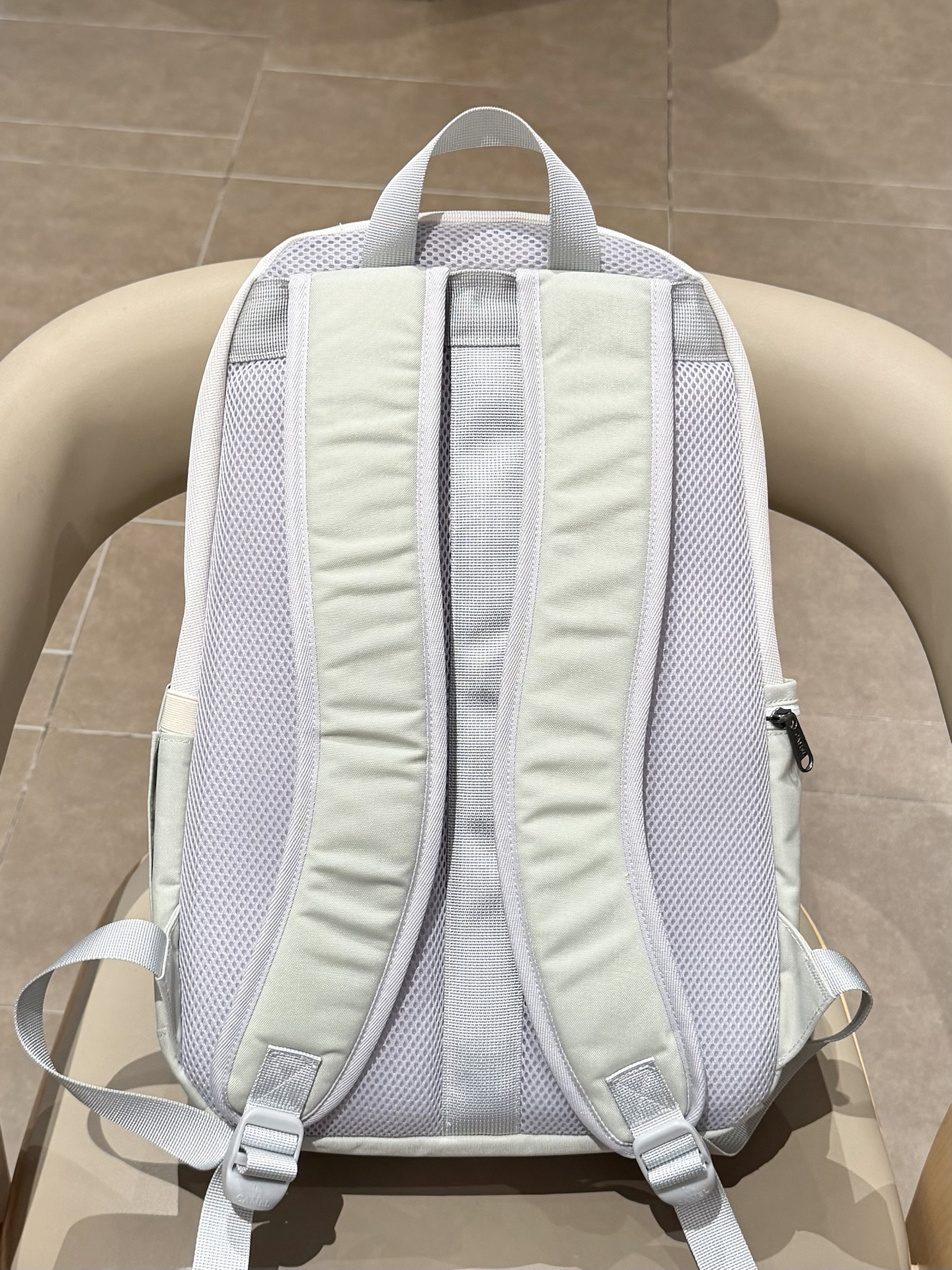 挖到这个米绿色双肩包后,我咋没早点发现它啊! 涤纶材质遇水没痕迹,隔层多能分类放东西,装平板也ok~ 宽肩带背久了不勒,早八、上课、通勤背都合适~ 就是颜色浅,得稍微注意清洁~