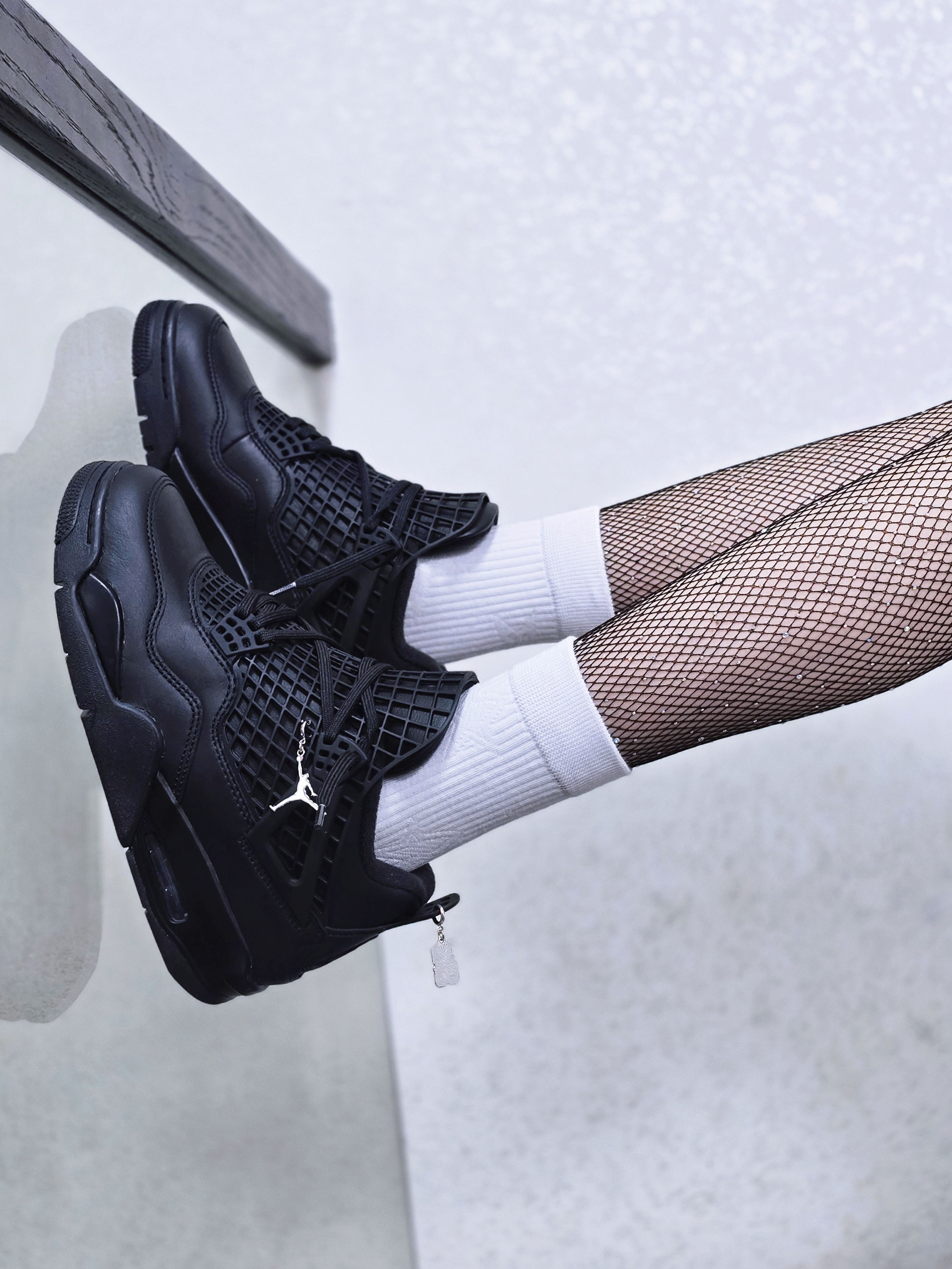 简简单单的黑白,穿出了带着小叛逆的酷感街头风~ 🥼:MOCO 皮毛拼接夹克~ 👟:Air Jordan 4 RETRO “NET/Black”