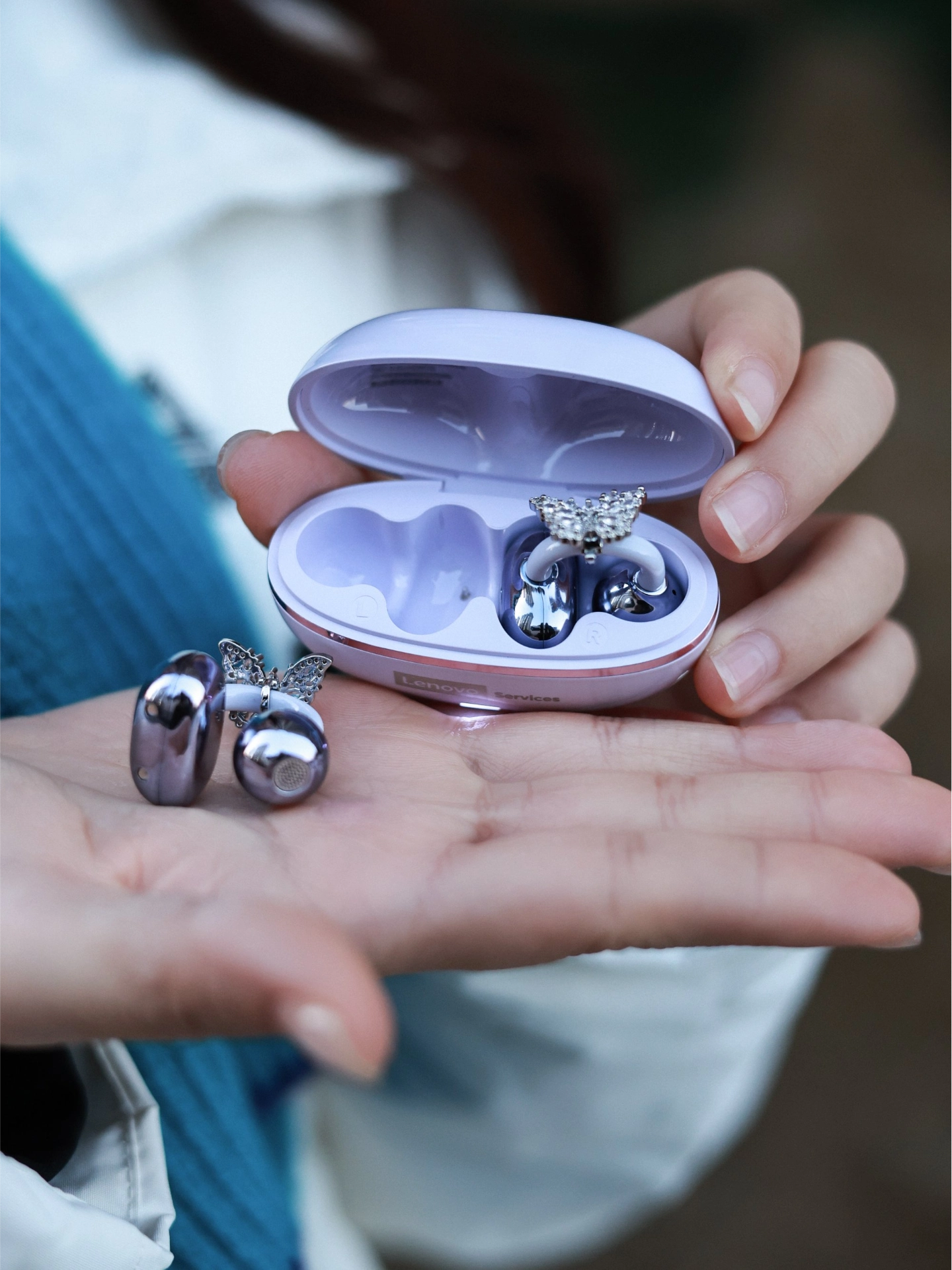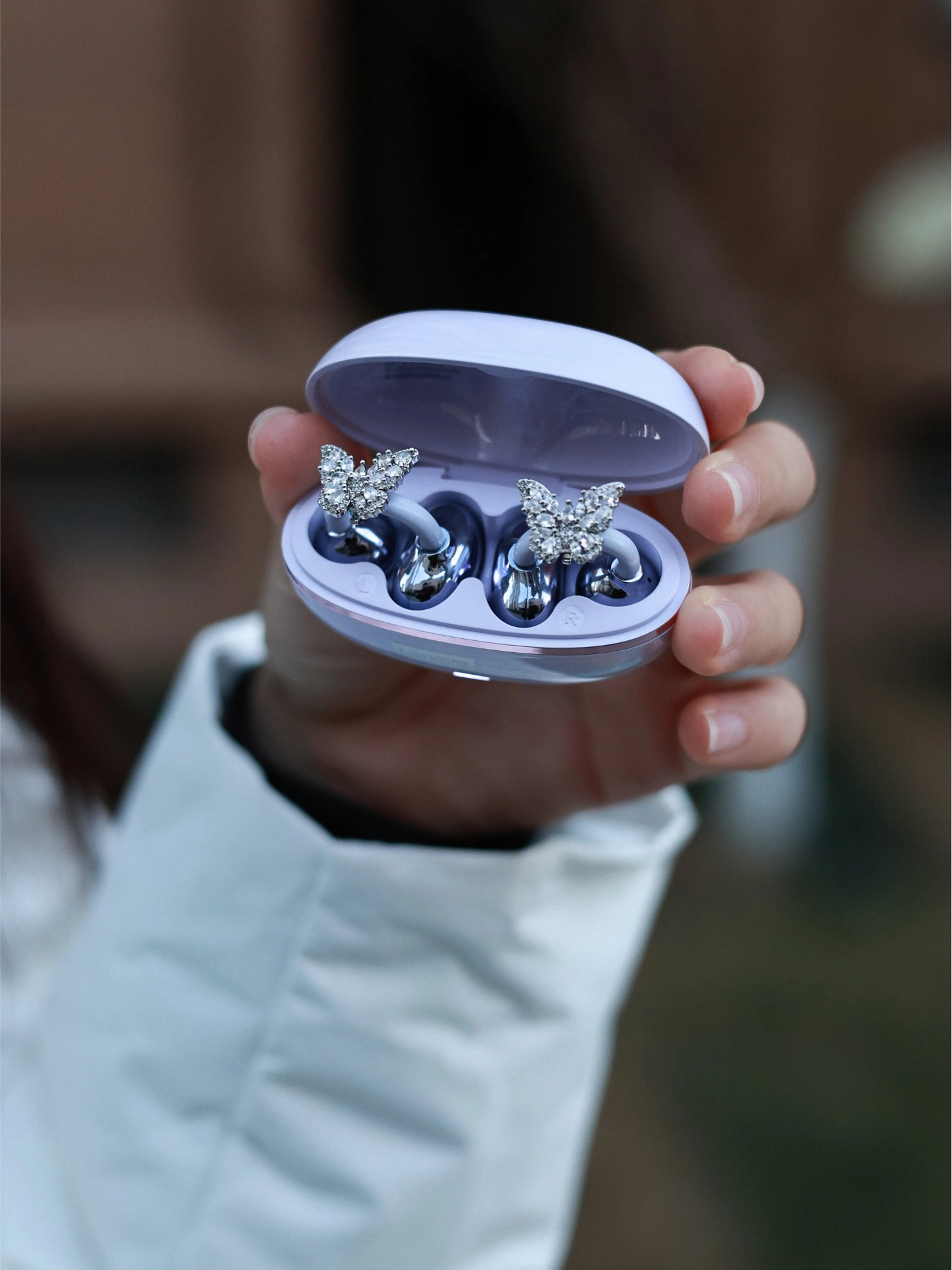 联想这款夹耳耳机好绝! 佩戴舒适还能当耳饰,满钻蝴蝶装饰blingbling✨。音质空旷清晰,操作也方便~体积小好携带,通勤上课随时听🎶。 就是没有降噪功能,环境吵时有点影响听歌体验🥹。