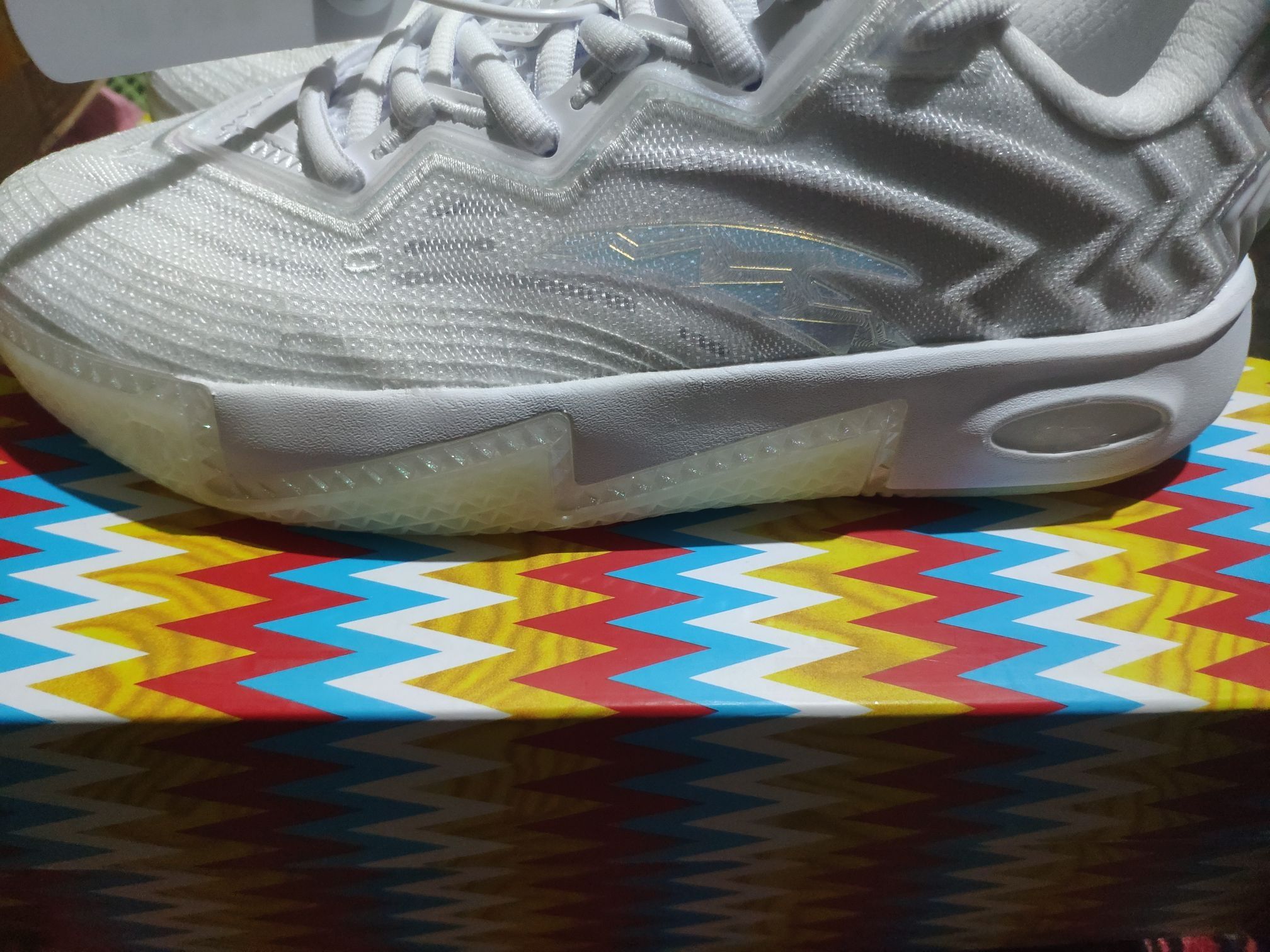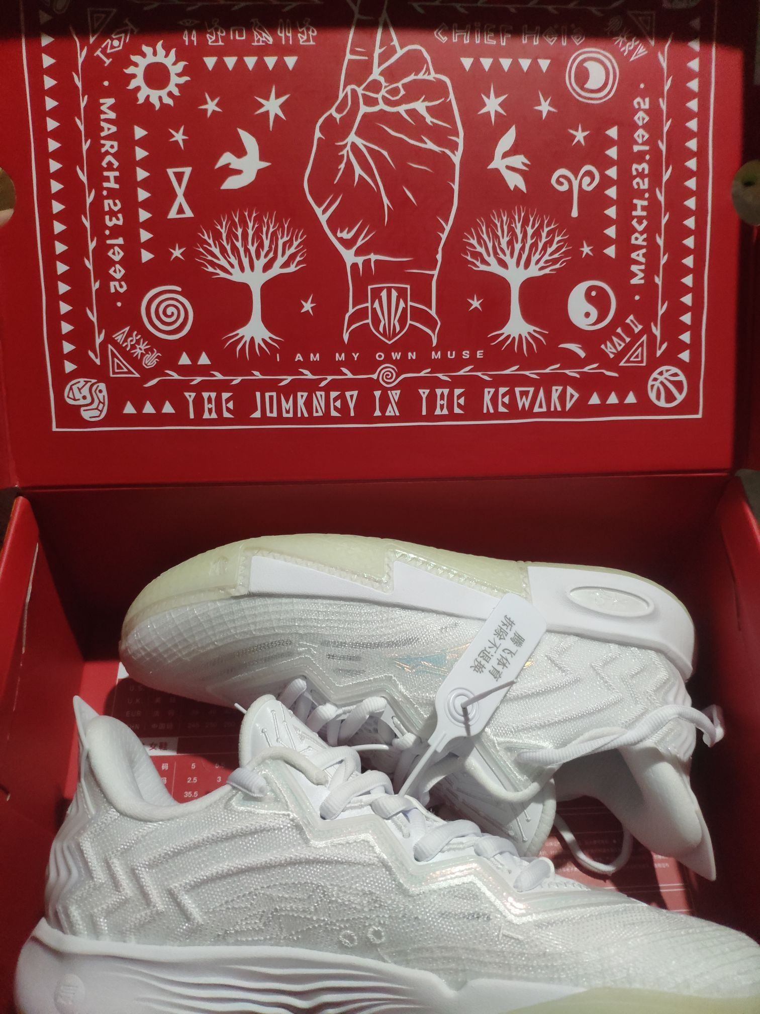 这双安踏欧文2堪称后卫球员的实战利器,纯白配色搭配细腻纹理,颜值清爽又兼具潮流感,鞋盒上的文化图腾更暗藏设计巧思。全掌氮科技中底调校得宜,前掌贴地感出色,启动迅猛不拖沓,后掌软弹适中,能轻松承接突破与跳投的双重需求。鞋身厚实海绵填充带来“沙发级”包裹,侧向支撑到位,变向时安全感拉满。外底纹路抓地强劲,干地实战能提供清晰的制动反馈。虽对宽脚兼容性一般,需磨合适应,但综合性能与性价比,无疑是学生党与欧...