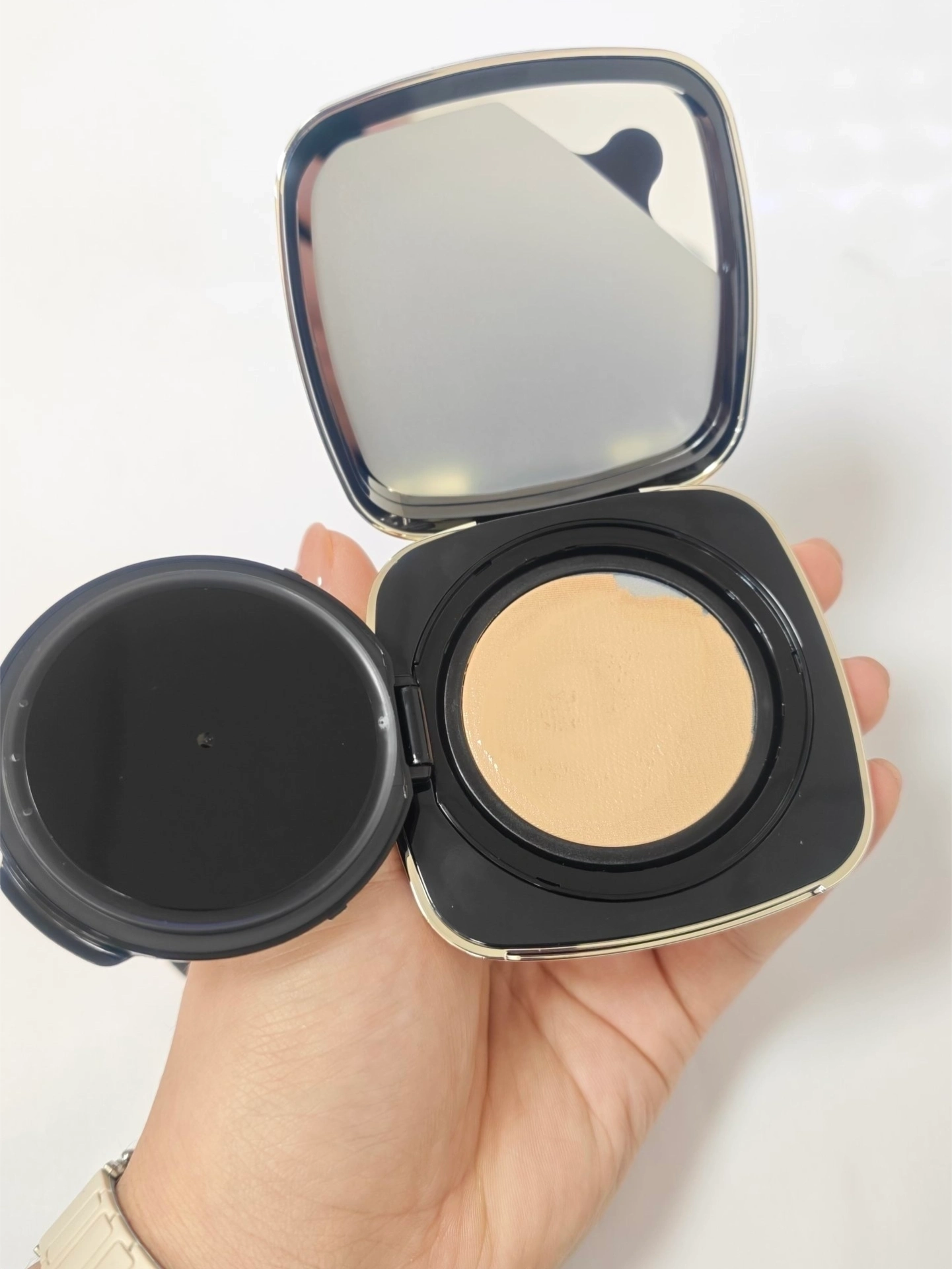 我抢到烟花限定版黑金气垫啦,算不算第一批收到的幸运鹅🤭 包装精致还有分量,质感这块拿捏住了~我选的W20,对我这黑黄皮来说有一丢丢白,宝子们选色号可以参考下~不过遮瑕真的惊到我,用了之后像开了磨皮滤镜,对比超明显!而且它比我想象中润太多,我夏天油冬天干的皮肤,十点多收到直接上脸都没卡粉,早八人赶路时随便涂涂就能出门,真的很奈斯!双旦送女友也很合适,礼盒装仪式感拉满🎁 唯一小缺点就是我选色号没选好,...