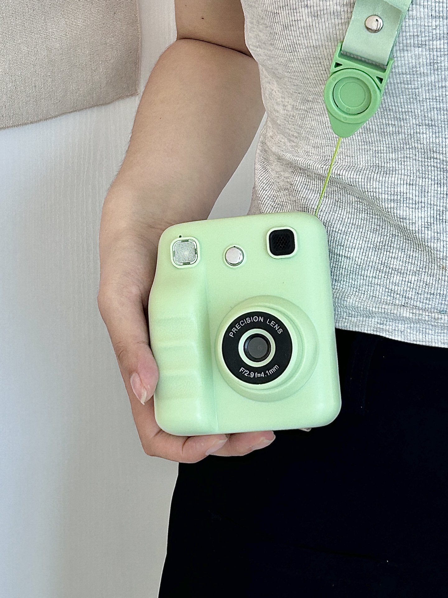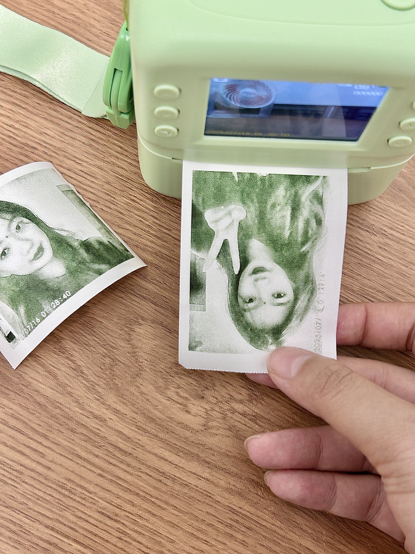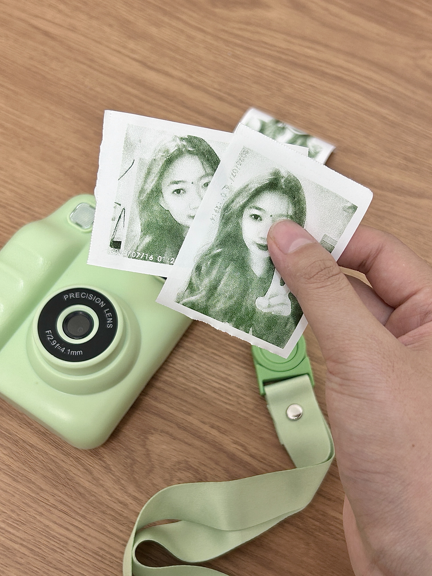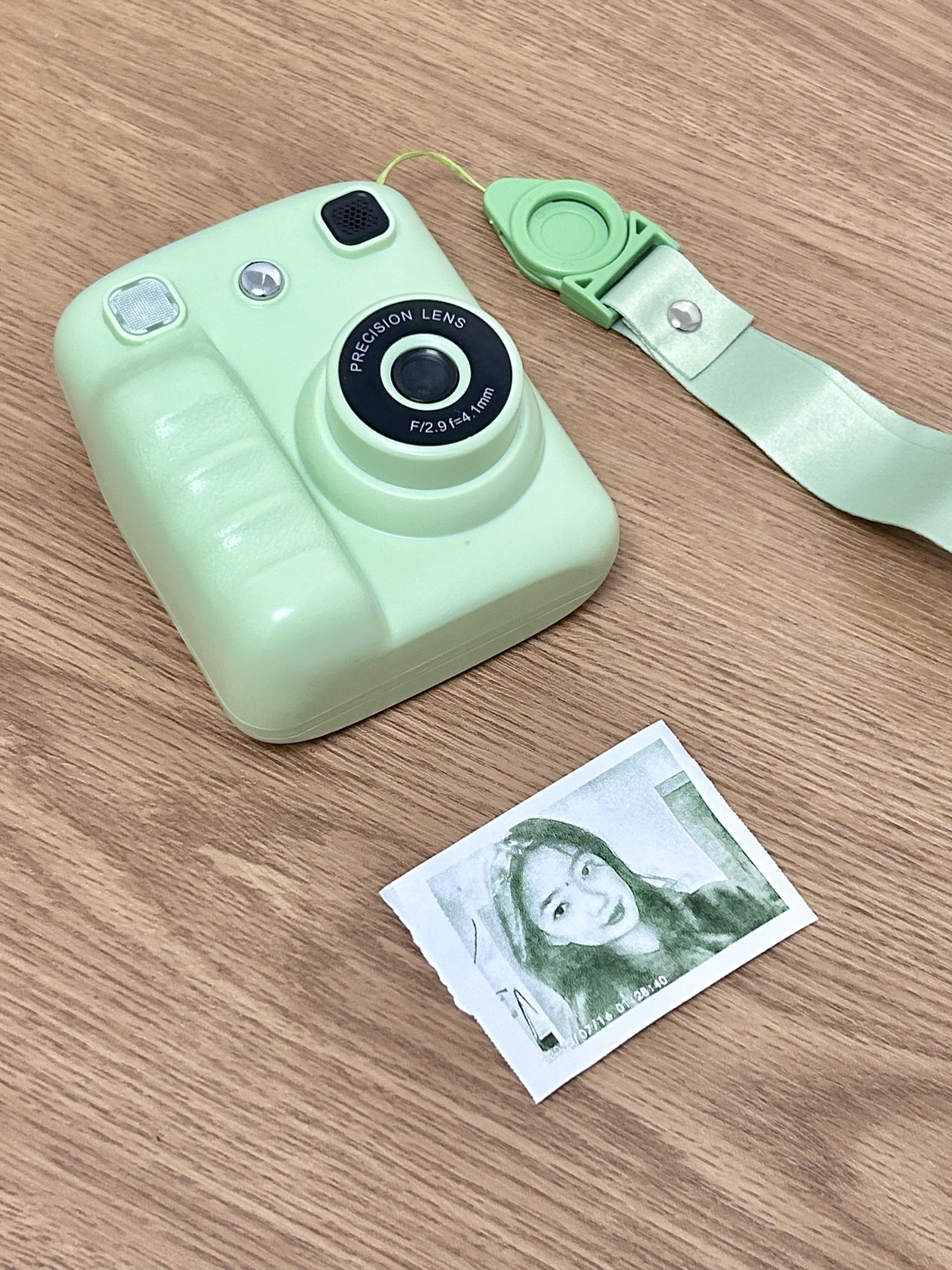 我发现这个绿色相机好清新呀~拍照清晰度还可以,即拍即打印的成片有复古感🎞️。挂脖子上带出门很方便,国庆出去玩靠它记录蛮省心~就是打印速度要是再快些就更好啦✨