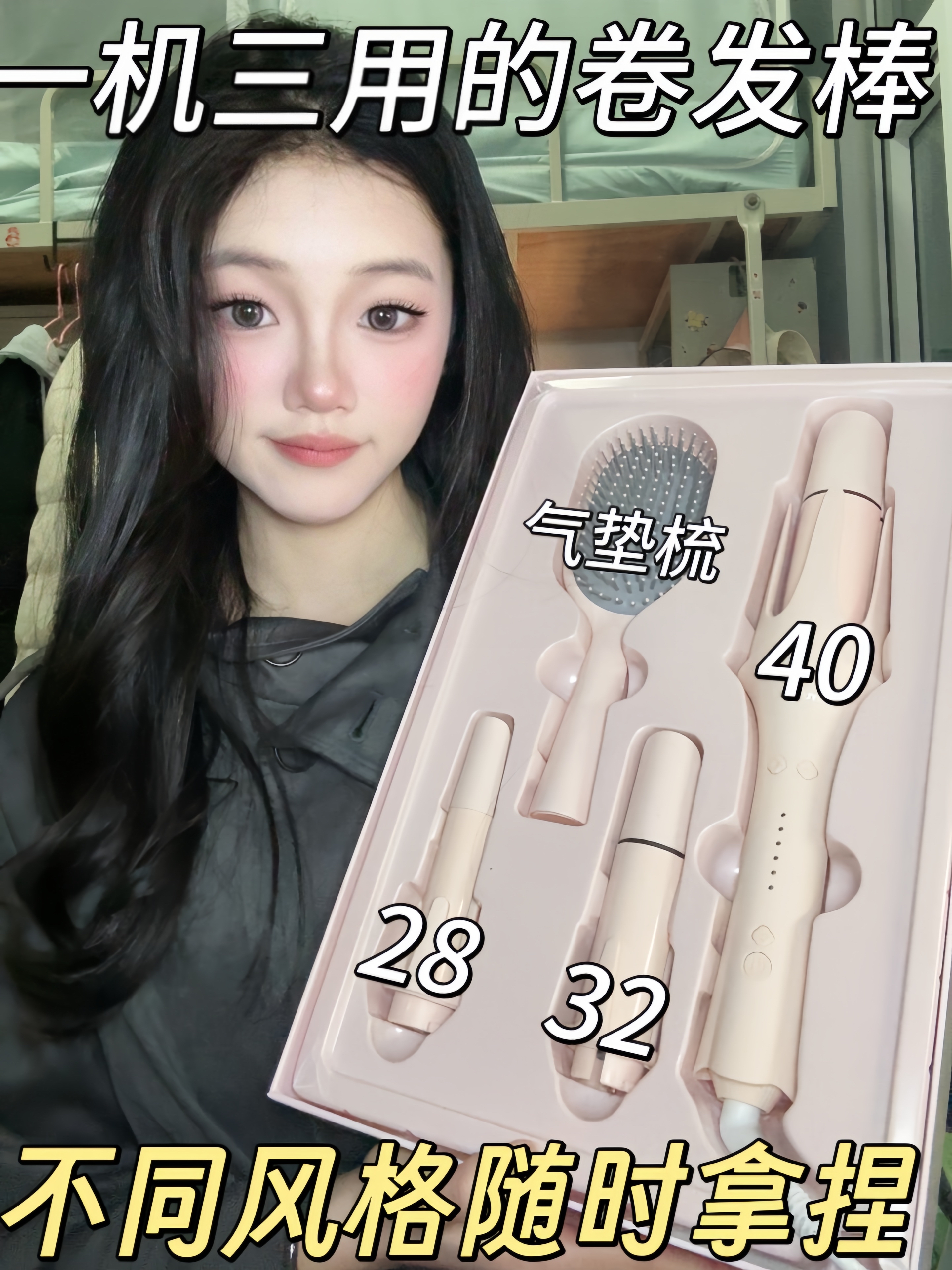 女孩子应该都少不了卷发棒吧 但是每次出门的话都要带一大堆 不仅占空间 而且行李也很沉 还好有这个夕会家的卷发棒 在里面的话有32 38和一个直发梳 加起来的话是有三个头 而且还有一个小梳子和两个小夹子 它不仅可以直发 也可以卷发 都能轻松拿捏氛围感 需要的姐妹们可以来看一下哦