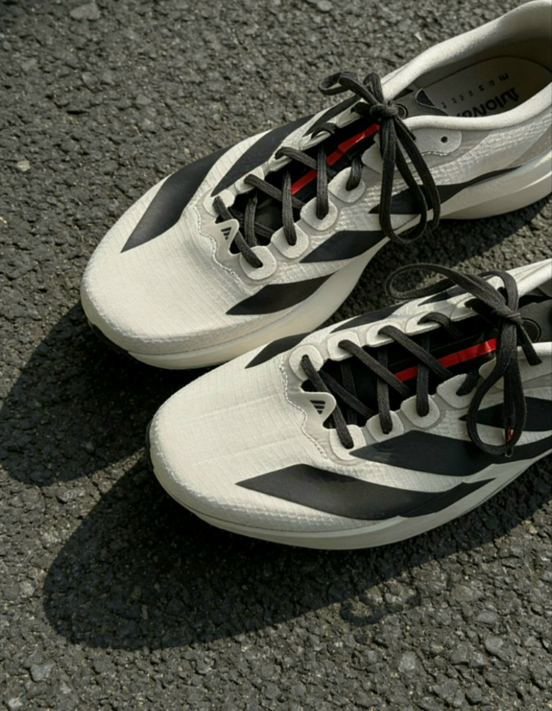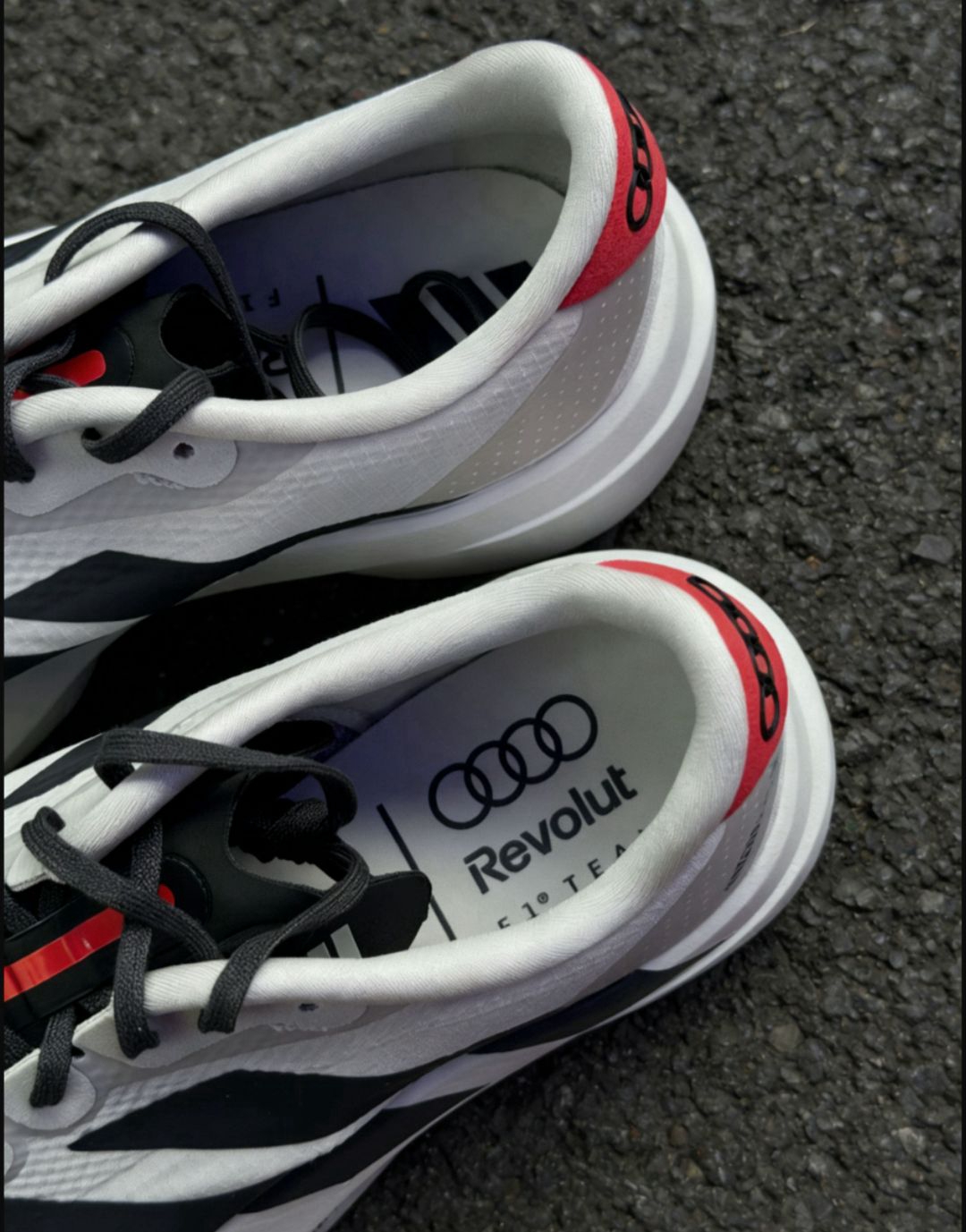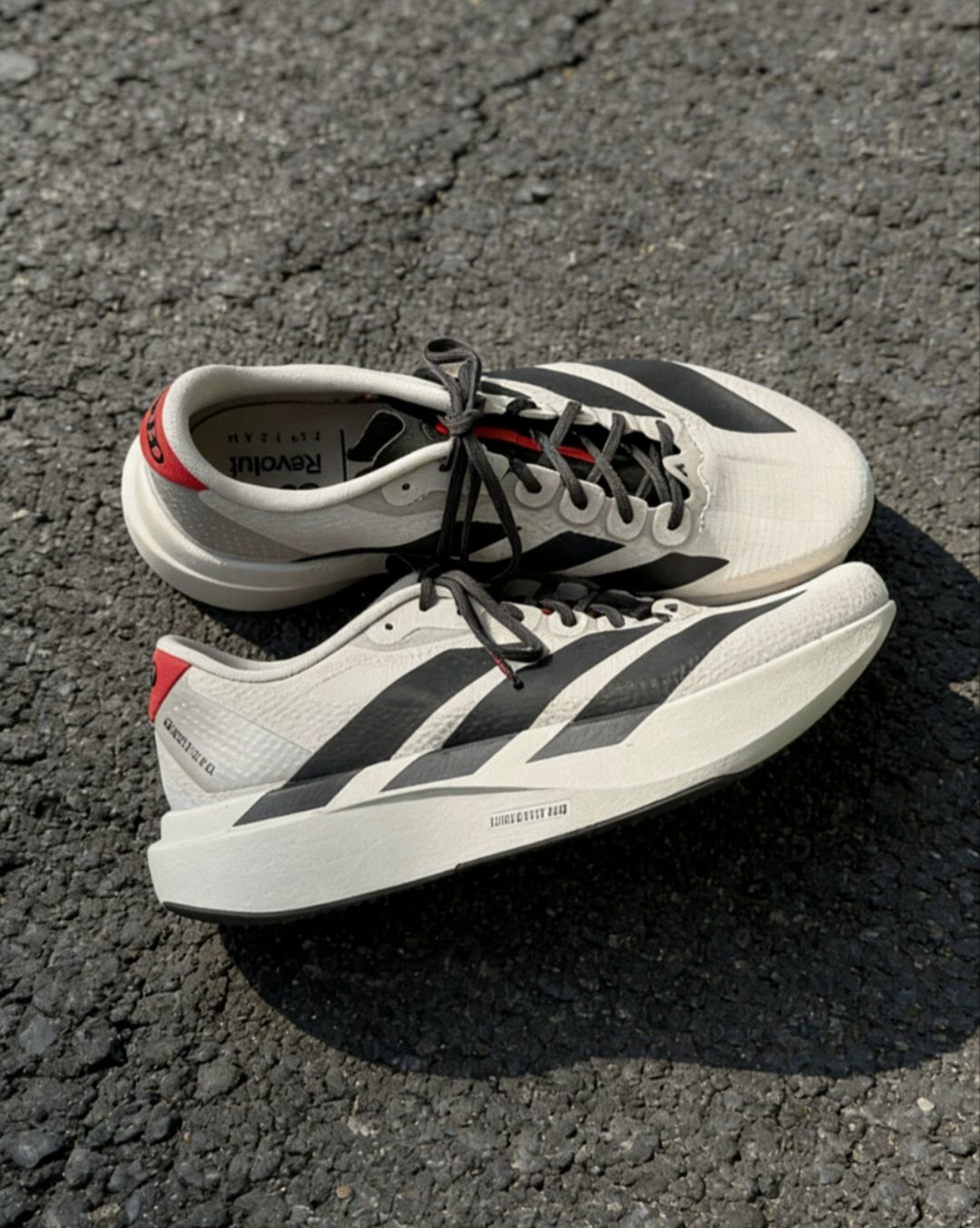 🏁 adidas ADIZERO EVO SL × Audi 联名测评:赛道基因与工业美学的碰撞 ✨ 外观设计:当跑鞋遇上 quattro 四驱魂 这双联名款在基础款的极简设计上,注入了奥迪的运动基因,辨识度直接拉满: - 配色与细节:米白主调搭配黑色三道杠,后跟标志性的红色翻毛皮饰片上,压印着奥迪四环Logo,致敬 quattro 四驱技术;鞋侧印有“ADIZERO EVO ...
