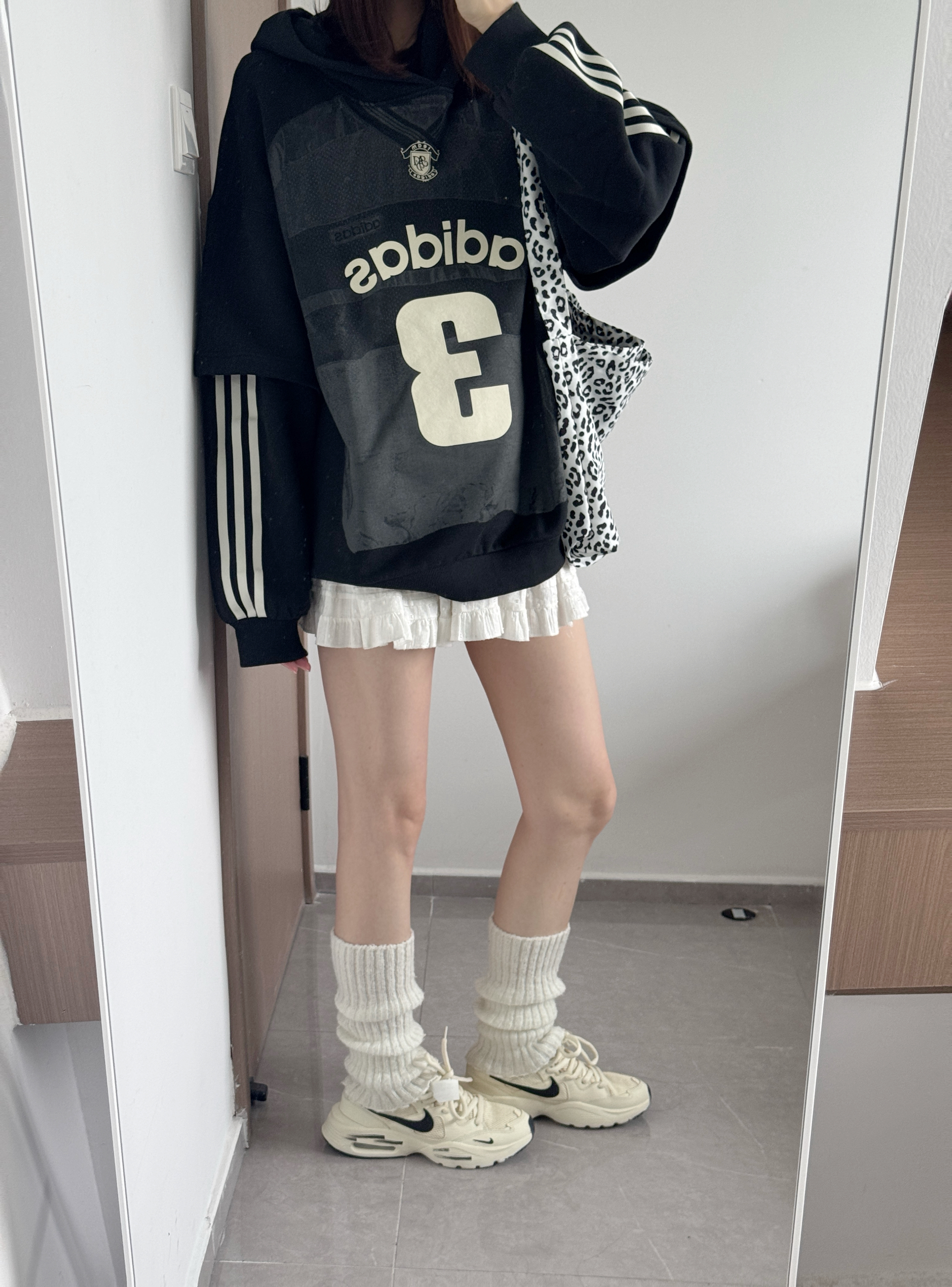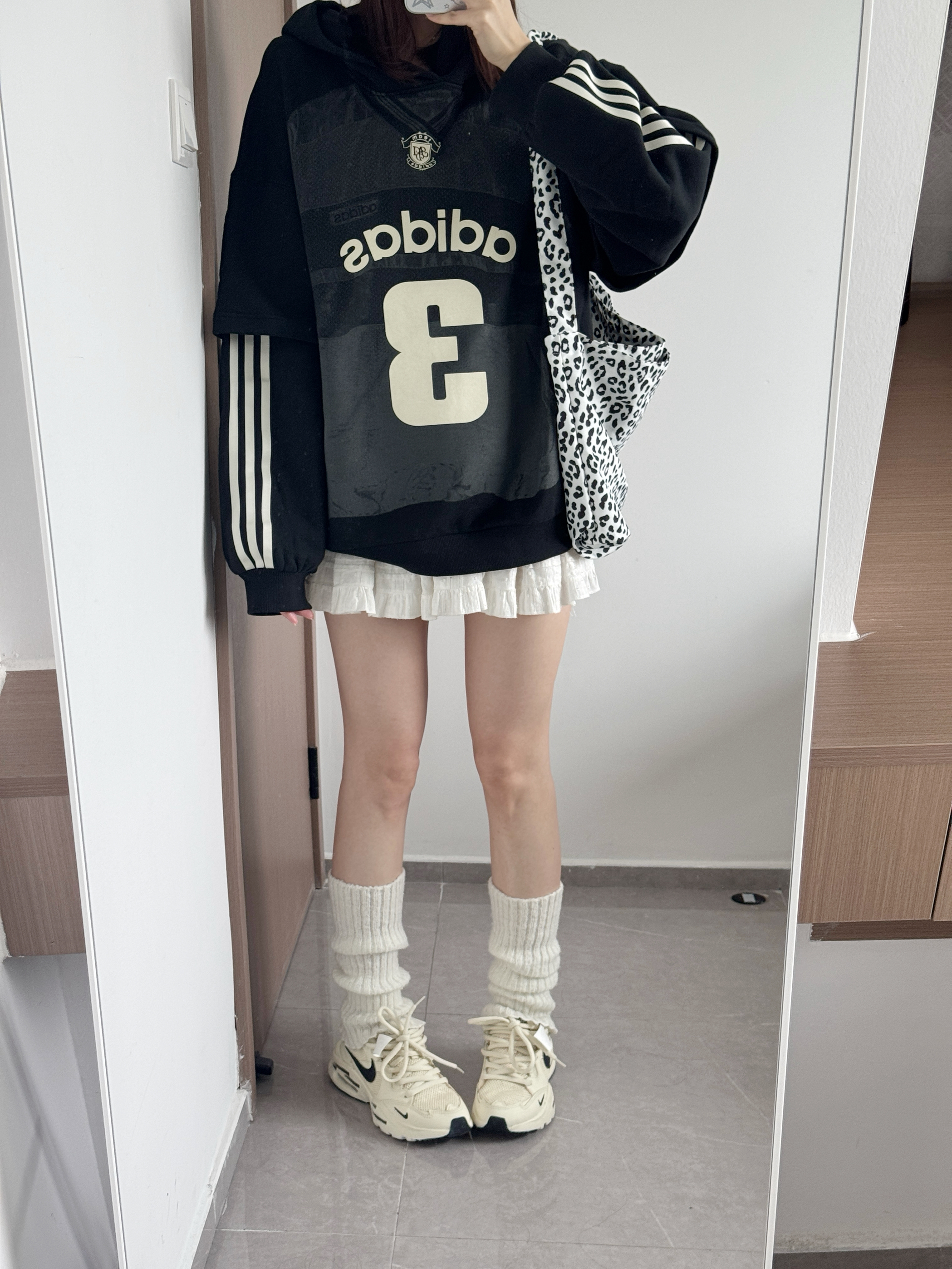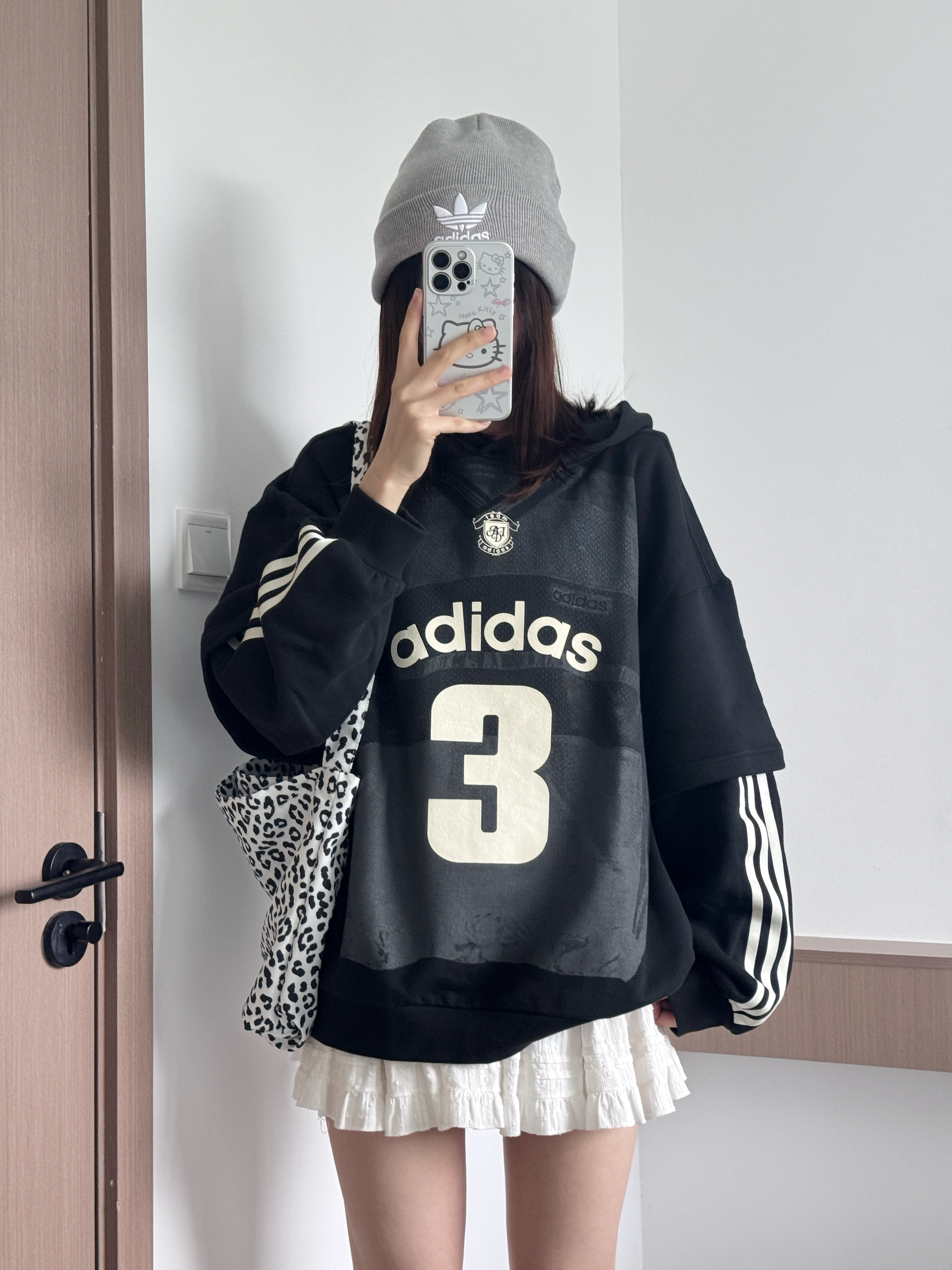 阿迪假两件卫衣也泰好看啦 大logo印花街头感十足 男女同款哦 不挑人 谁穿谁好看! 搭配蛋糕裙nike鞋一套包帅气的😎