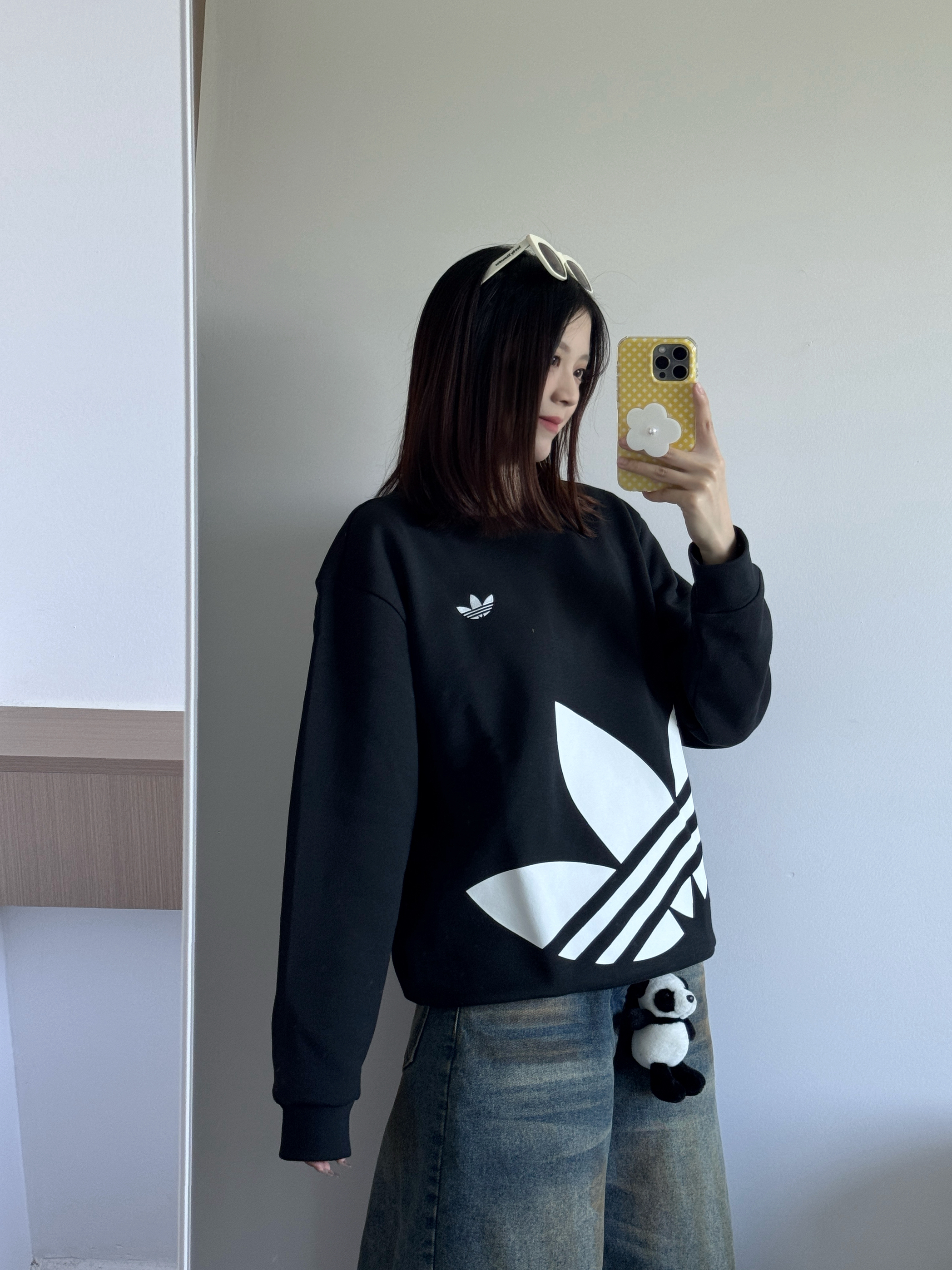 谁能拒绝阿迪卫衣呀!! 黑色真的百搭不挑人 怎么穿都不会过时~ 我170 50穿的s码哦✌️ 搭配七分裤一套简约帅气少年感十足😎