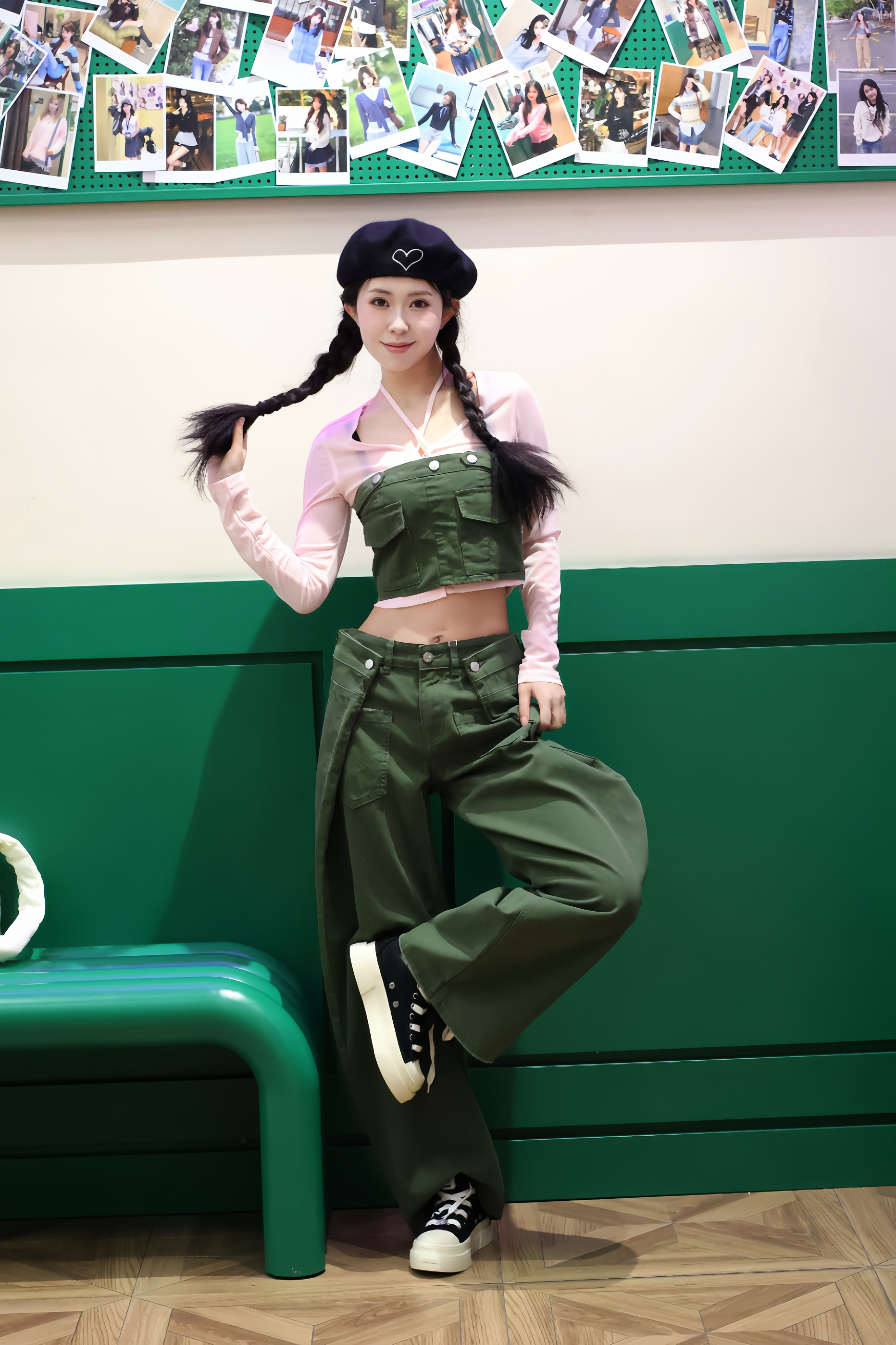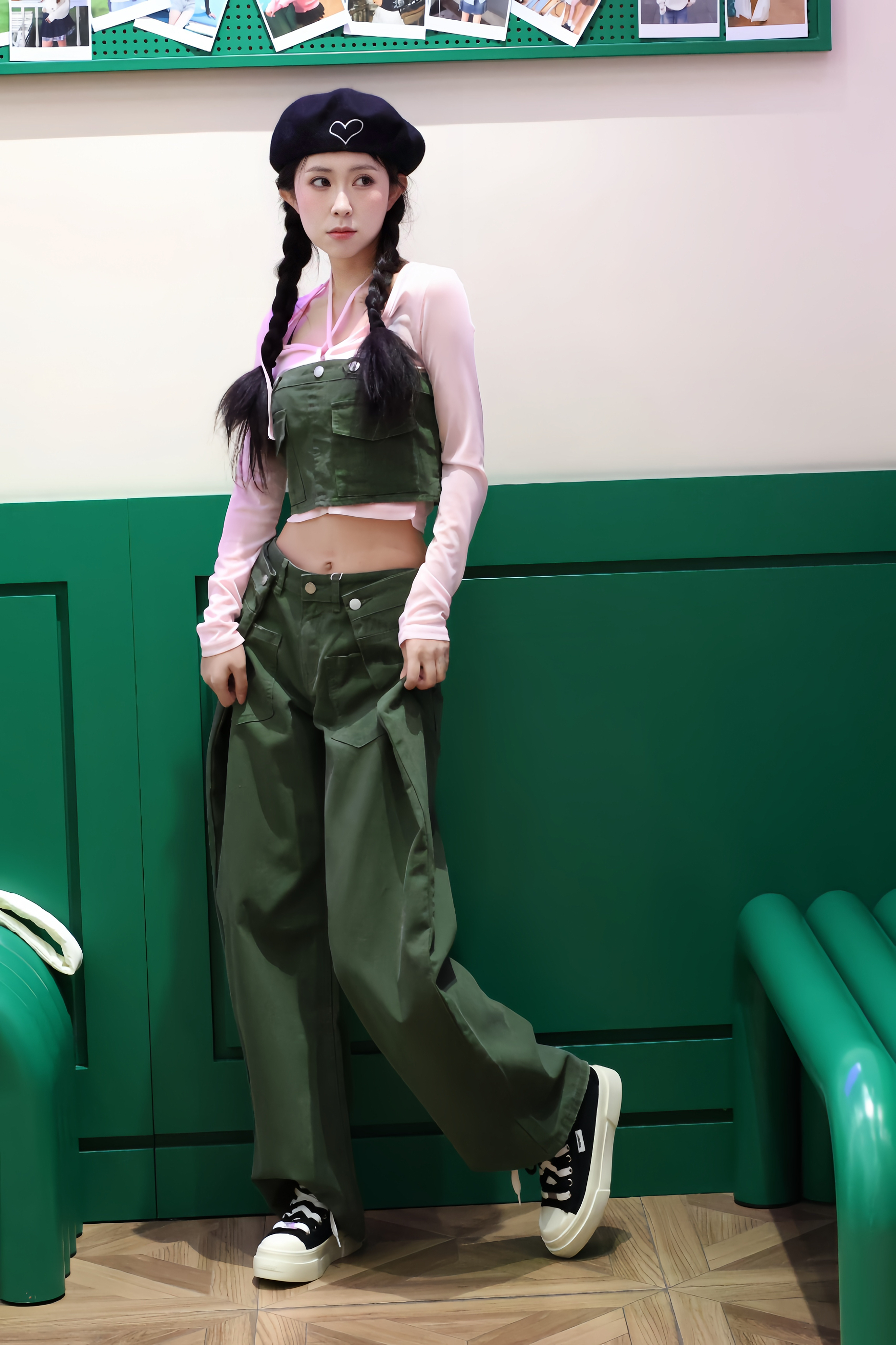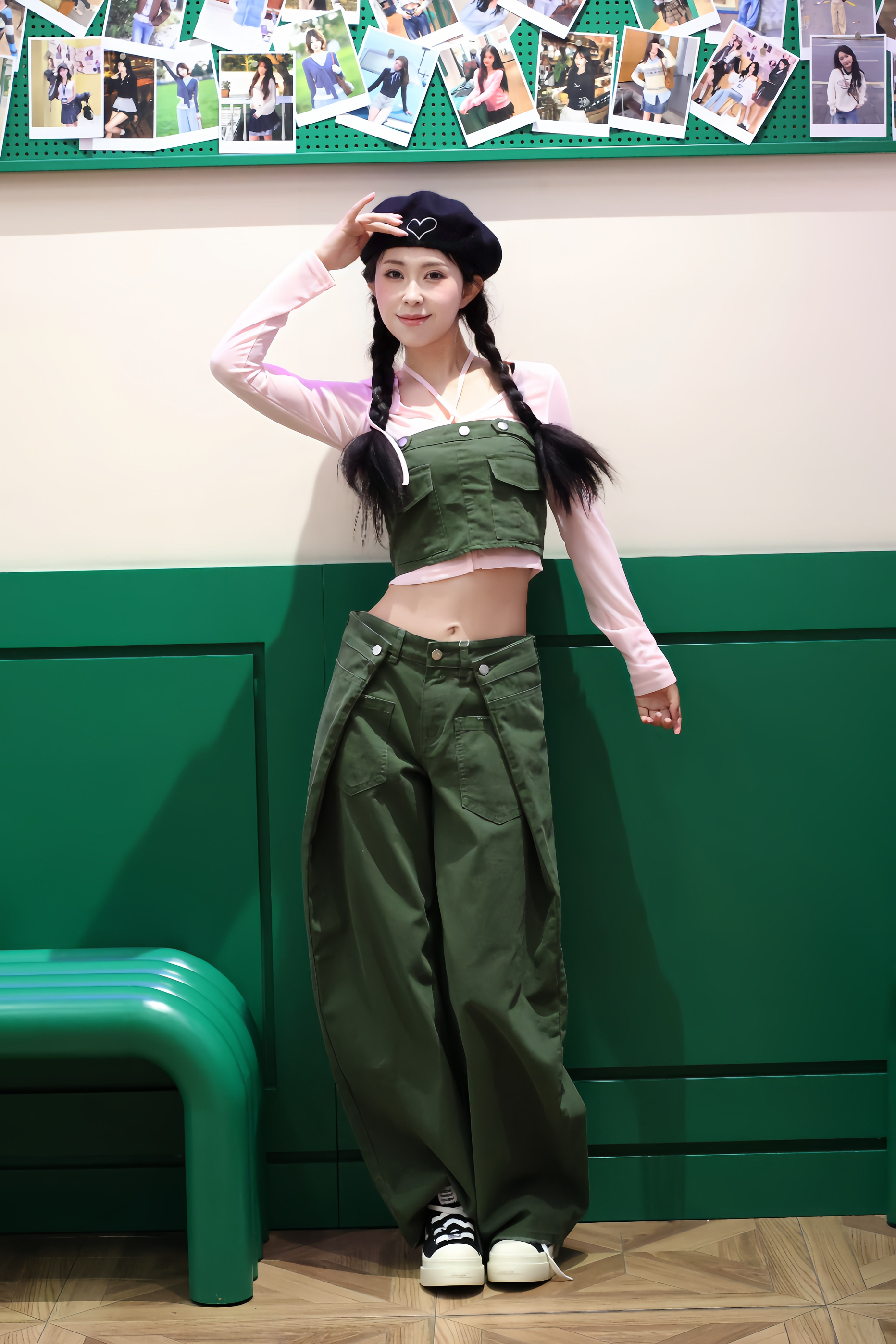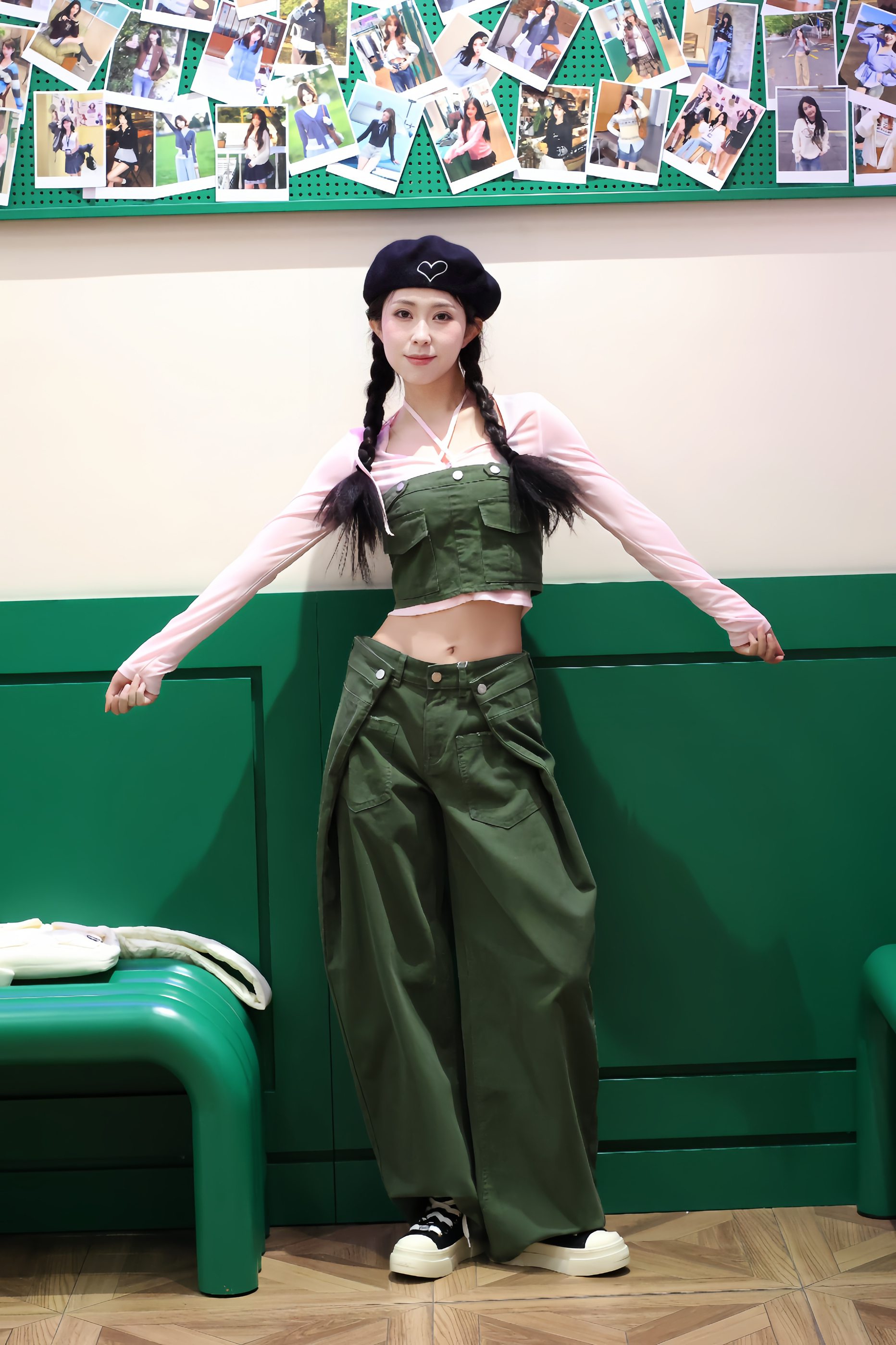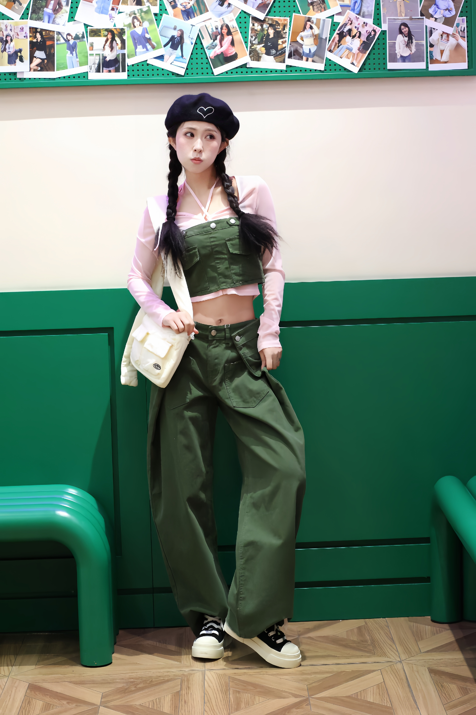 170cm/92斤亲测!这套粉绿撞色真的太适合春天啦~ 粉色透纱打底+军绿色工装两件套,甜酷感直接拉满,上下颜色呼应得恰到好处。 宽松阔腿裤藏肉又显腿长,搭配厚底帆布鞋,走路带风还显高。 整体面料质感在线,软乎乎又挺括,日常出街或拍照都很出片,春天的元气感这不就来了!