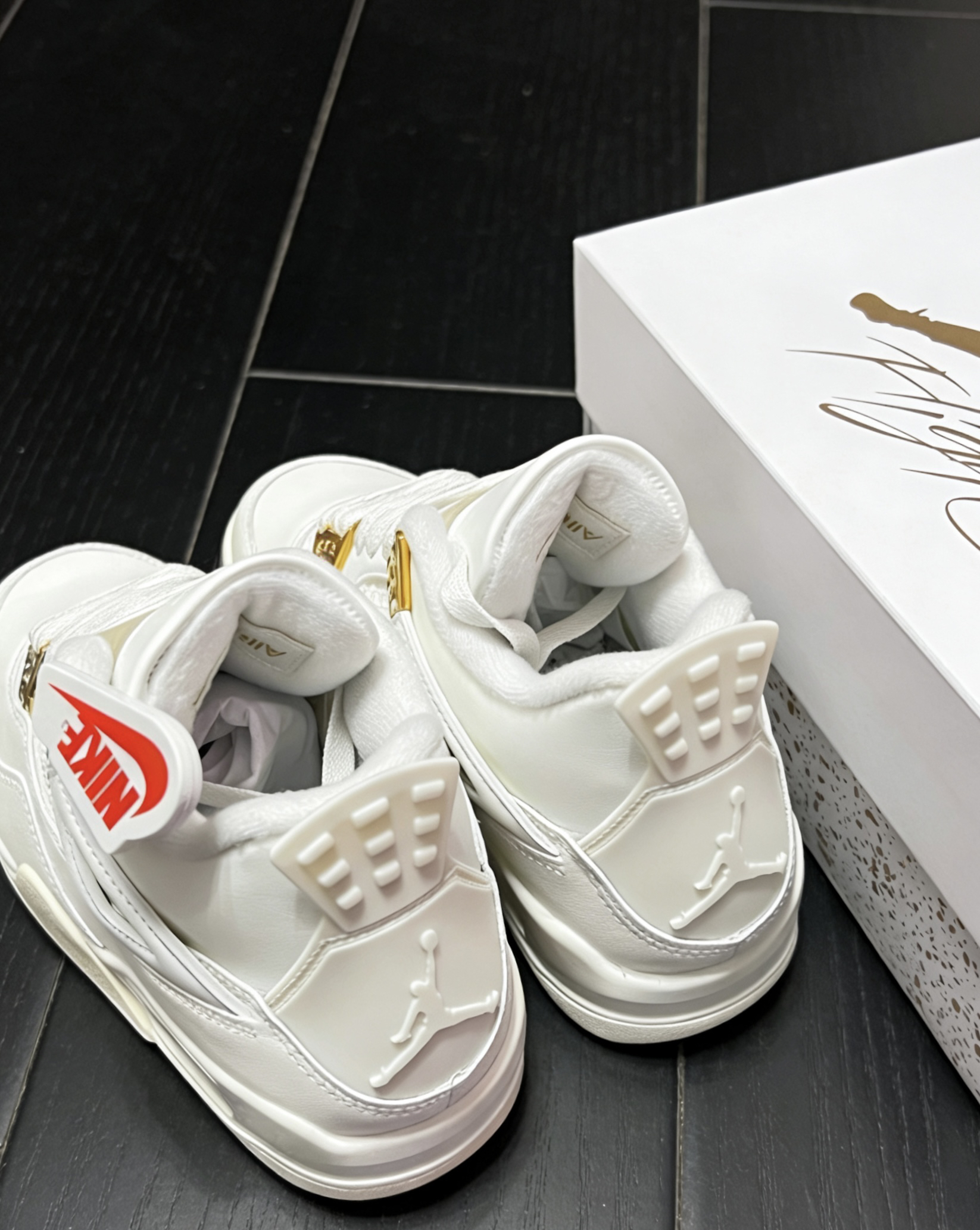 • 鞋面:优质皮革+网眼拼接,兼顾支撑性与透气性,日常防泼溅易清洁。 • 中底:搭载可视Air气垫科技,缓震回弹,兼顾实战与日常穿搭。 • 外底:橡胶材质,防滑纹路清晰,抓地力强,耐磨抗造。 • 细节:鞋口毛绒内衬,提升包裹感与舒适度;后跟立体飞人Logo,还原经典设计。 • 质感细节拉满:鞋面采用细腻皮革,质感柔软且耐穿;金色金属扣与鞋舌Nike吊牌,低调彰显身份,辨识度拉满。