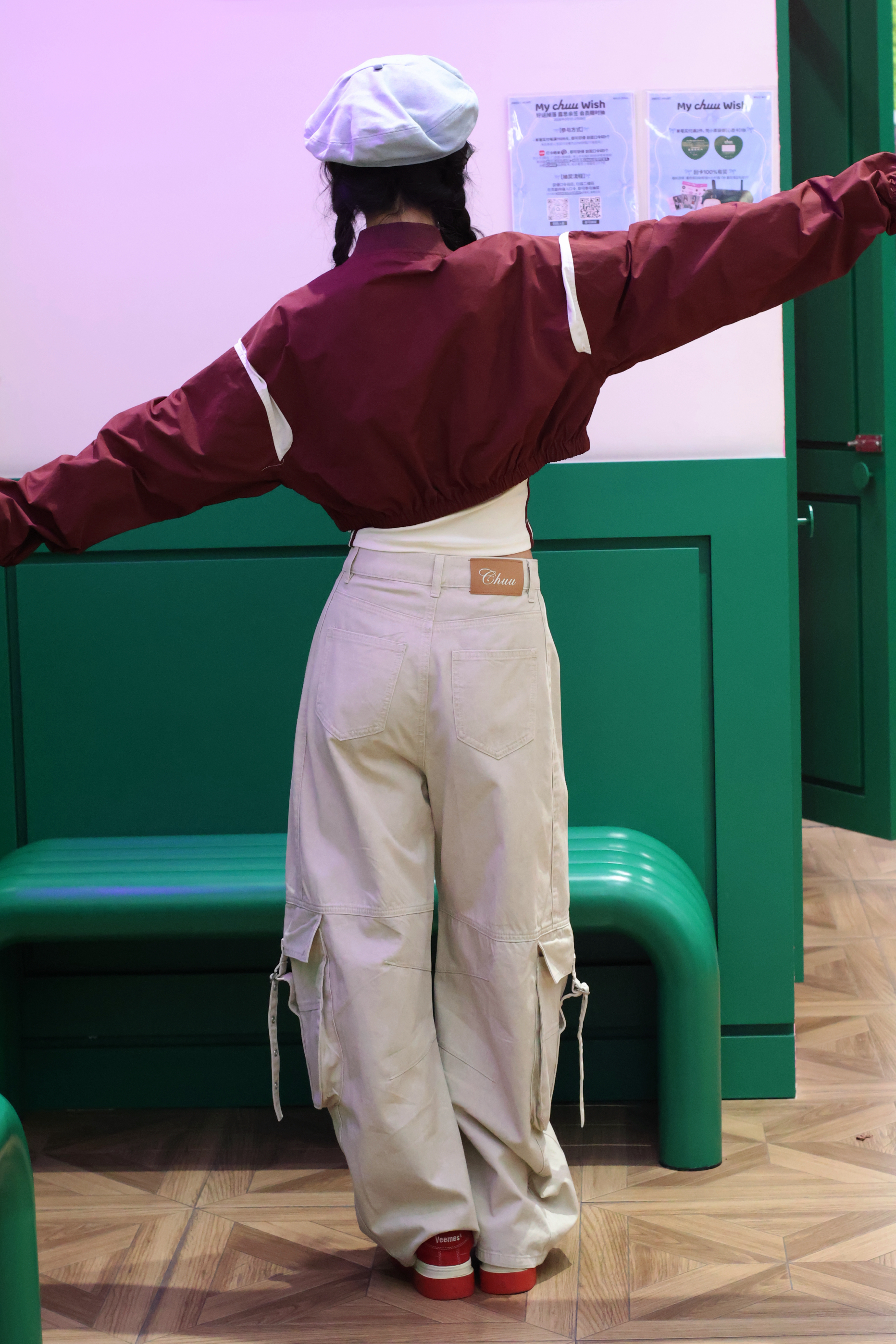 谁懂啊!这套复古美式街头风真的太戳我了💥 酒红色短款棒球夹克+白色内搭,再配上浅卡其色工装阔腿裤,甜酷感直接拉满。 • 短款夹克刚好露出腰线,视觉上腿长直接+10cm,小个子也能轻松驾驭。 • 工装裤的大口袋和飘带设计,又酷又有细节感,走路带风的感觉谁穿谁知道。 • 点睛之笔是这双红色厚底鞋和浅蓝贝雷帽,复古感和少女感同时拿捏,出片率超高! 不管是逛潮店还是citywalk,回头率都超高,...