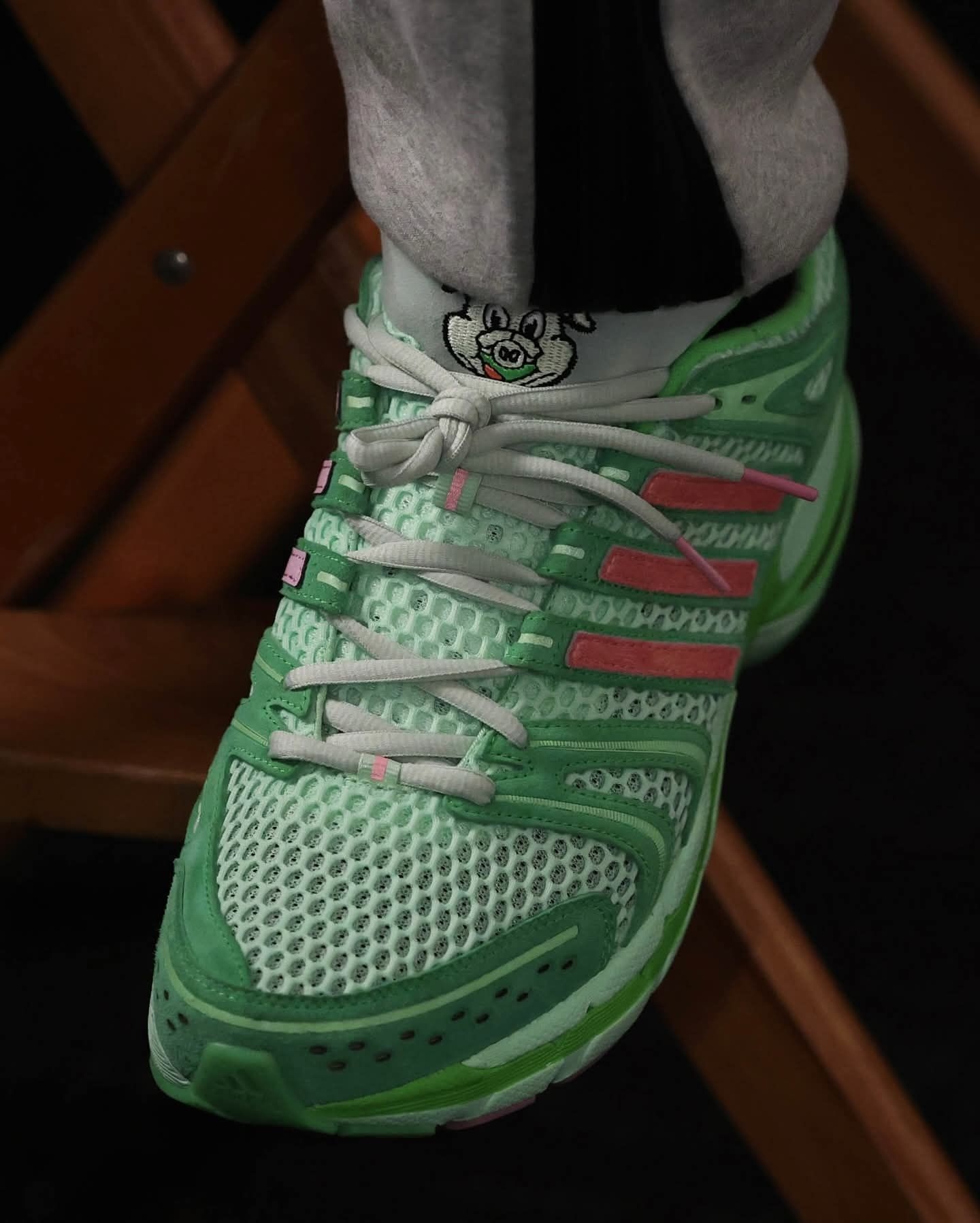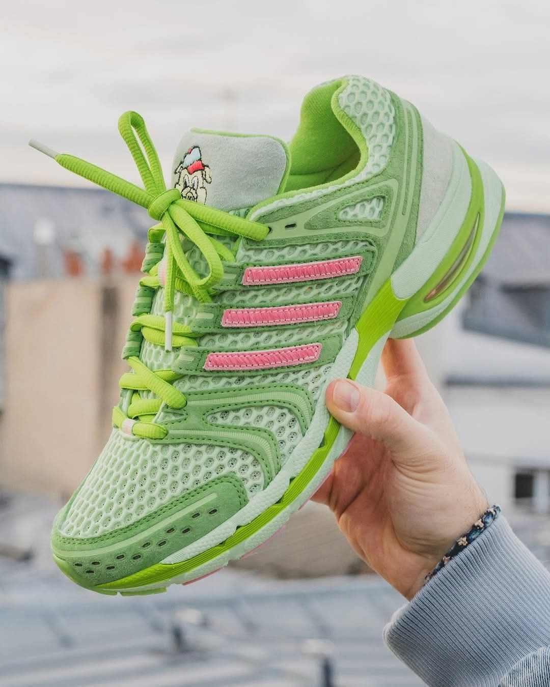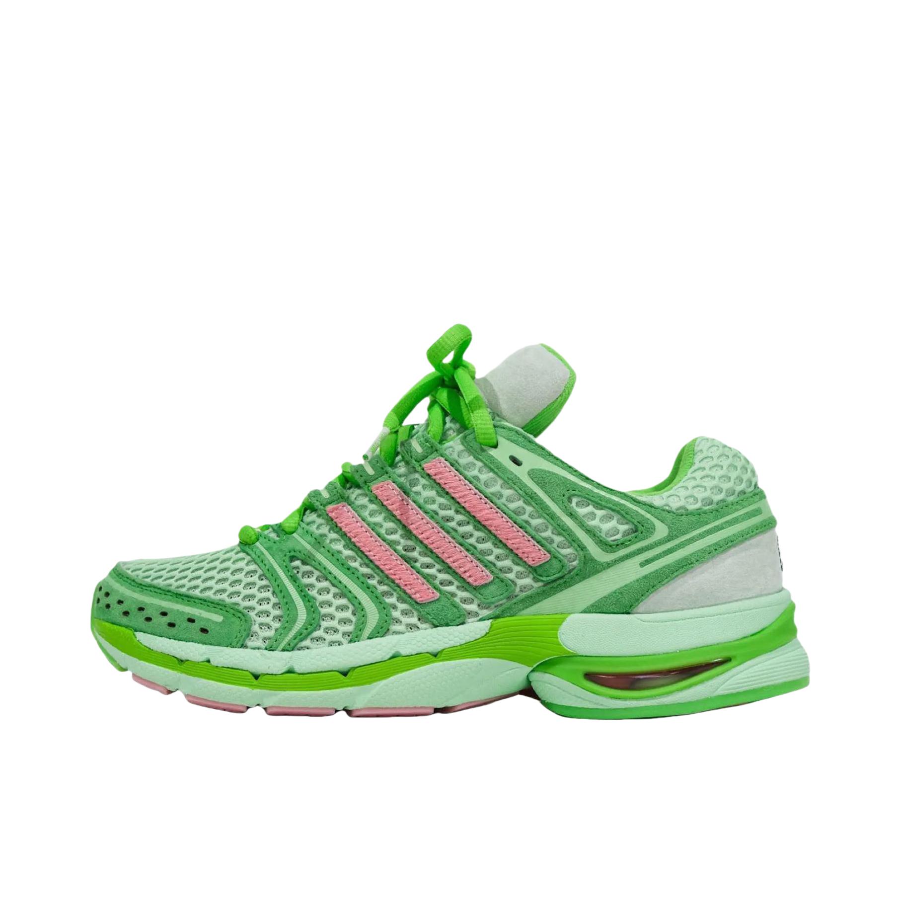 谁懂啊!这抹嫩到发光的抹茶绿也太会了✨ Unheardof x adidas的联名“小猪”配色,粉绿撞色直接戳中春日审美。 网眼鞋面透气又复古,上脚自带街头松弛感,不管是搭牛仔阔腿裤还是运动短裤,都能把春日氛围感拉满。 既是潮流联名款,又藏着可爱的小猪彩蛋,颜值与脚感双在线的宝藏球鞋,潮人春日鞋柜必须锁死!