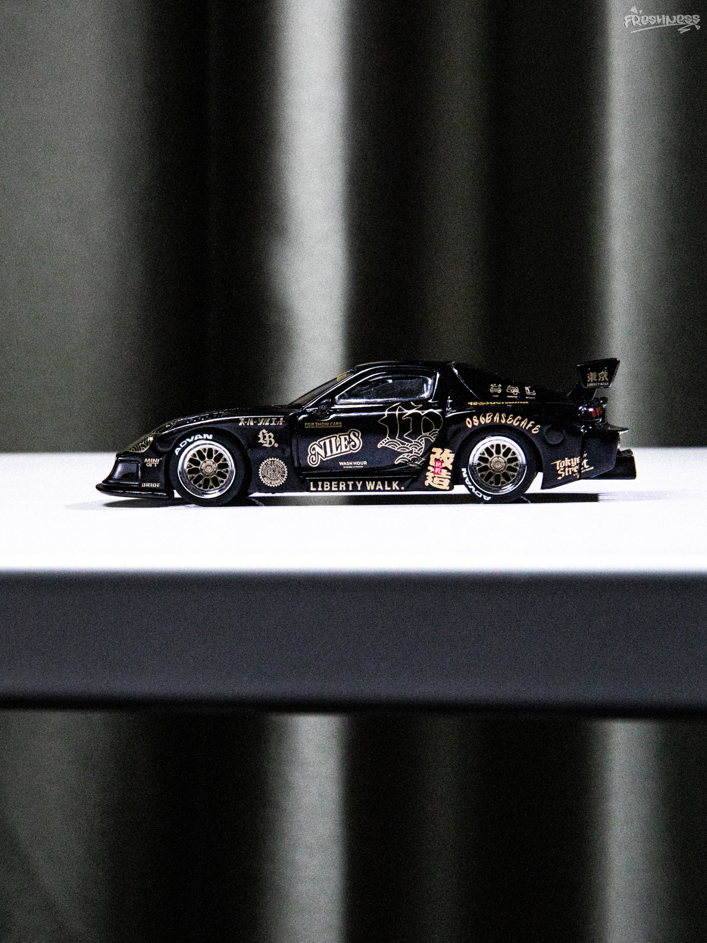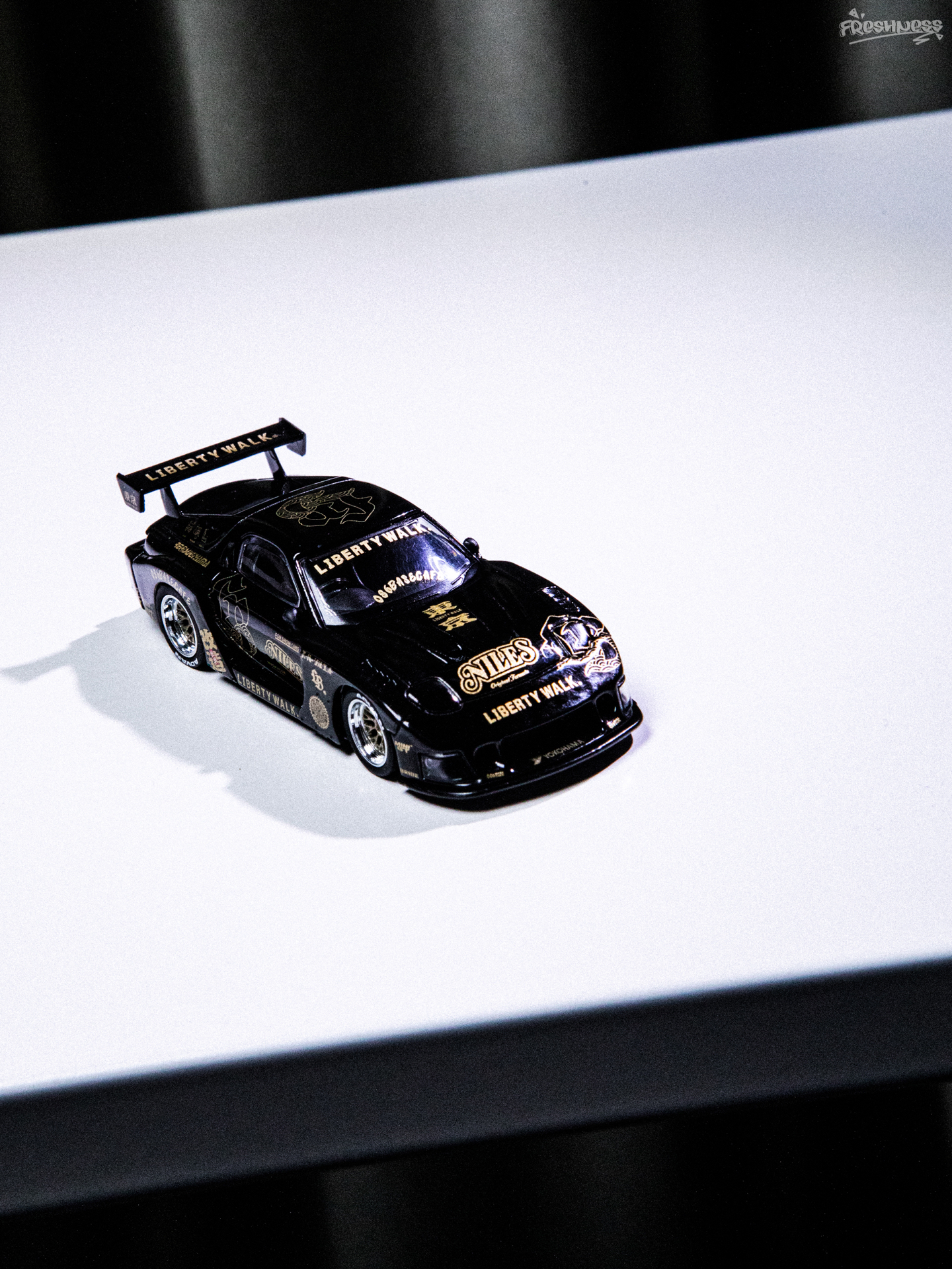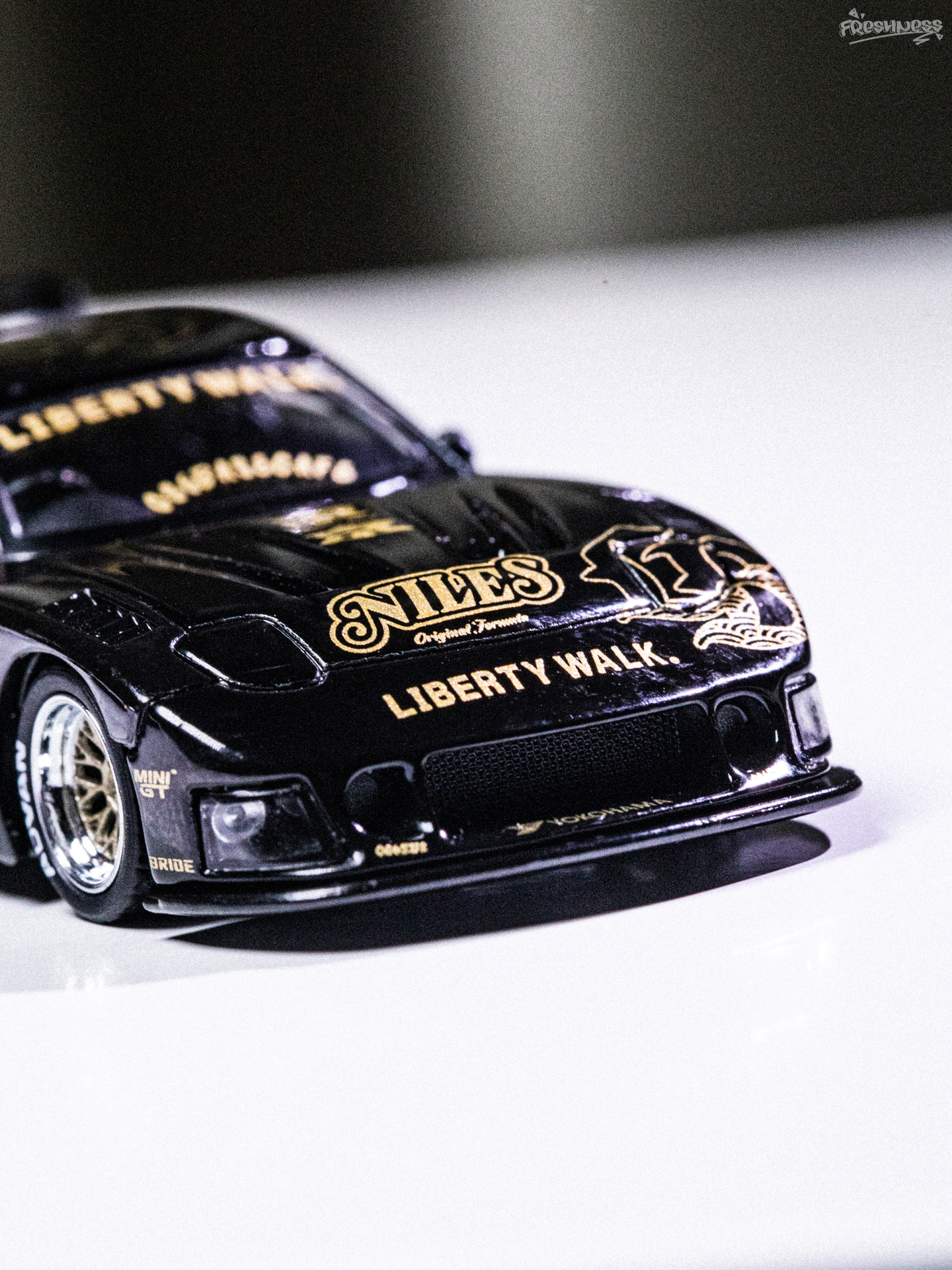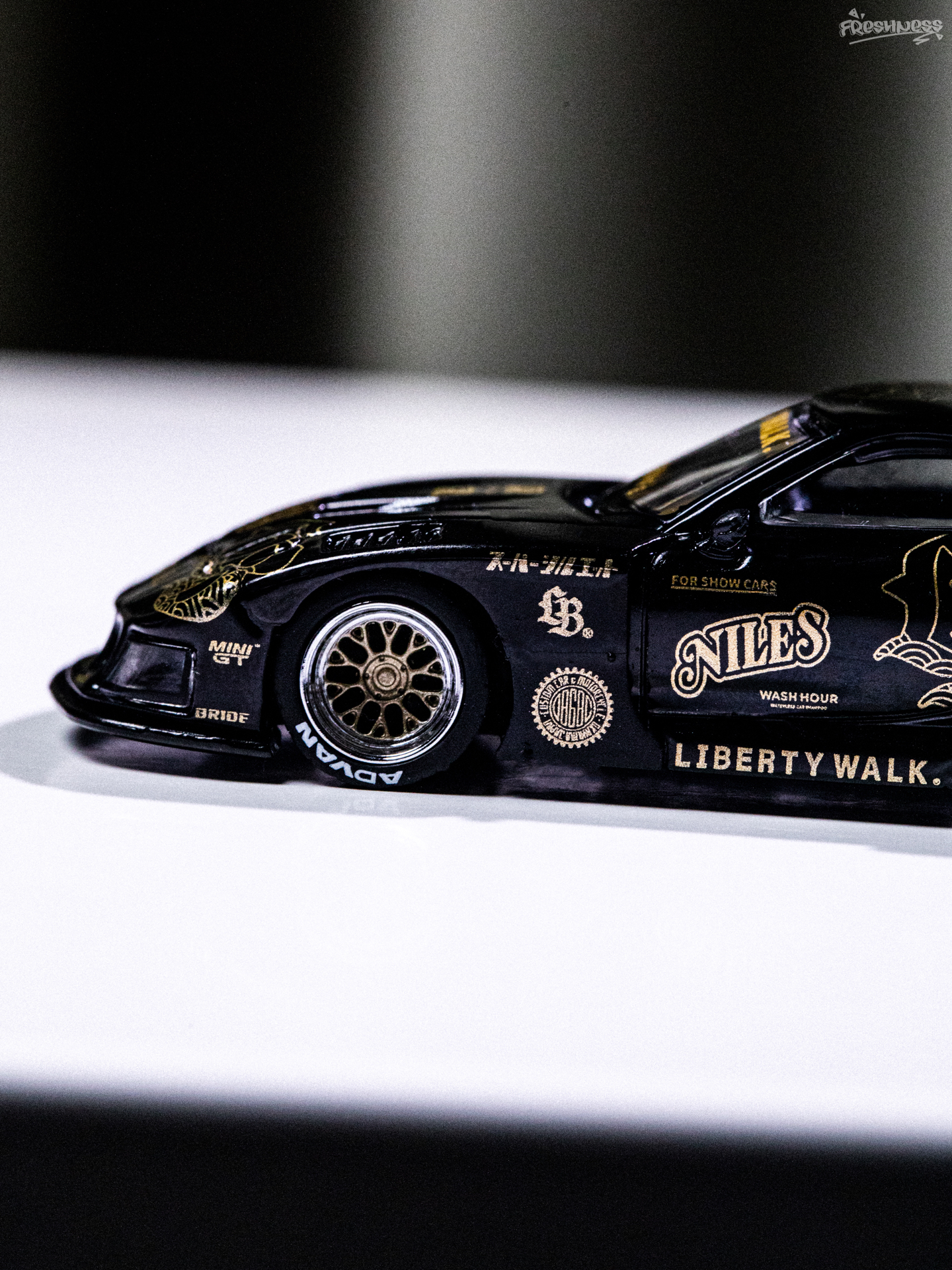 今天拍照练习的小车是来自于MINI GT最近新出货的1101号——由LBWK套件改装的马自达RX-7。之前LBWK推出的RX-7也推出过白蓝色的刷色,不过这次的黑金刷色看着是有一些新奇感。黑色的车身是选用的素漆,加上金色的水贴拉花挺有感觉。而且这次的1101号的轮毂也是特殊设计,加上ADVAN的轮胎,街头感十足。个人觉得这款也是特别适合入手的小车,有好价格的还是值得入手的。 #MINI GT ...
