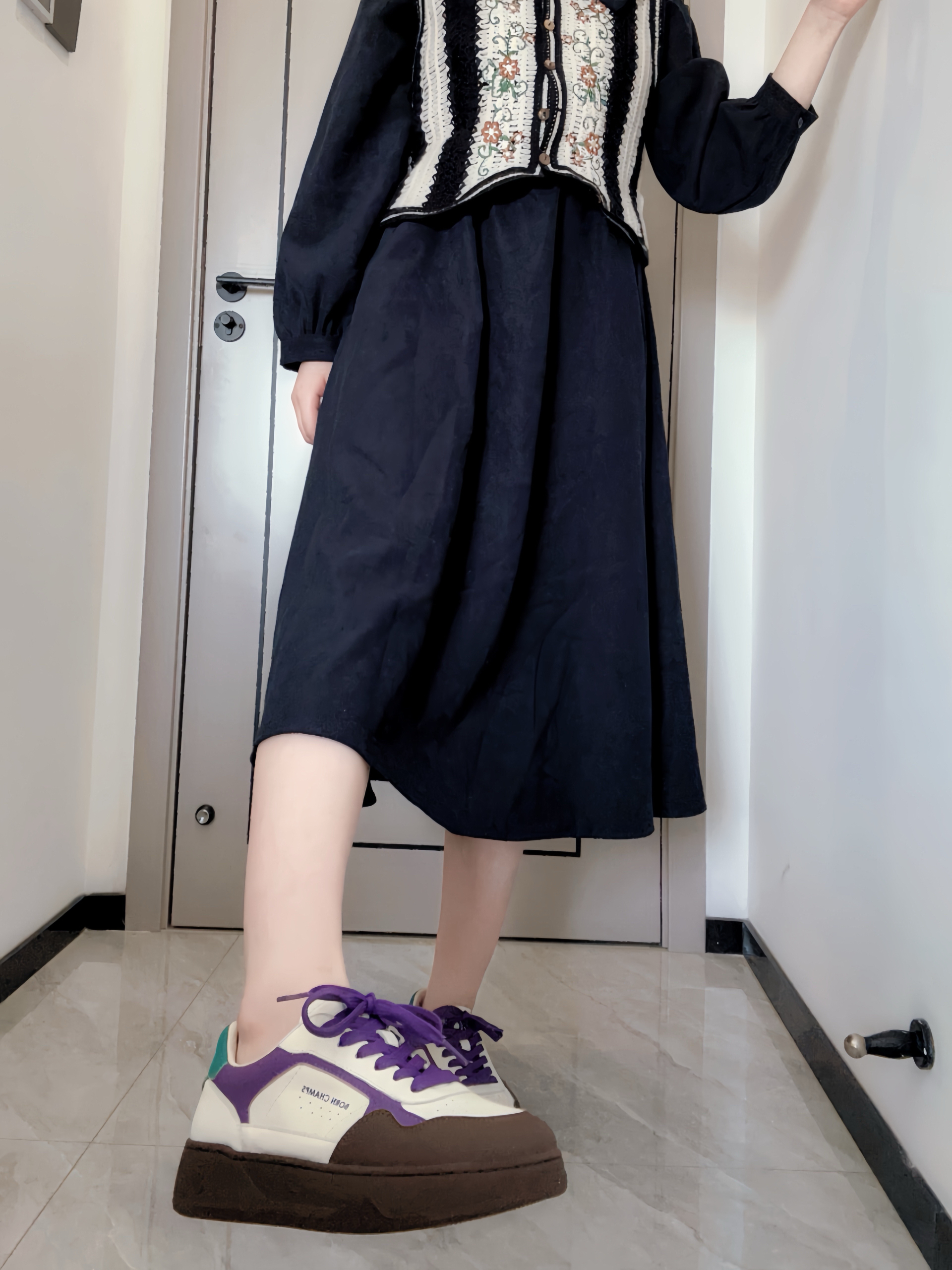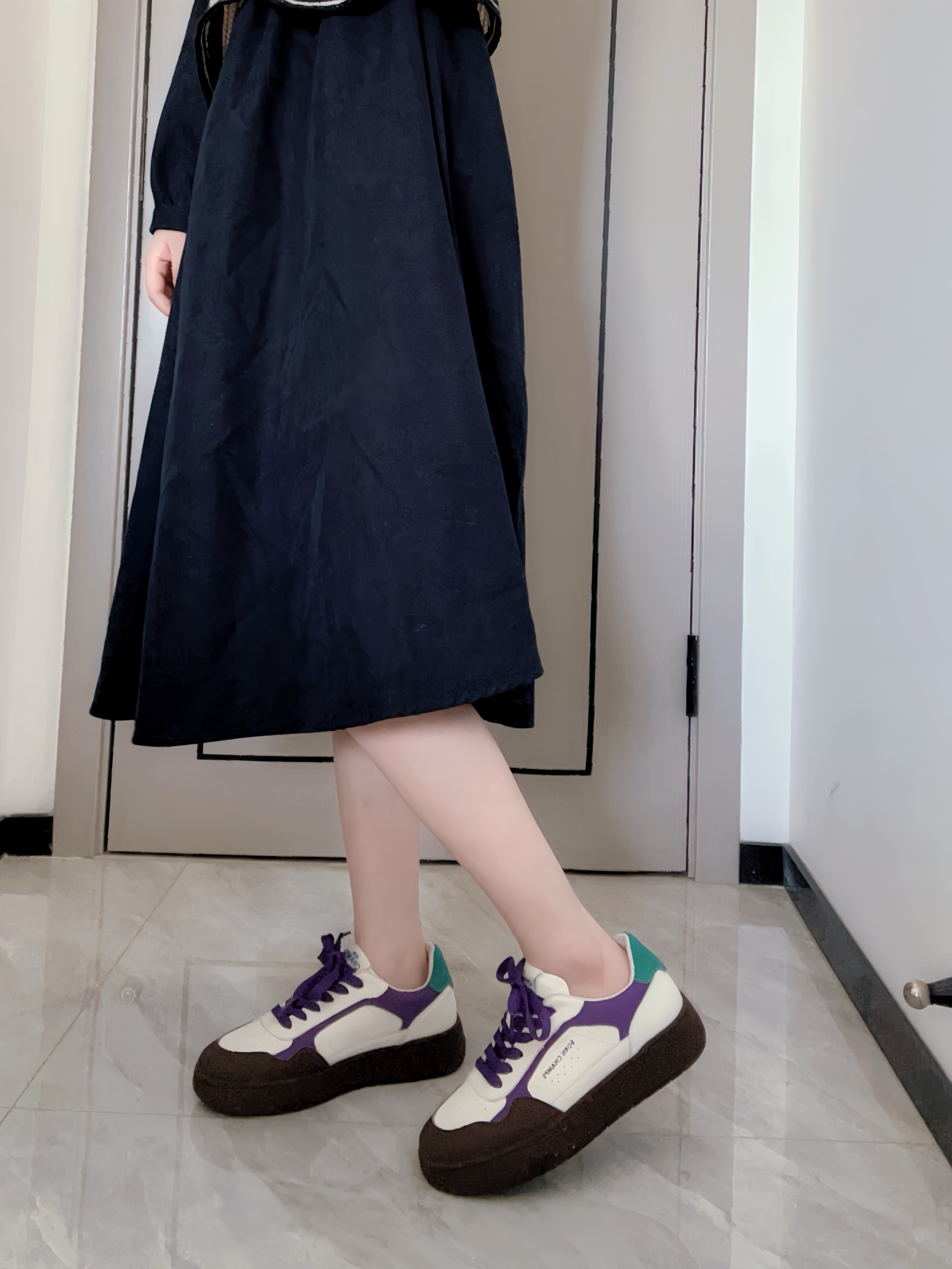 穿上感觉瞬间成为了大学生 紫色💜棕色➕绿色拼接 配色融合的很高级🥳 鞋面采用头层牛皮 高级感满满 鞋底是结实的橡胶 防滑又耐磨 质感上真的挺不错滴😌 脚感是比较舒适柔软的 自带透气 一年四季搭配都合适日常