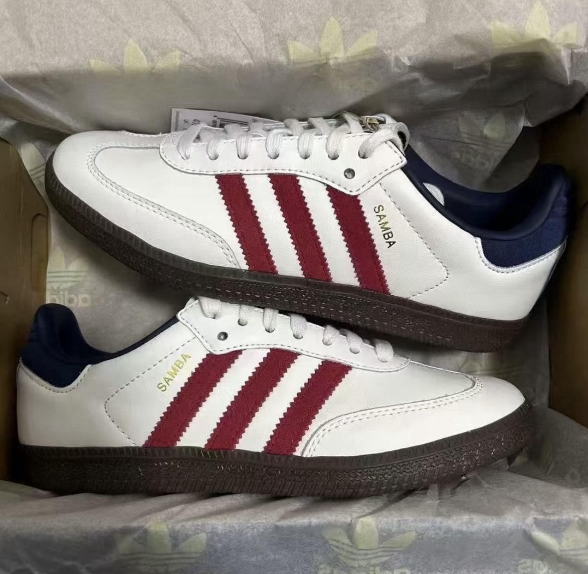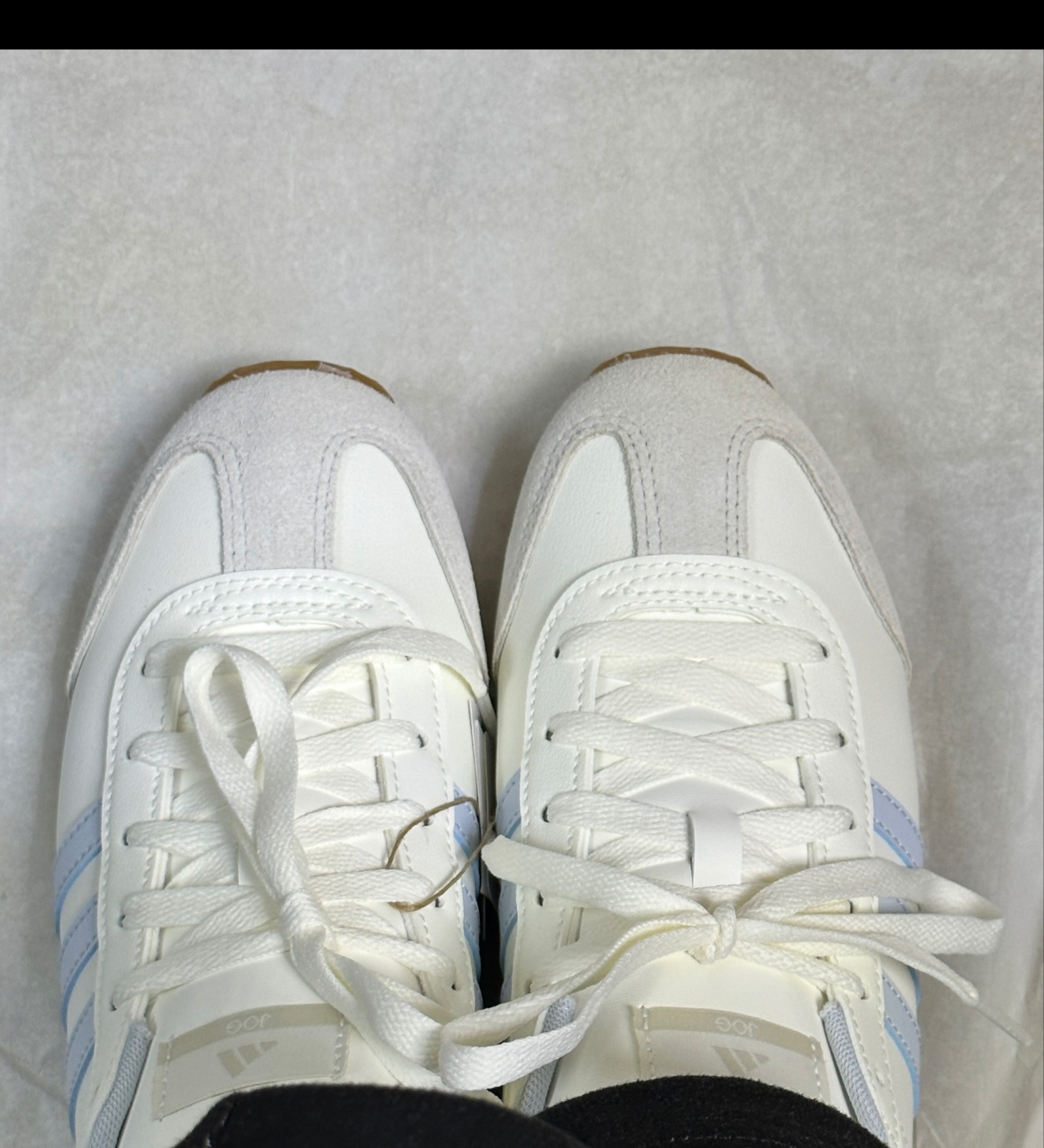 这双adidas德训鞋真的太会了!奶白+浅蓝的配色,温柔又干净,像把春天穿在脚上~ 👟 细节控狂喜 • 鞋身采用细腻皮革+麂皮拼接,质感拉满 • 标志性三条杠换成了浅蓝渐变,低调又有设计感 • 生胶大底复古感十足,走路软弹不磨脚 • 鞋舌和后跟的小细节,处处透着精致 💡 百搭王者 不管是搭配牛仔裤、运动裙还是休闲裤,都能轻松hold住!日常通勤、校园穿搭、约会出街都超合适,温柔又元气,妥妥的氛围...