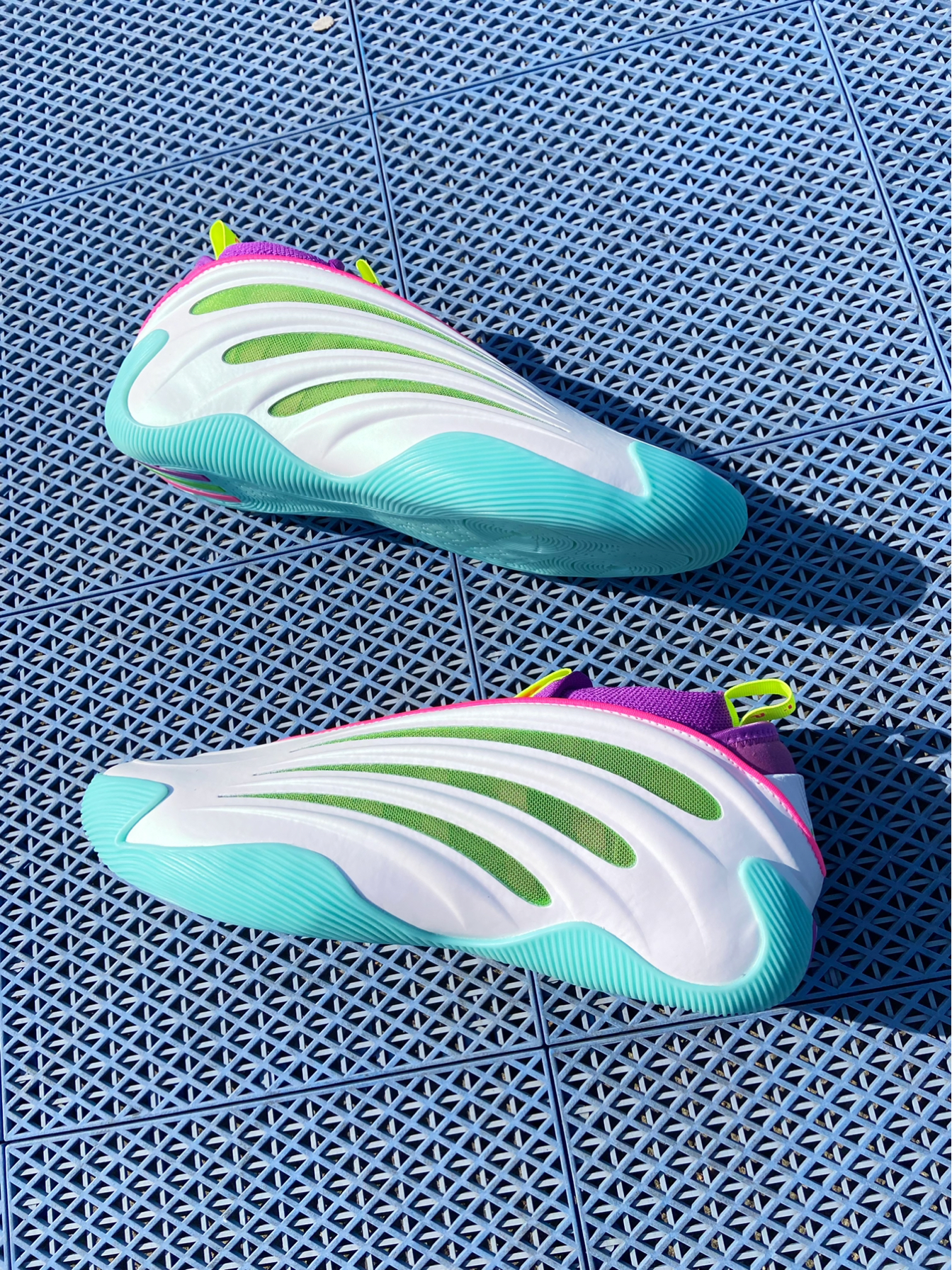 @年年爱学习 开学在即,穿什么鞋,才能配上你?这双 adidas 哈登9,杰伦威廉姆斯的PE糖果色🍬,如果你预算够的话,可以入手! 上脚后鞋子中底的boost脚感澎湃,跑跳都很舒服,而且鞋面虽然是皮面,但是偏软,宽脚也能穿,鞋子的内衬也像穿袜子一样,整体来说脚感舒服! 其次鞋子颜值有一说一,不说亮眼,那也绝对球场吸睛利器,开学穿它不是更好么? 唯一需要注意的就是,不建议打室外,一是鞋底...