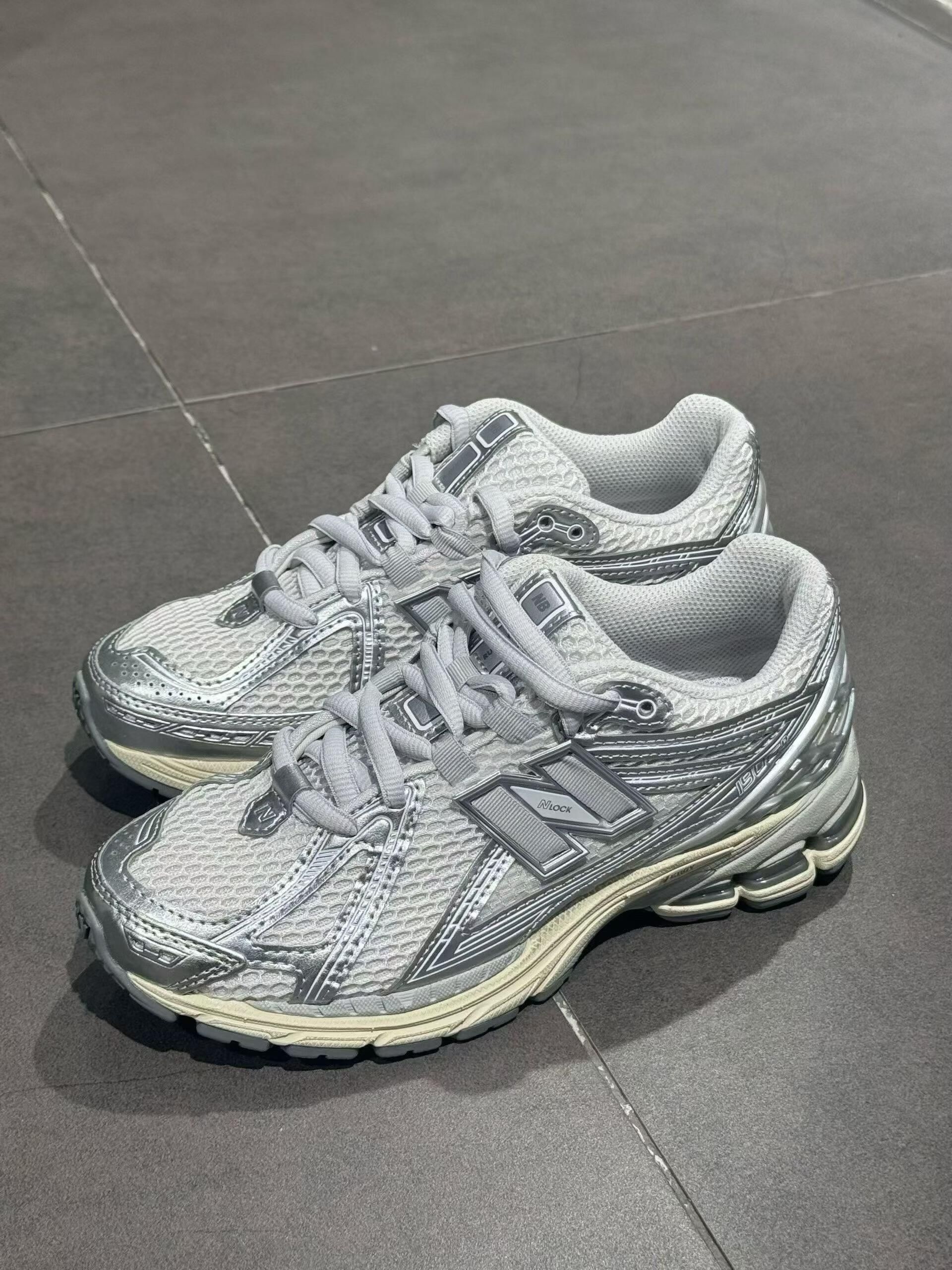 网布鞋面轻盈透气,银灰金属拼接闪闪发光,N字logo低调又高级,厚底气垫缓震满分。鞋底柔软耐磨,包裹脚掌超舒服,走一整天都不累脚~👟✨ 穿上它,整个人都精神起来了!姐妹们,这双真的绝,赶紧冲~💕