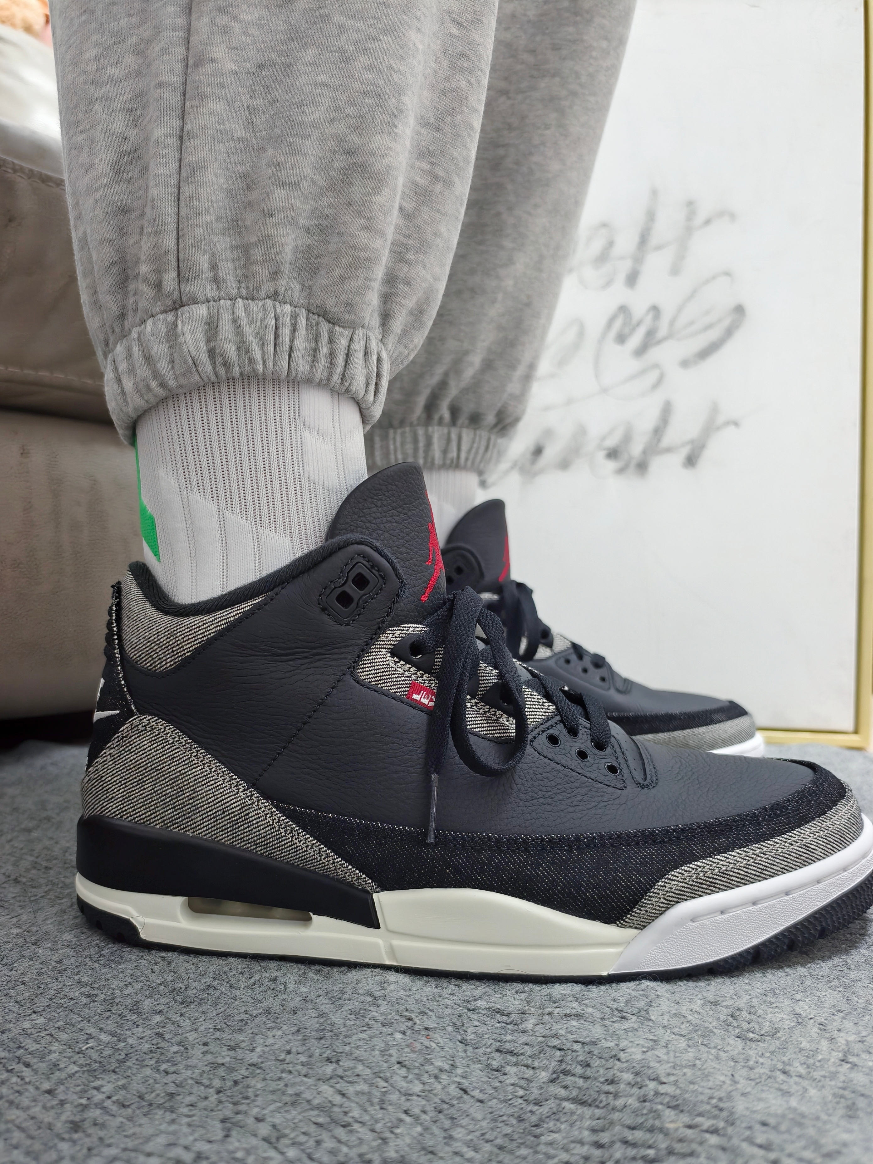 Levis和钩子的又一次合作来咯!这回也是经典鞋型AJ3。 👀算是致敬了经典配色“黑水泥”,那么来点传统的篮球运动组合吧! #维动 VEIDOORN 这款蝉翼系列,体验了几次,确实还不错。整体的图案纹理恰到好处,没有紧绷感。 🤔3代鞋型压迫感强,也可以通过大半码和配色这种缓震袜解决。 😶你们觉得,这回的新联名怎么穿搭合适呢? @社区小管家 #维动VEIDOORN #维动蝉翼篮球袜 #Levi...