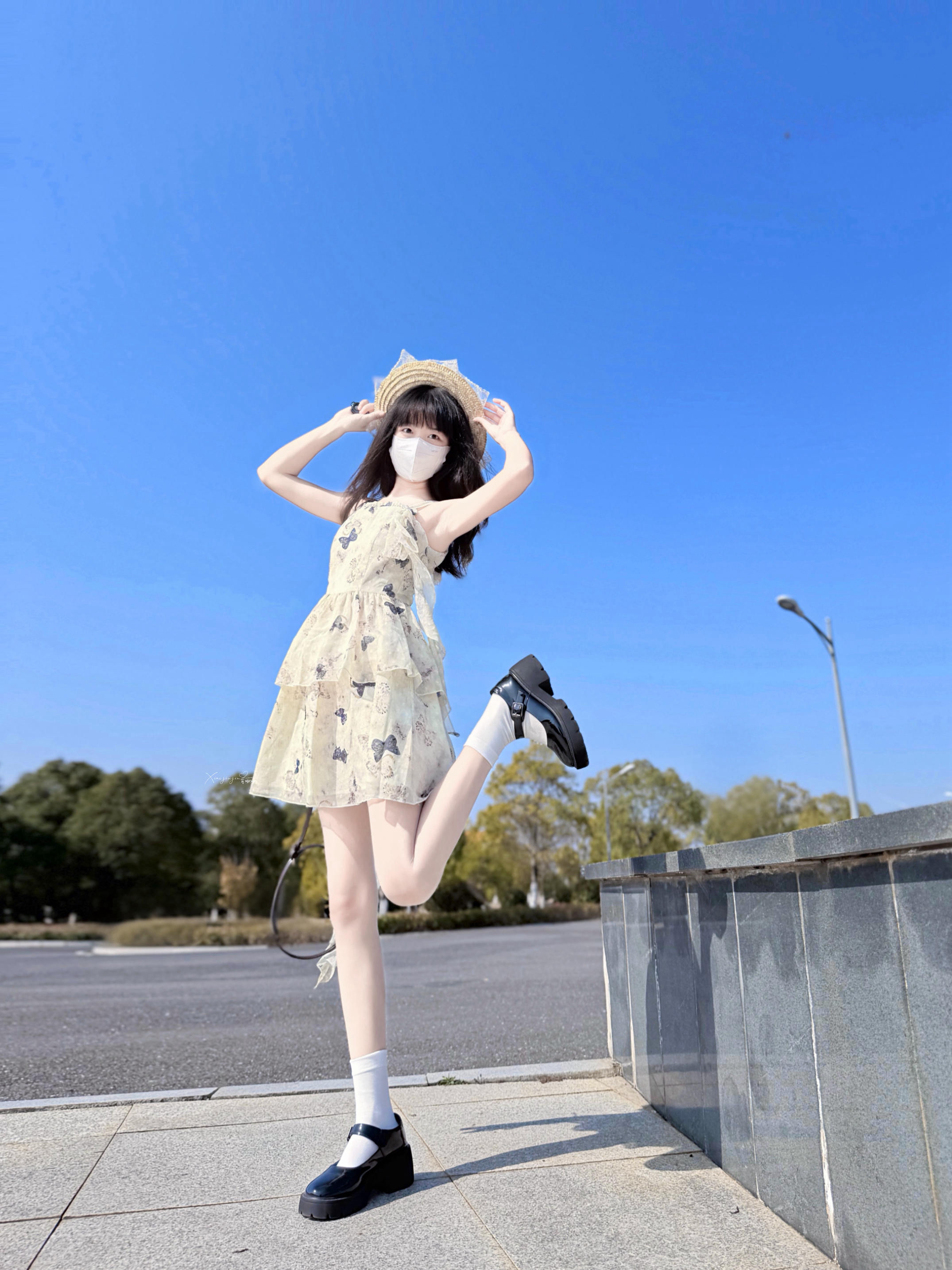 身高|体重:160/43 🧍♂️ 穿搭风格:甜美风 👗下装:花崎鹿 👟 鞋子:回力 🎒配饰:无