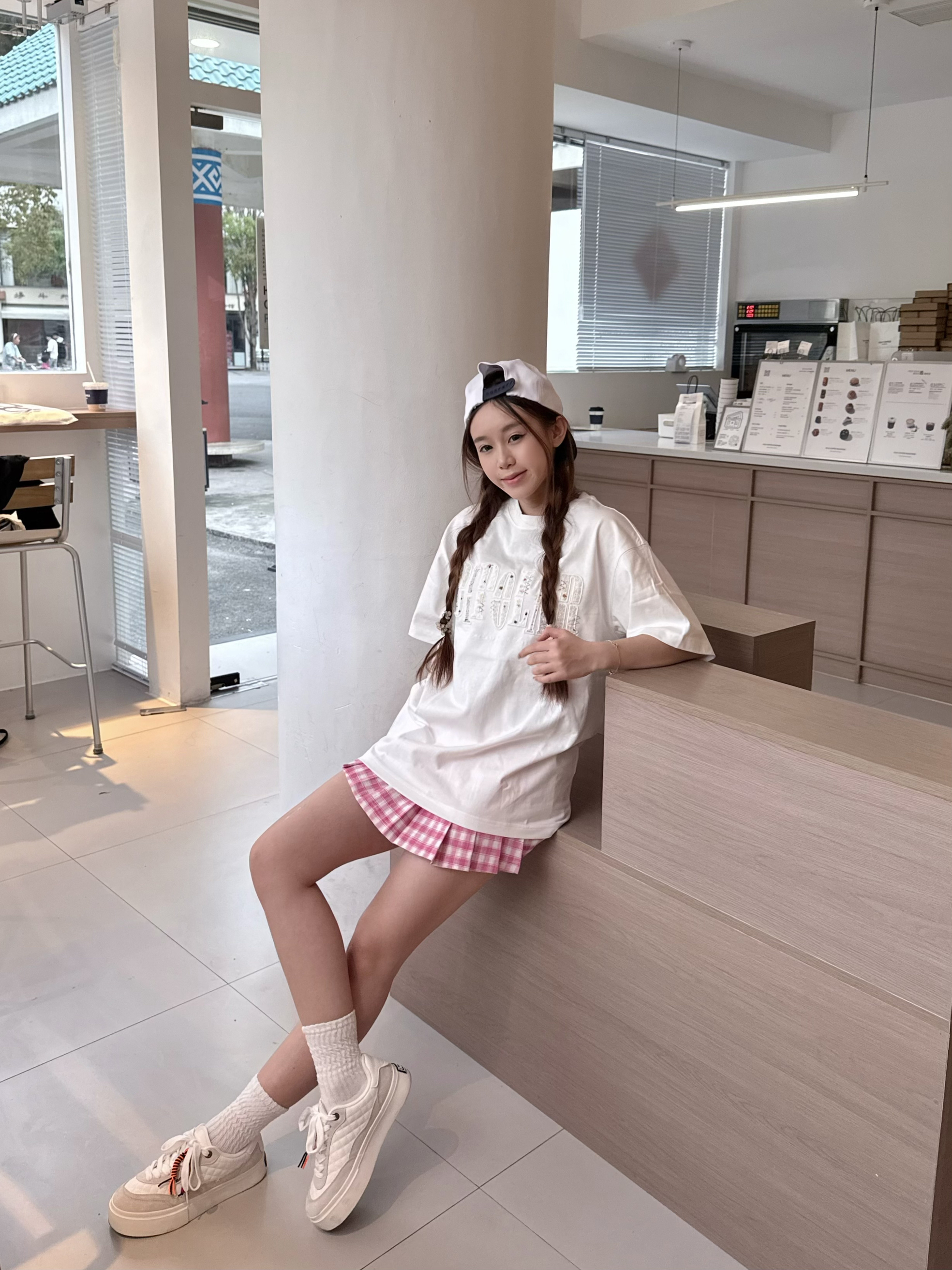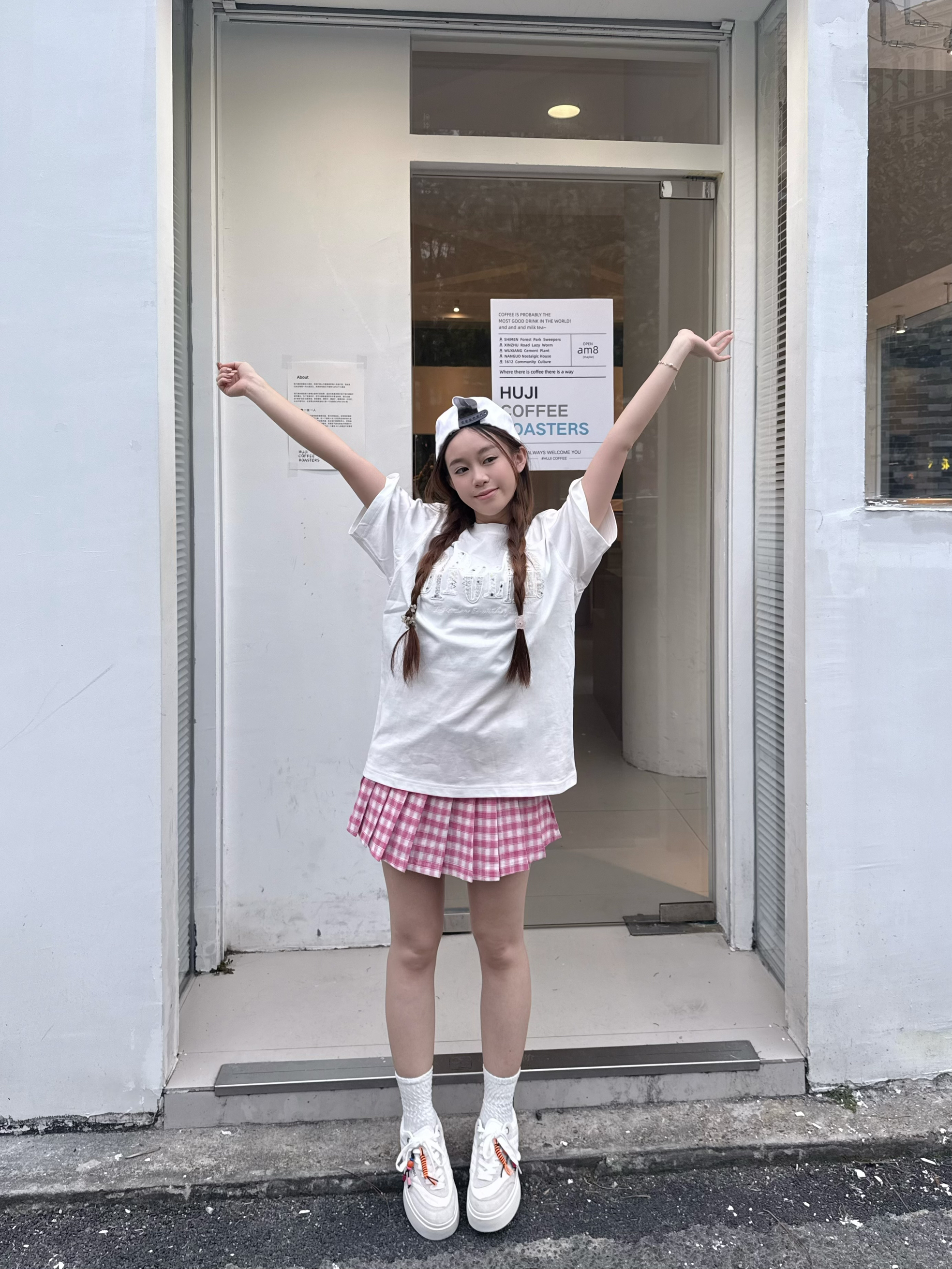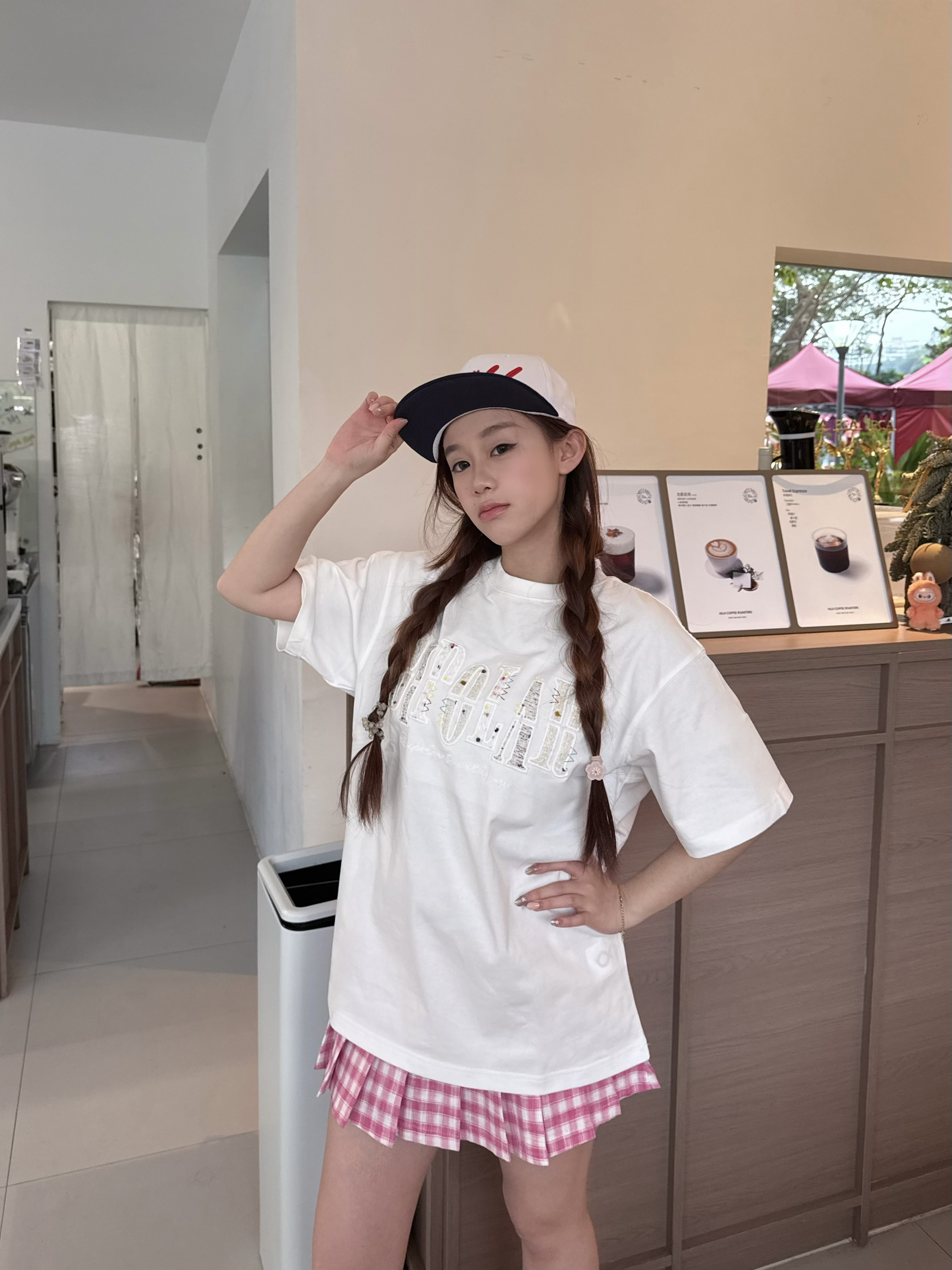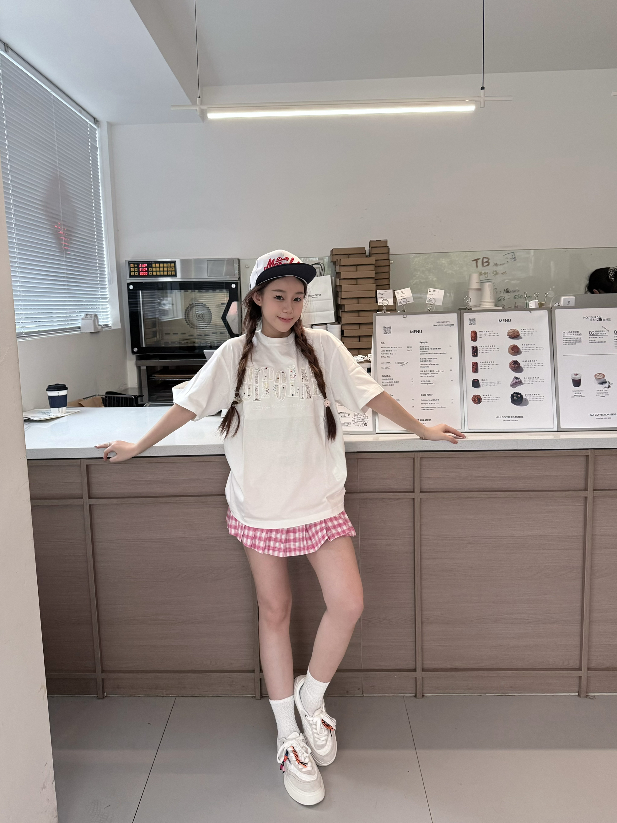 穿着我最爱的bipolar提前入夏啦! 三拼刺绣到白t上身就是潮潮的美式街头风格 配饰上我选择了有红色刺绣的白色鸭舌帽 刚好和衣服的白➕粉呼应上 这波穿搭小巧思大家可以学起来😉 我160/45kg一套都是s码哦