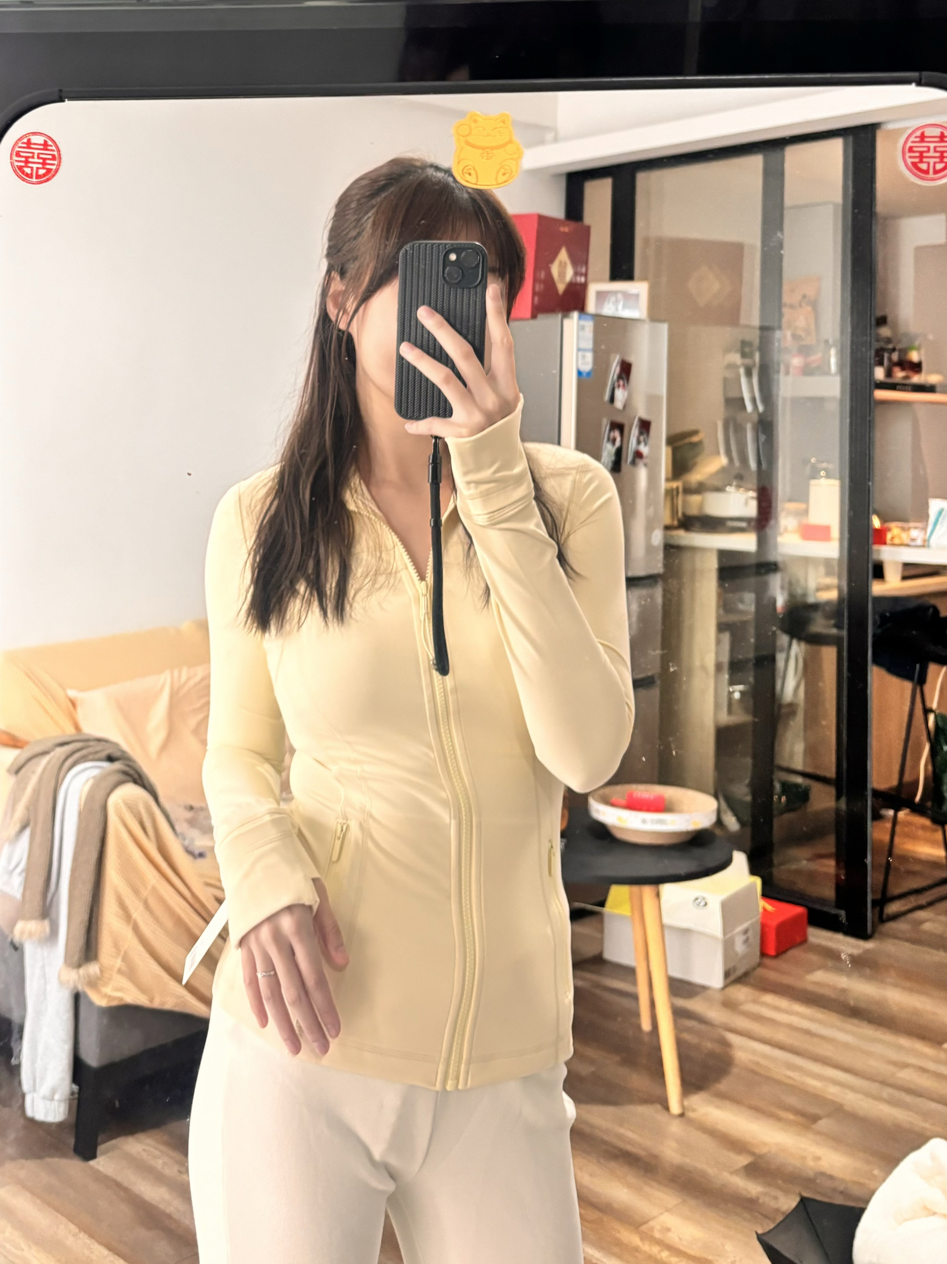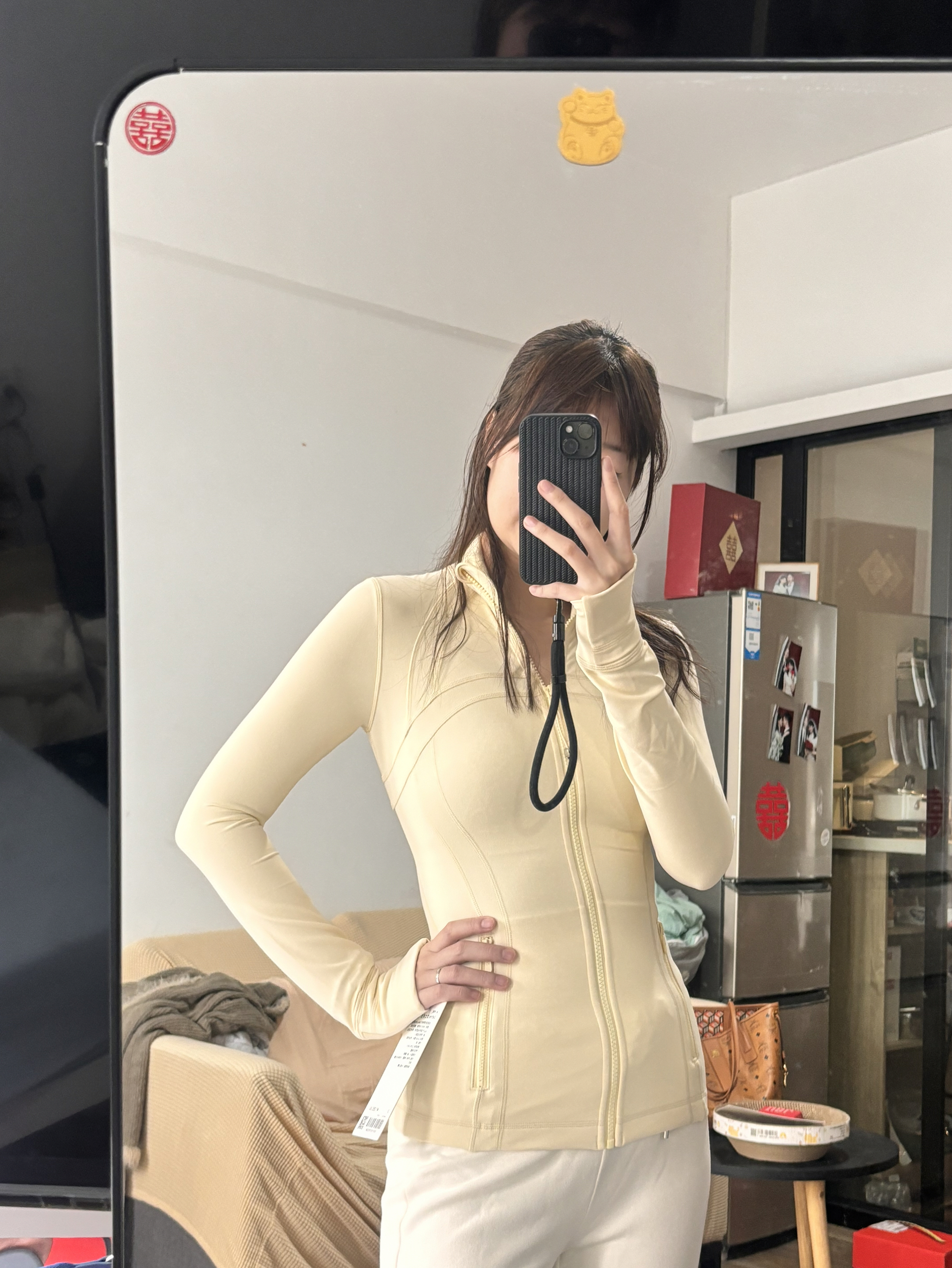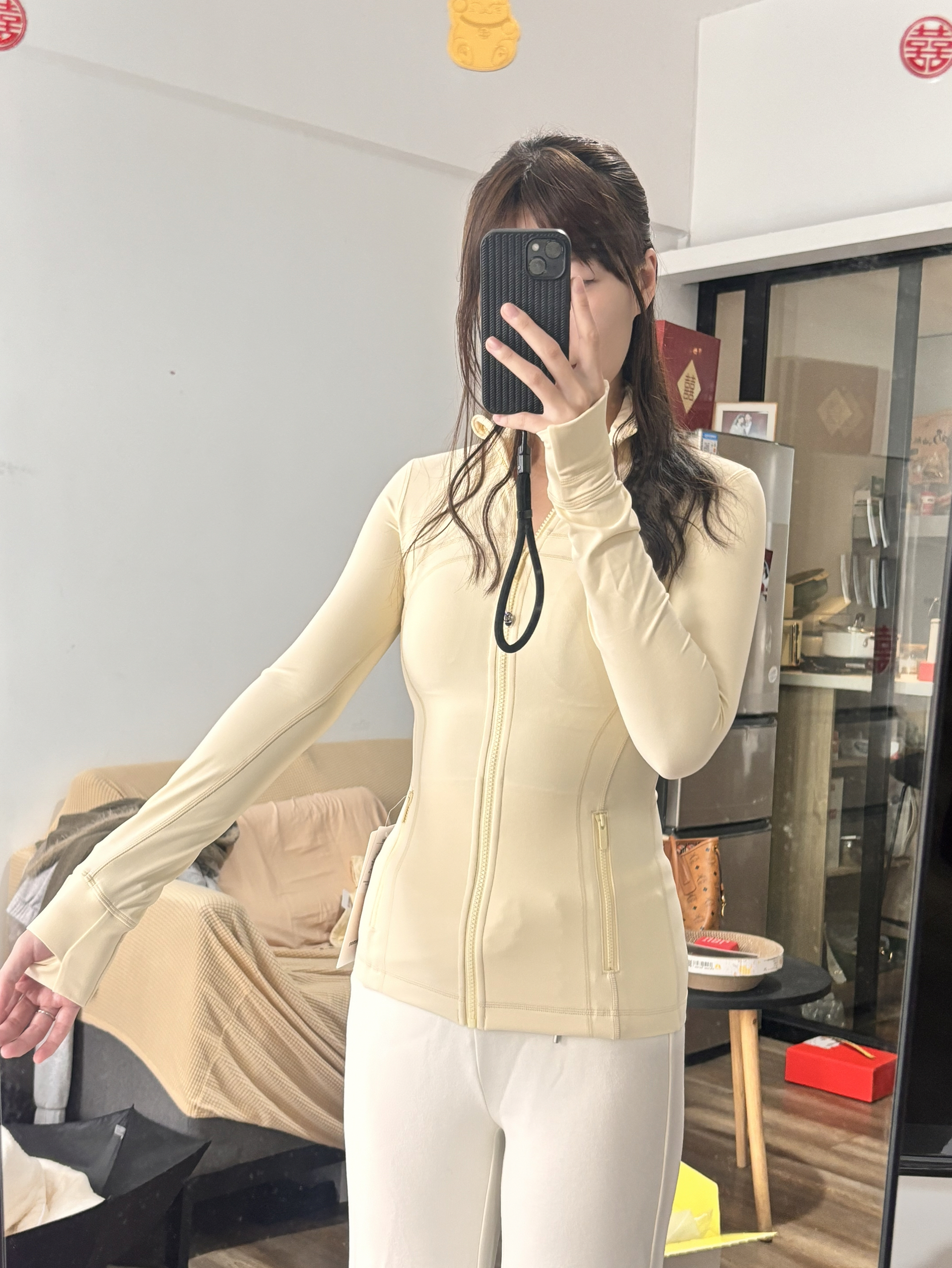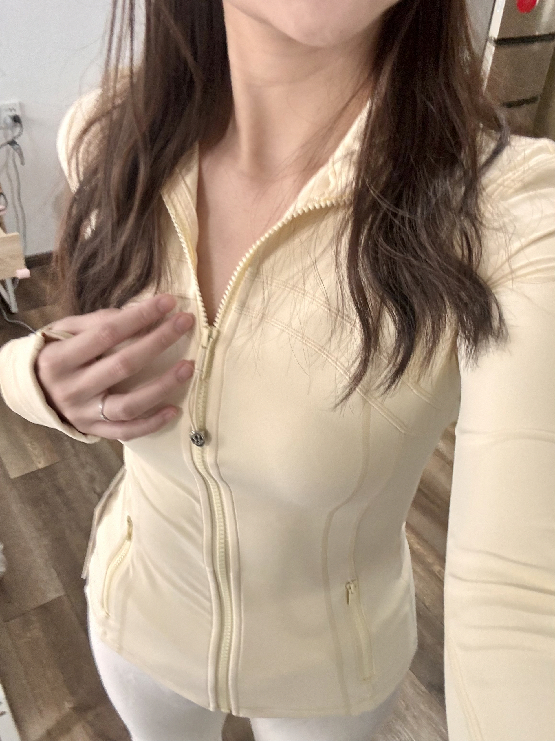 入手了奶酪黄define,超级美丽,春天的颜色,非常显白!谁穿谁嫩! nulu面料很舒服,完全是裸感! 166 103穿4码刚刚好,2码更有包裹感~