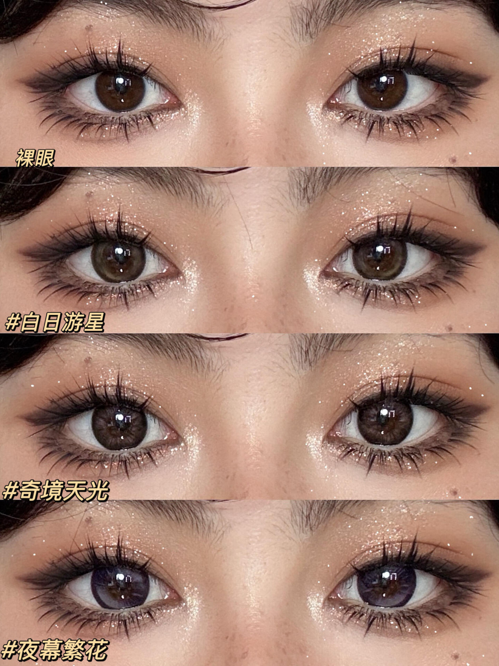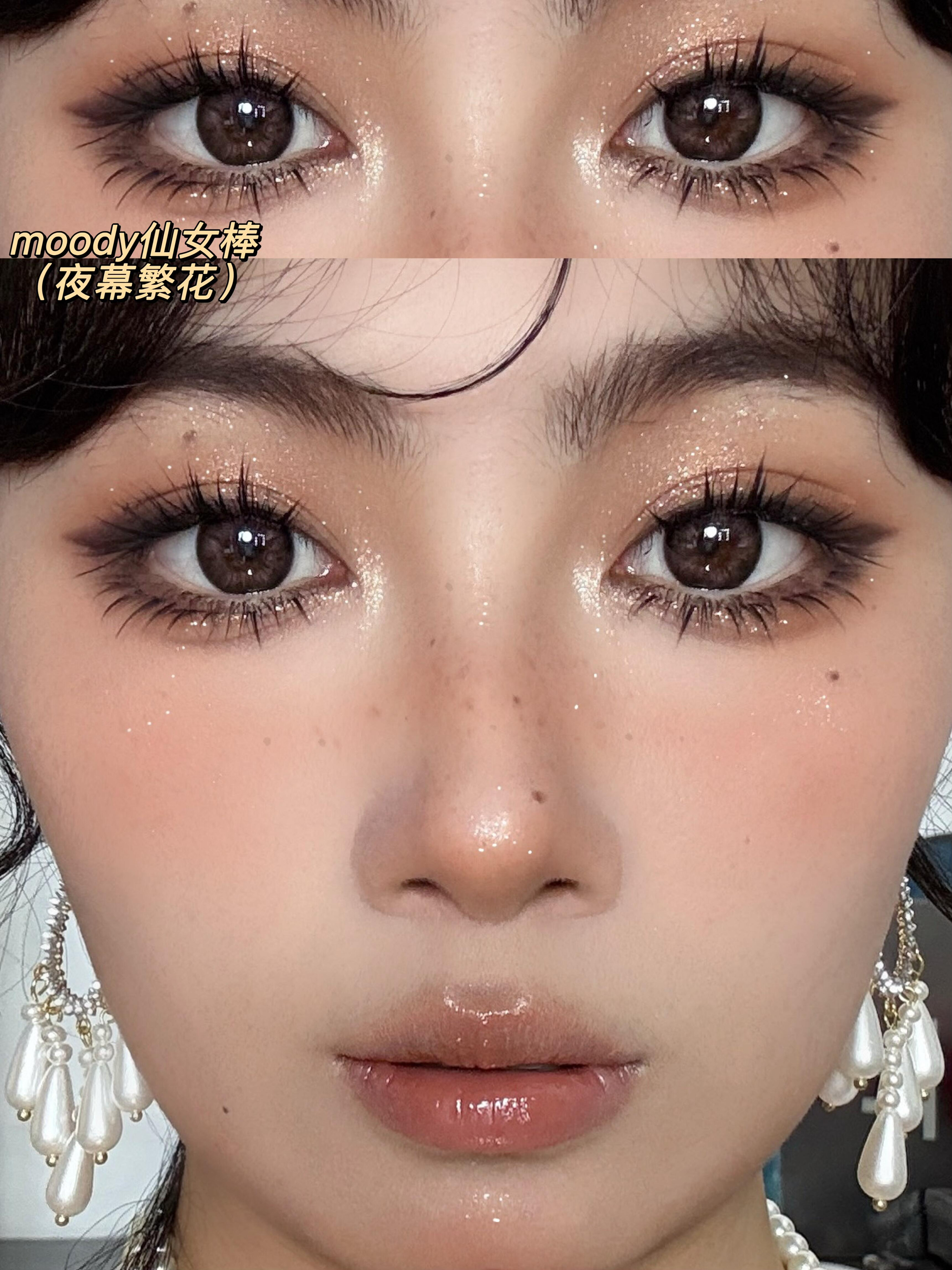 💕今天这个千金妆真的贵气值拉满! 真的是年末神妆各种聚会场合都适配! 今天的美瞳搭配的是moody烟花系列! 选了个人最喜欢的三副高光美瞳给大家参考! #moody冷泡乌龙茶[话题]#(白日游星) 这款是我最喜欢的棕色系,浅金双色不规则的高光上眼非常通透,很日常百搭属于可以盲入,完全不挑人的14.2直径上眼有神融瞳却不夸张!任何妆容都很适配! #moody仙女棒[话题]#(夜幕繁花) 这款是粉色烟...