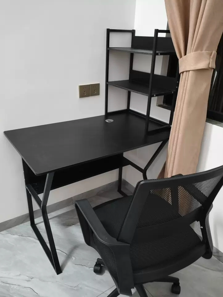 “谁懂啊家人们!刚布置好的卧室书桌尊嘟好爱🥹 凡积这张桌子自带置物架,收纳杂物超方便~ 不过安装时得仔细看说明书,不然容易装错部件🤣 现在坐在桌前办公学习,氛围感直接拉满,租房也有温馨小角落啦!💯”