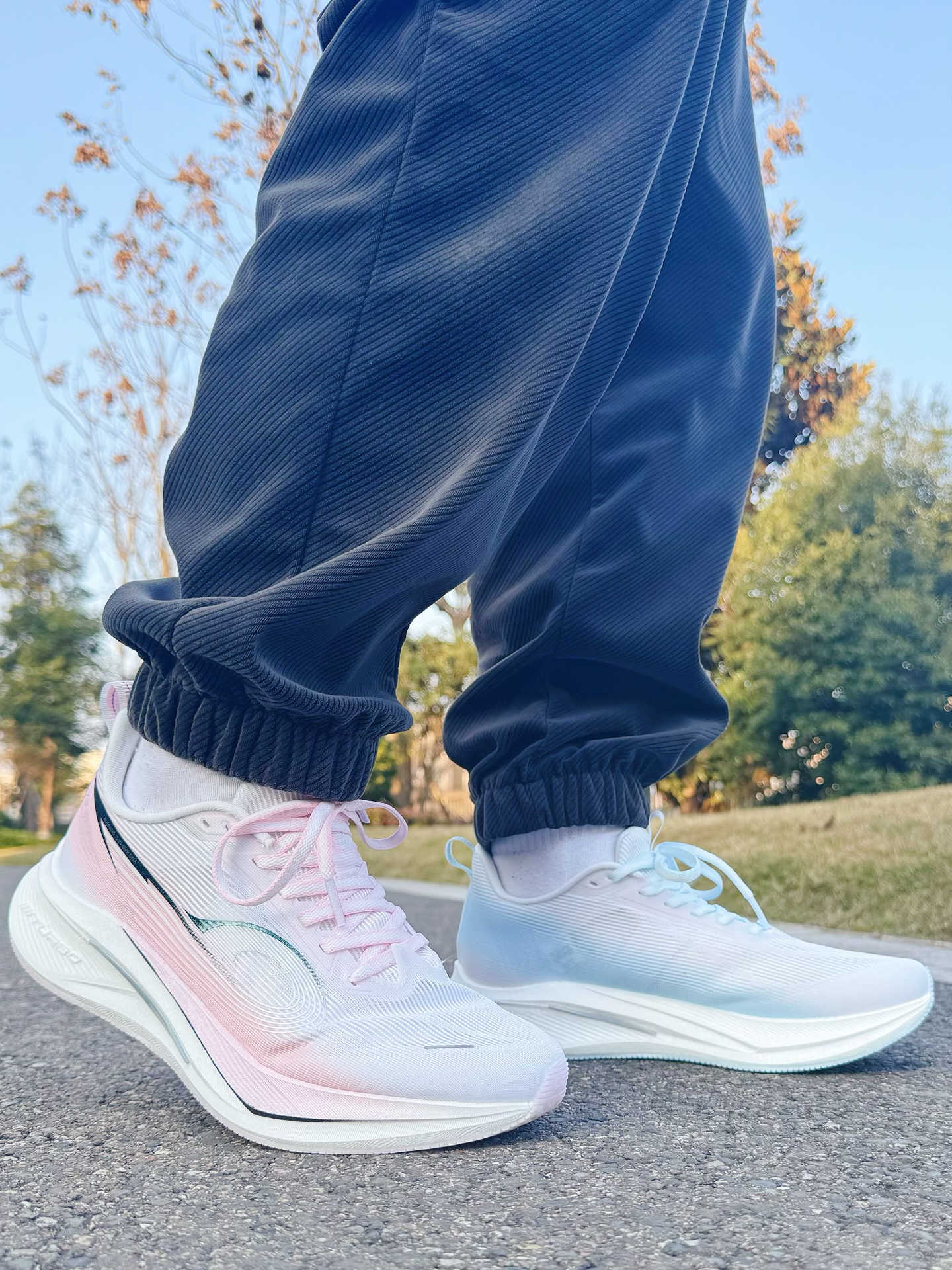 飞速4这个鸳鸯配色左蓝右粉,上脚是真的骚。出门跑步回头率直接拉满,路上跑友都要多看两眼。 脚感还是那个味儿——软弹适中,不用磨合,上脚就能跑。三叉戟TPU给到的稳定性够用,过弯啥的不发飘。 反正我是爱了。不管是严肃训练还是日常穿搭,这双都能hold住。@乔丹QIAODAN官方 #马上开跑 #新年追风起跑 #新年穿新鞋 #预制春节穿搭 #中乔飞速4