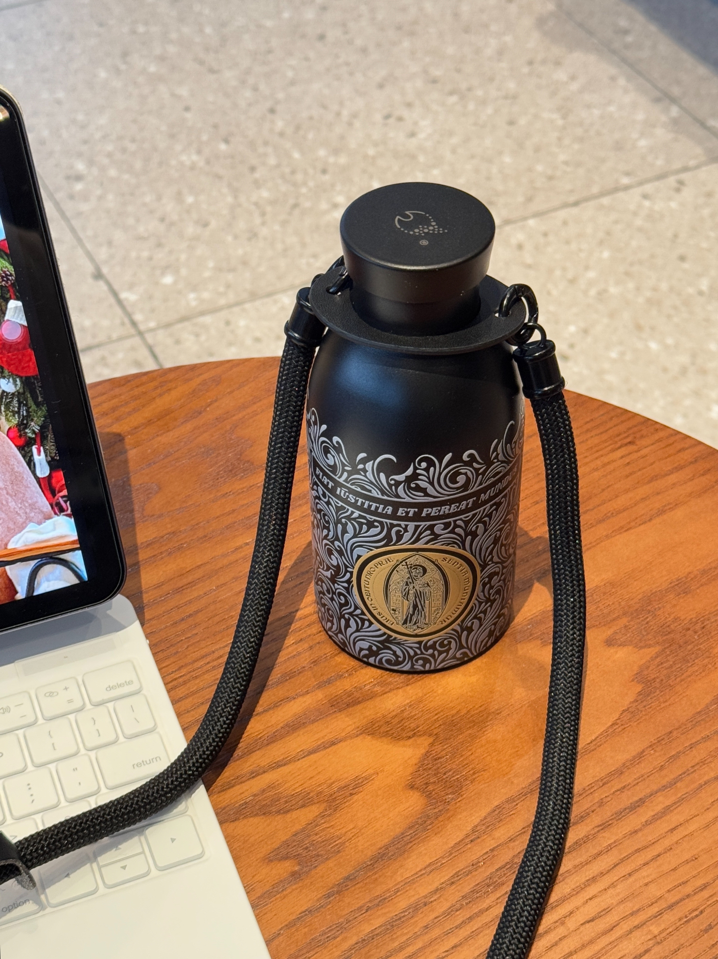 咱就是说介个新品保温杯太酷啦 3D打印的杯身很炫酷 自带了杯带感觉出门可以解放双手啦 内胆304的我感觉喝水都很安心 这个黑金配色看着好高级 送给男孩子也太合适啦