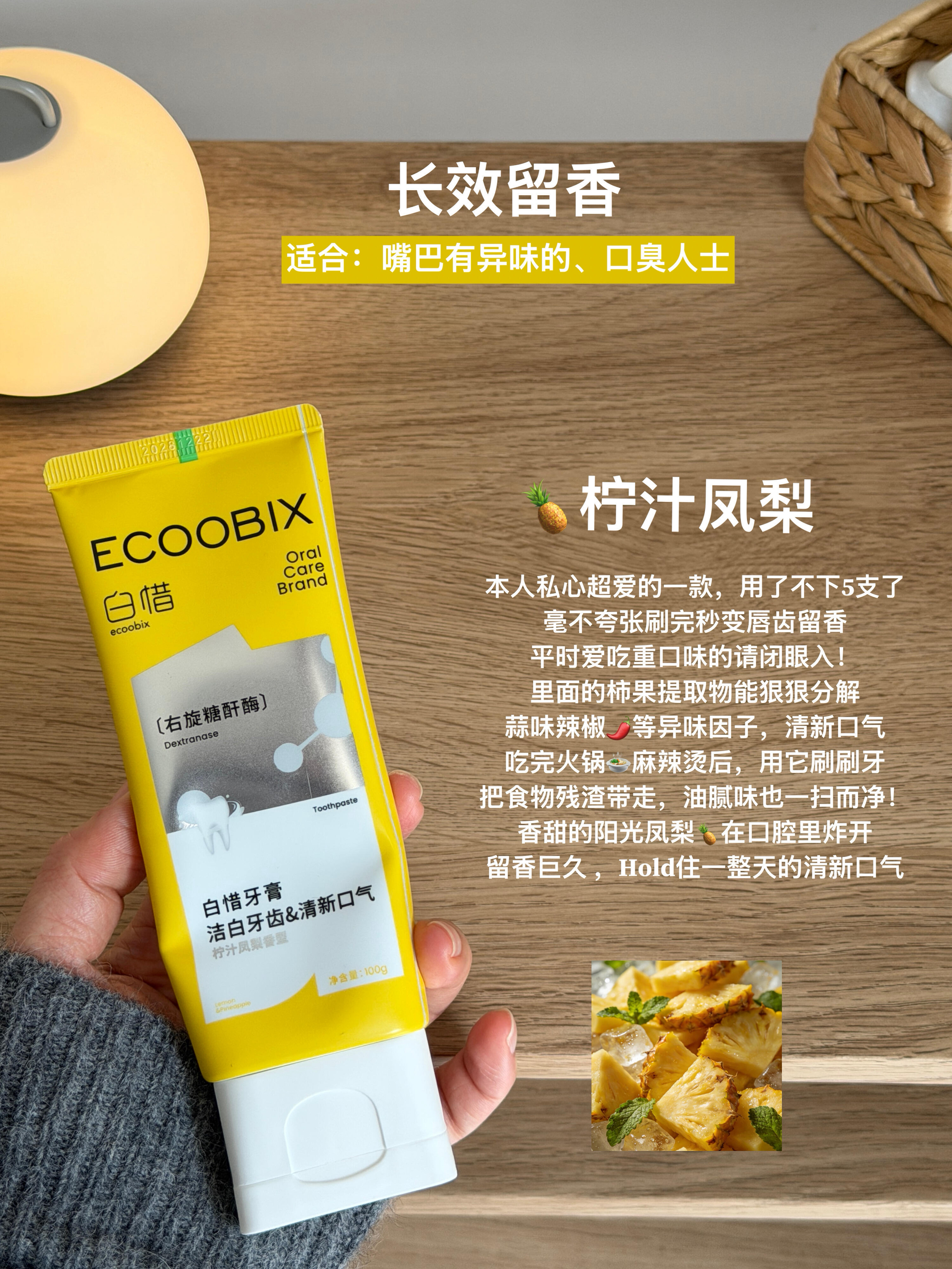 作为白惜的老粉不得不说 他家的牙膏在清新口气这一块是真的很有一手 不管你是爱吃甜食🍰重口味🍲食物,嘴巴有味道 经常喝咖啡奶茶,味道特别大,说话不自觉捂嘴🙊 还是牙周容易敏敏的姐妹 都能在他家找到合适的 氨基酸配方,巨巨巨温和不辣嘴 泡沫丰富,刷完嘴巴超级清爽净澈 而且香味选择非常多 花香果香茶香,每一款香味都特别好闻 全线都有海洋糖酐酶加持 能高效水解口腔糖分和异味 让小嘴一整天都是香香的🌸🍵 社...