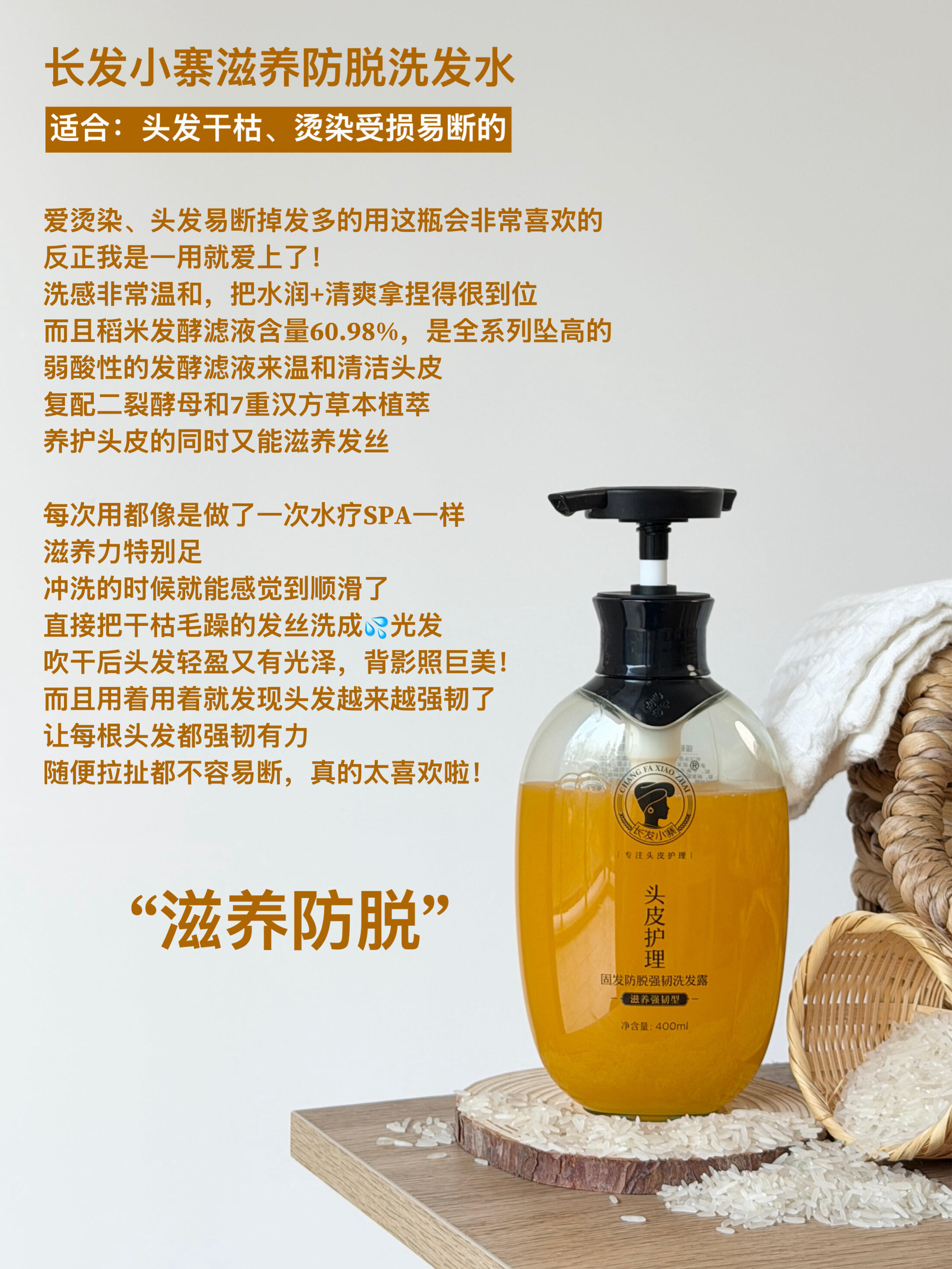 小时候经常看到我的太奶奶用淘米水洗头 她那会已经八十多了,头发依然非常茂密有光泽! 本来还很遗憾自己没有实践过! 没想到偶然间给我刷到了长发小寨 这个来自广西长发村的宝藏洗护品牌! 可把我激动坏了 稍微有了解的姐妹都知道那边的阿姨姐姐们 头发都超级浓密乌黑的! 他们结合千年淘米水养发智慧以及现代工艺 做成了我们日常方便使用的洗发水了 用非遗红瑶稻米发酵滤液来温和清洁、调理头皮环境 只有把头皮养好了...