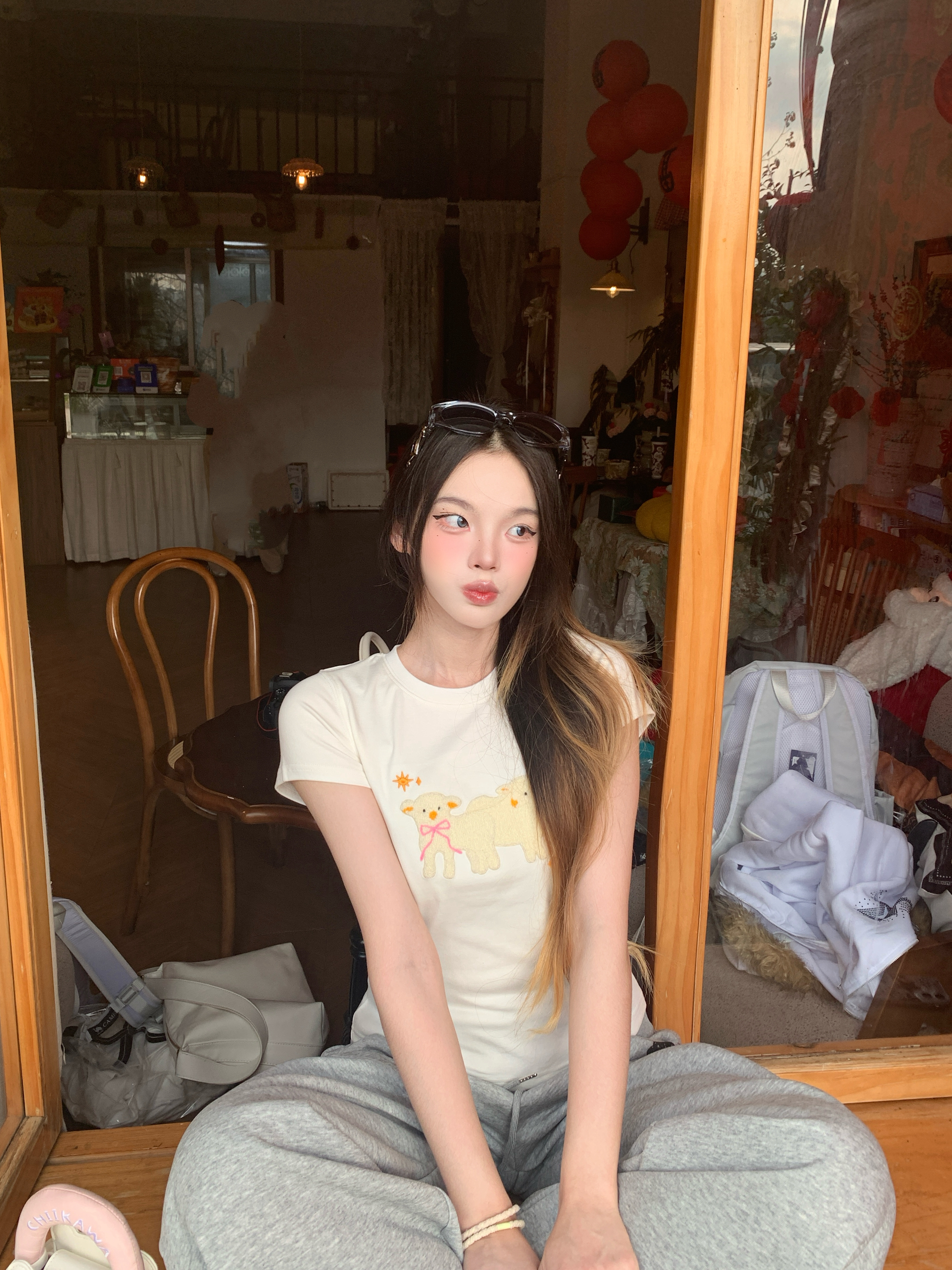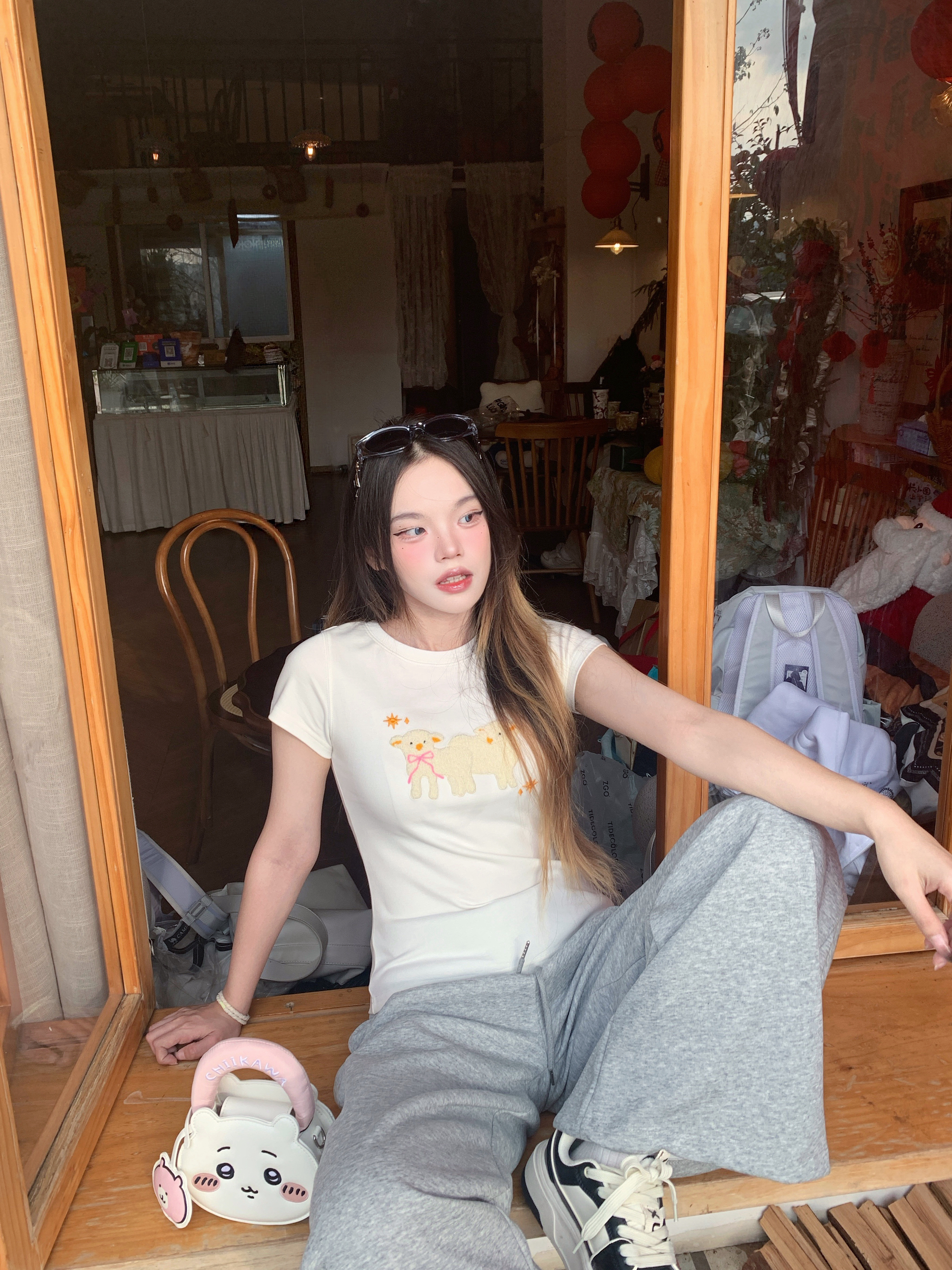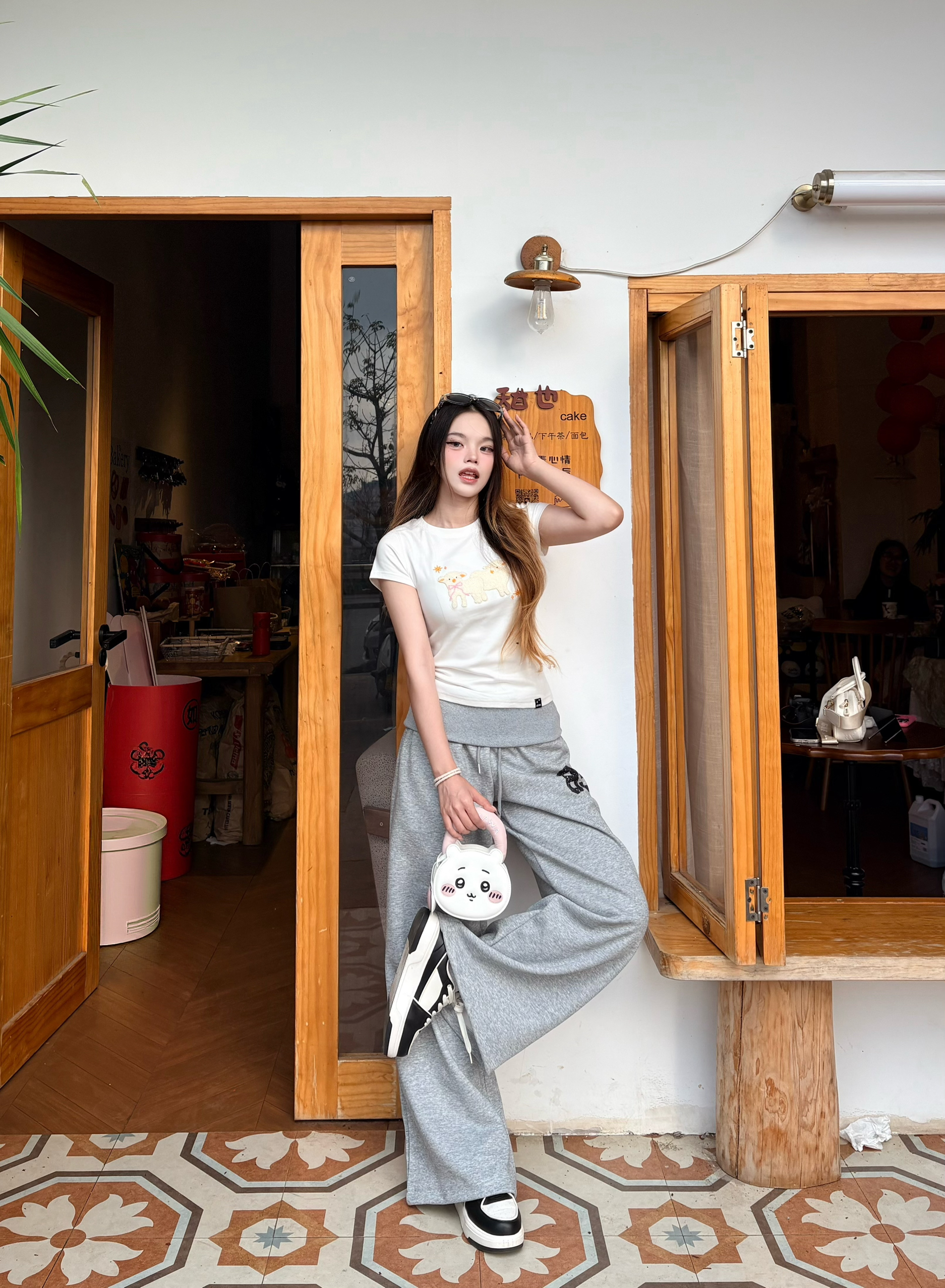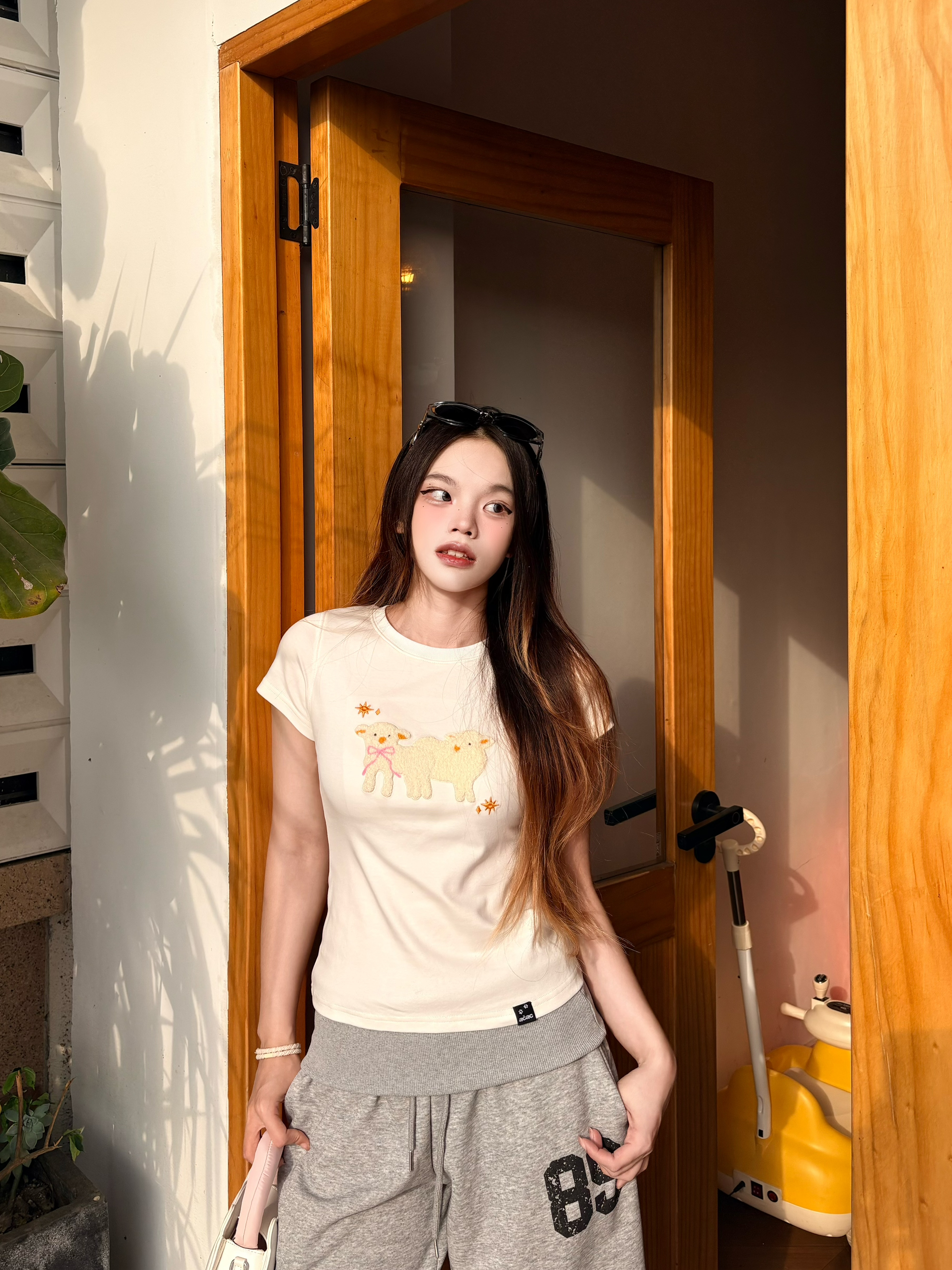 今天是软fufu的小羊系女孩🐑 白T上的立体小羊刺绣太戳我了,像把春天的云朵穿在身上~ 搭配灰色阔腿卫裤,慵懒又随性,走路带风的松弛感直接拉满。🌼 黑厚底靴和亮红托特包做撞色,甜酷平衡得刚刚好,日常出街超吸睛❤️ 我165/96 穿的s