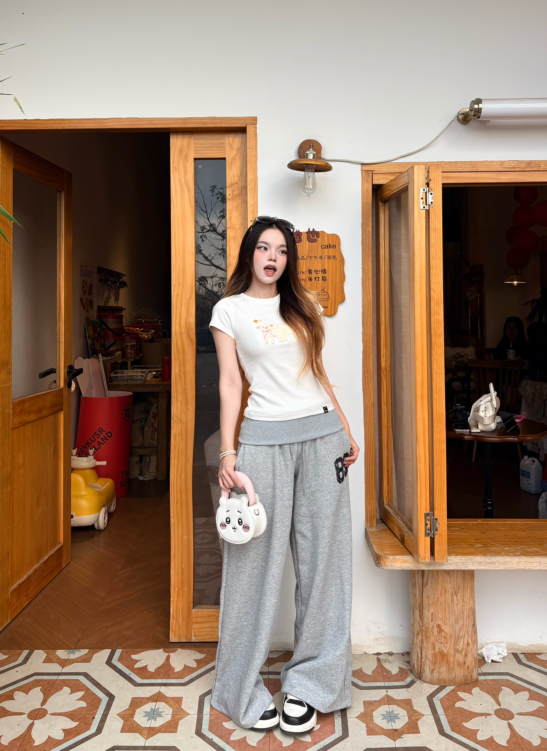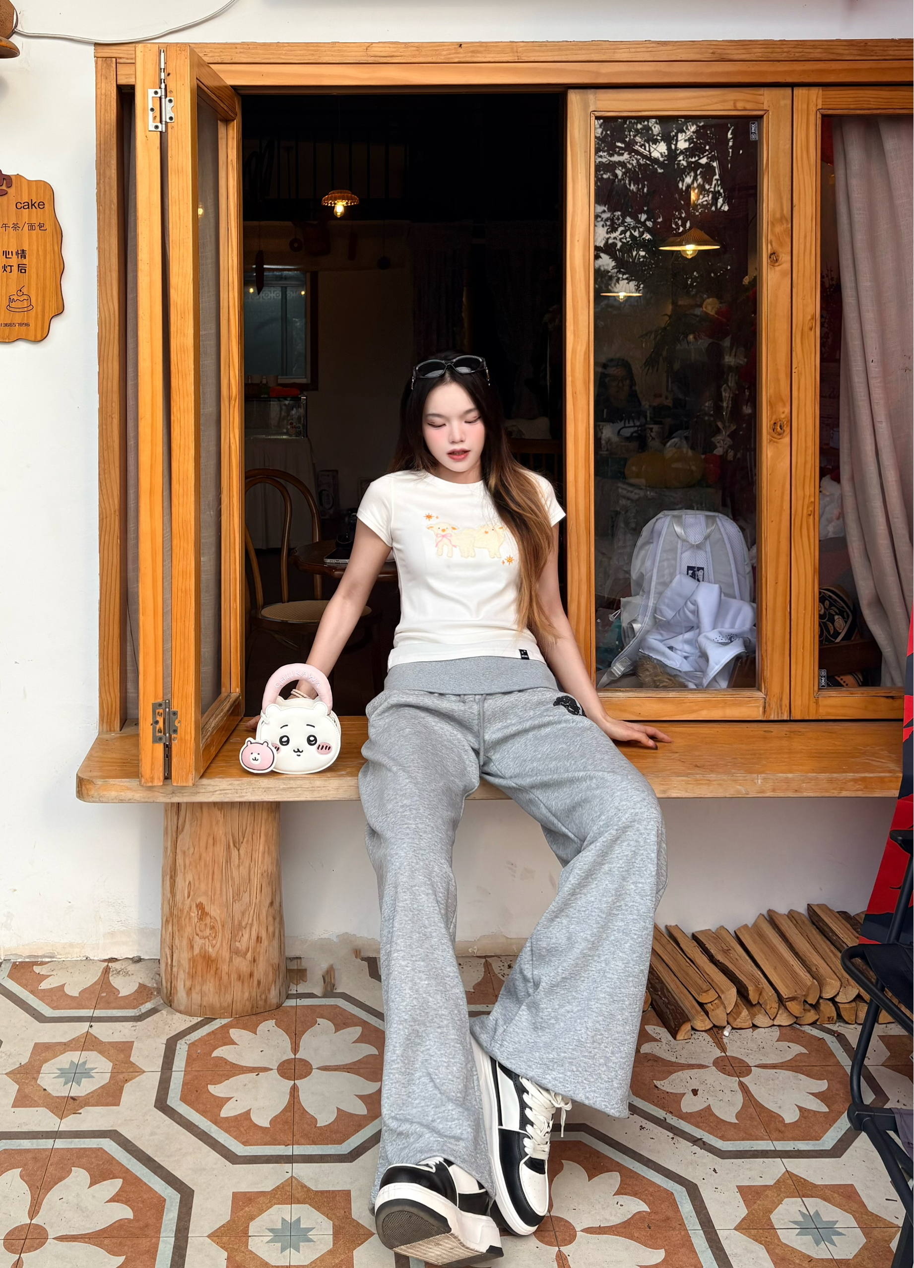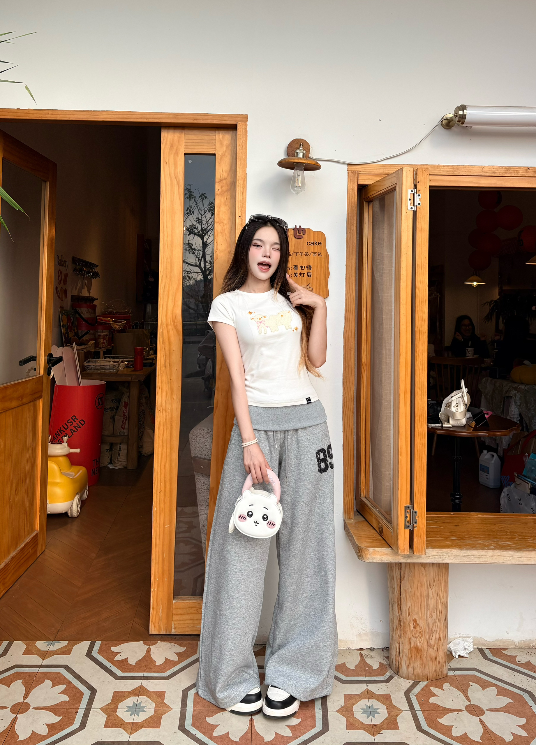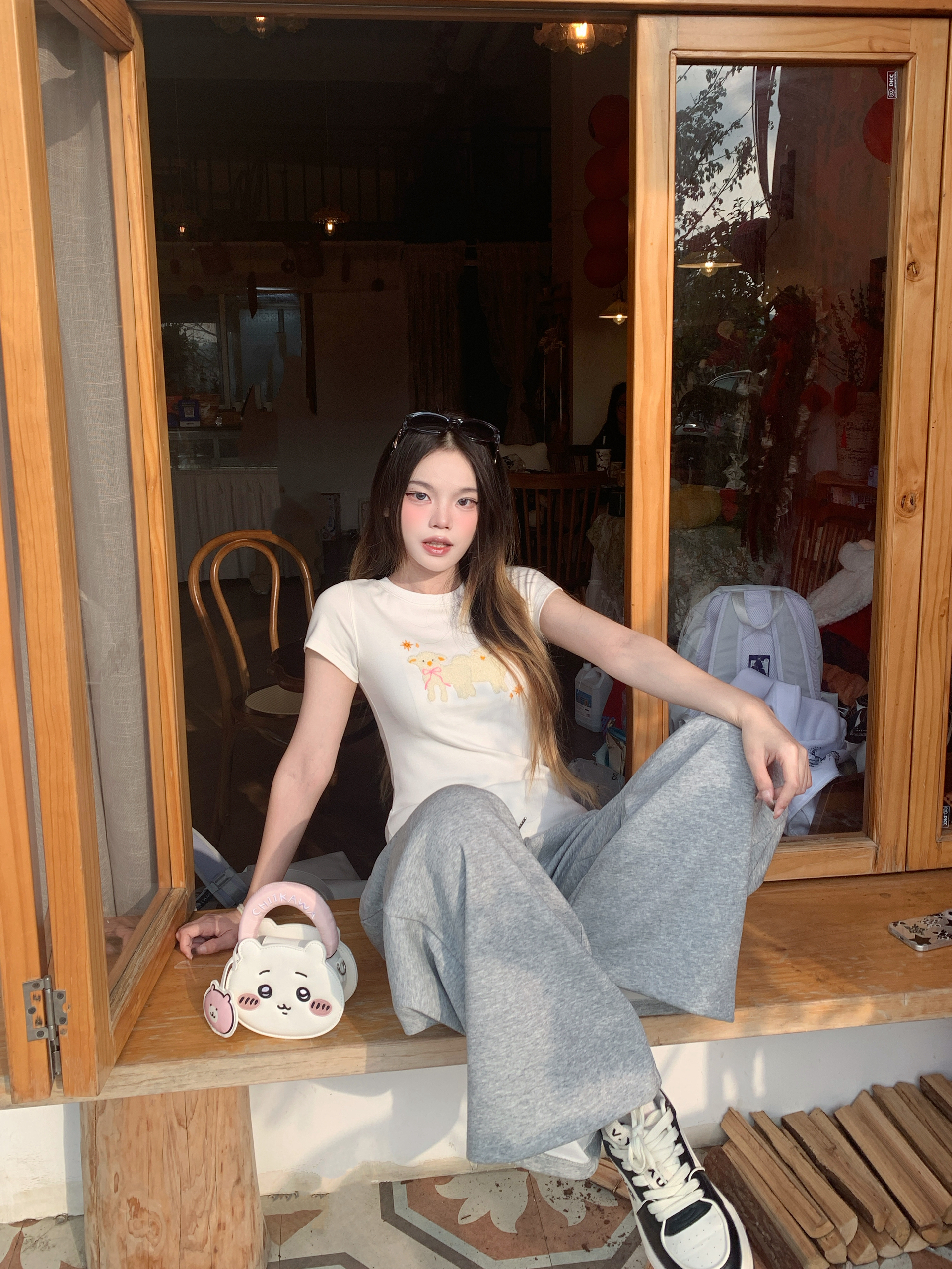 今天是软fufu的小羊系女孩🐑 白T上的立体小羊刺绣太戳我了,像把春天的云朵穿在身上~ 搭配灰色阔腿卫裤,慵懒又随性,走路带风的松弛感直接拉满。🌼 黑厚底靴和亮红托特包做撞色,甜酷平衡得刚刚好,日常出街超吸睛❤️ 我165/96 穿的s