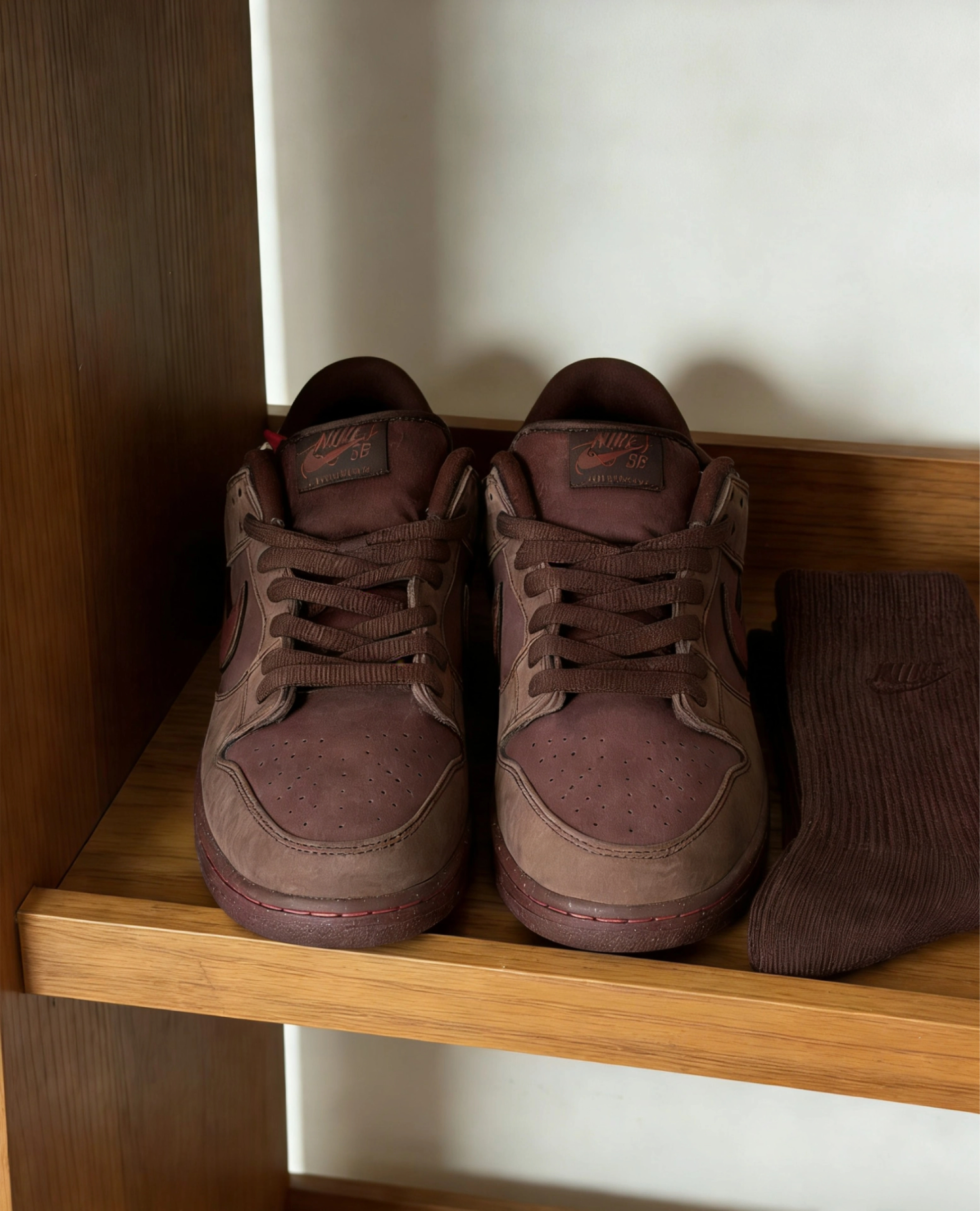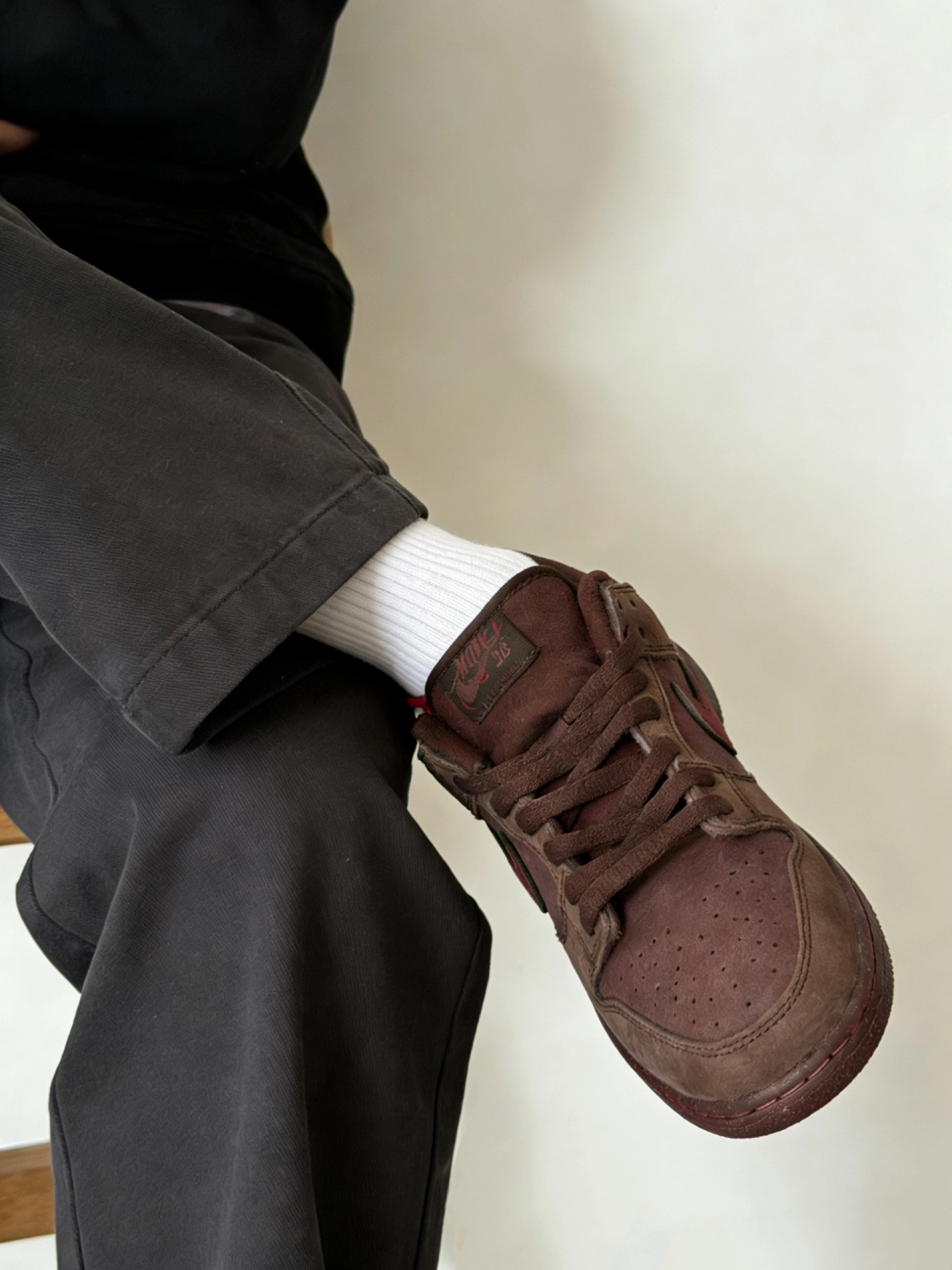 以为是普通红棕?上脚才发现是“氛围感天花板”并且上脚包裹感超好,软乎乎的,一点都不磨脚,懂鞋的都在偷偷收了,这双酒红Dunk才是冷门宝藏