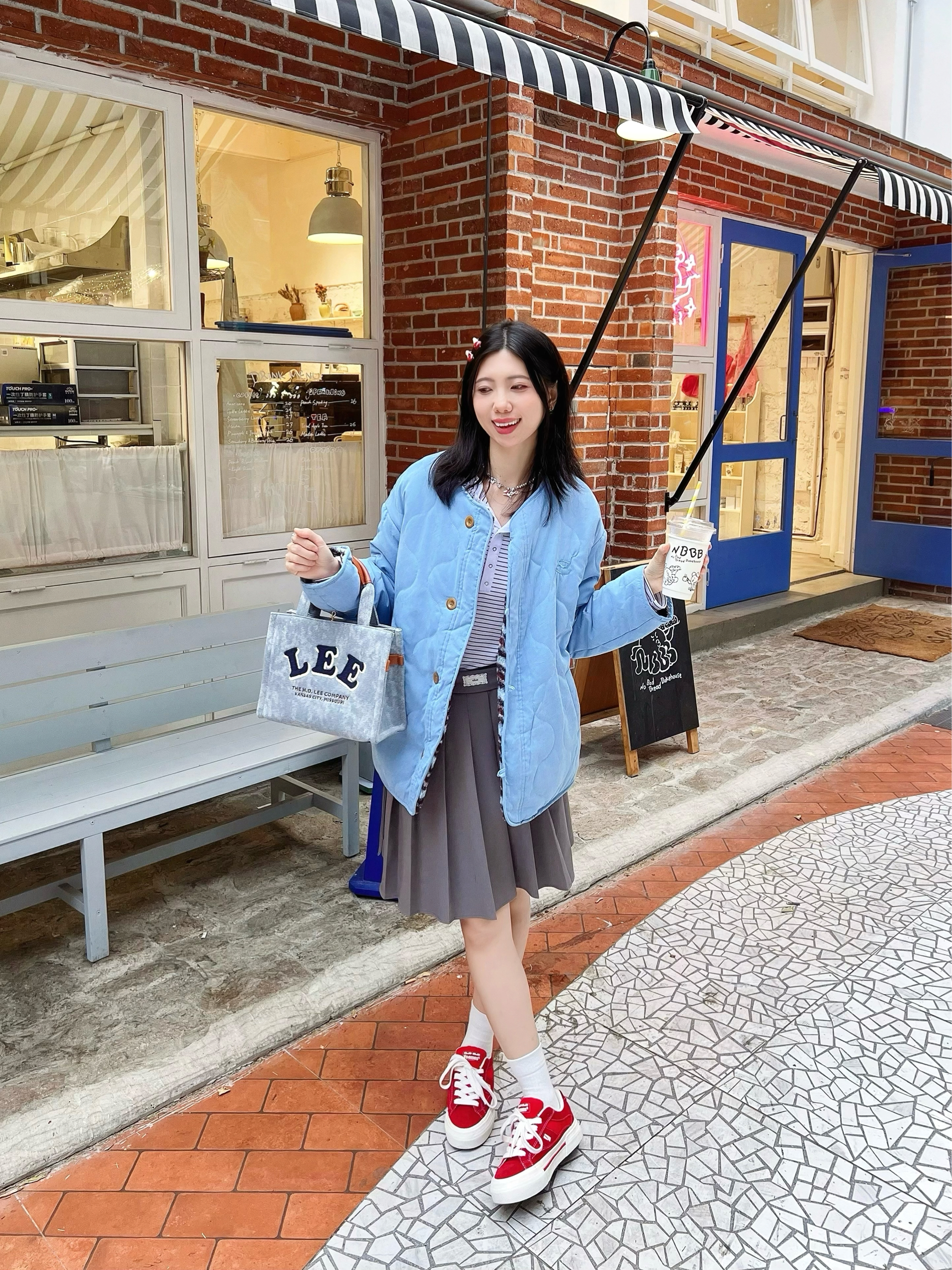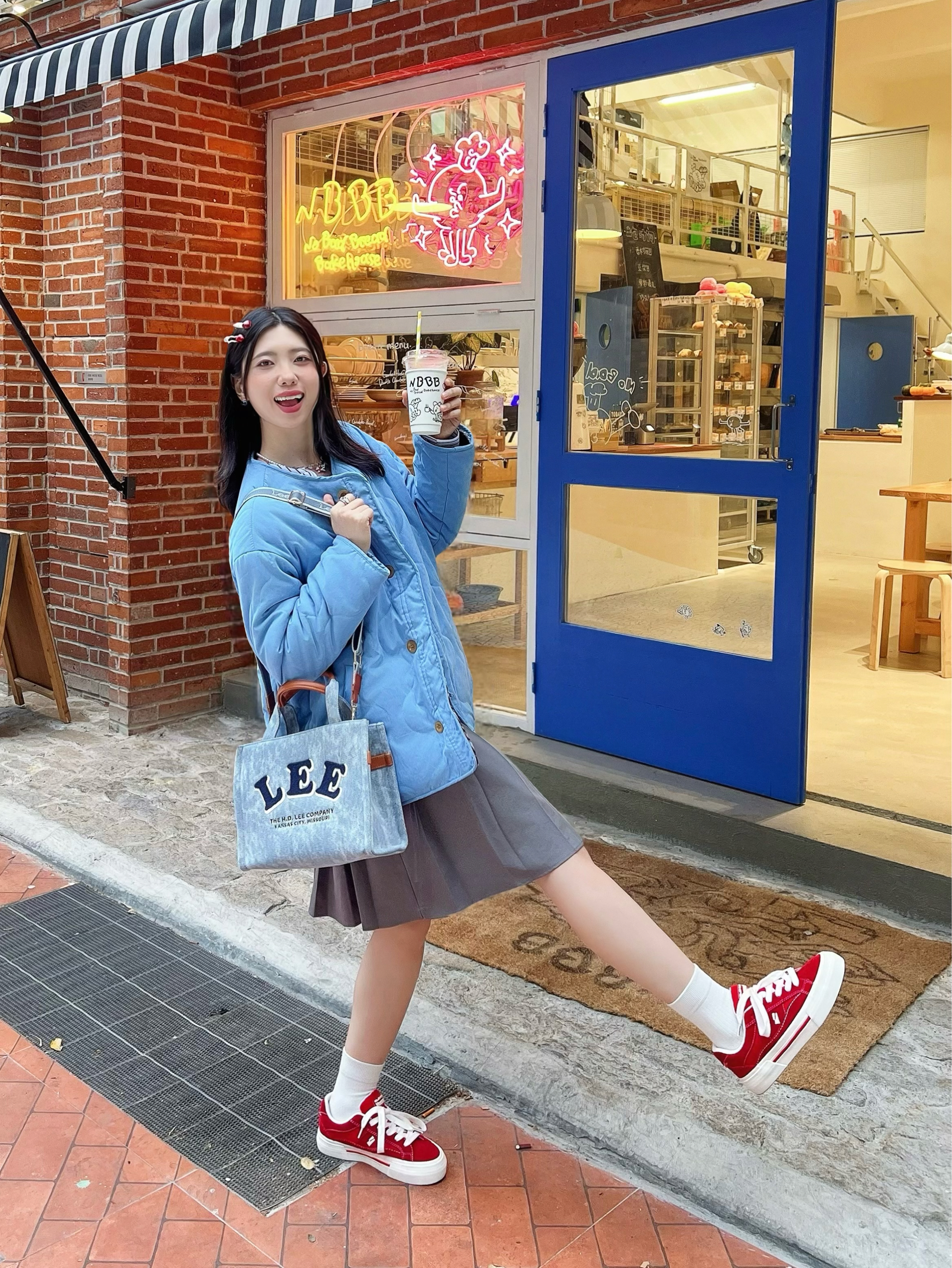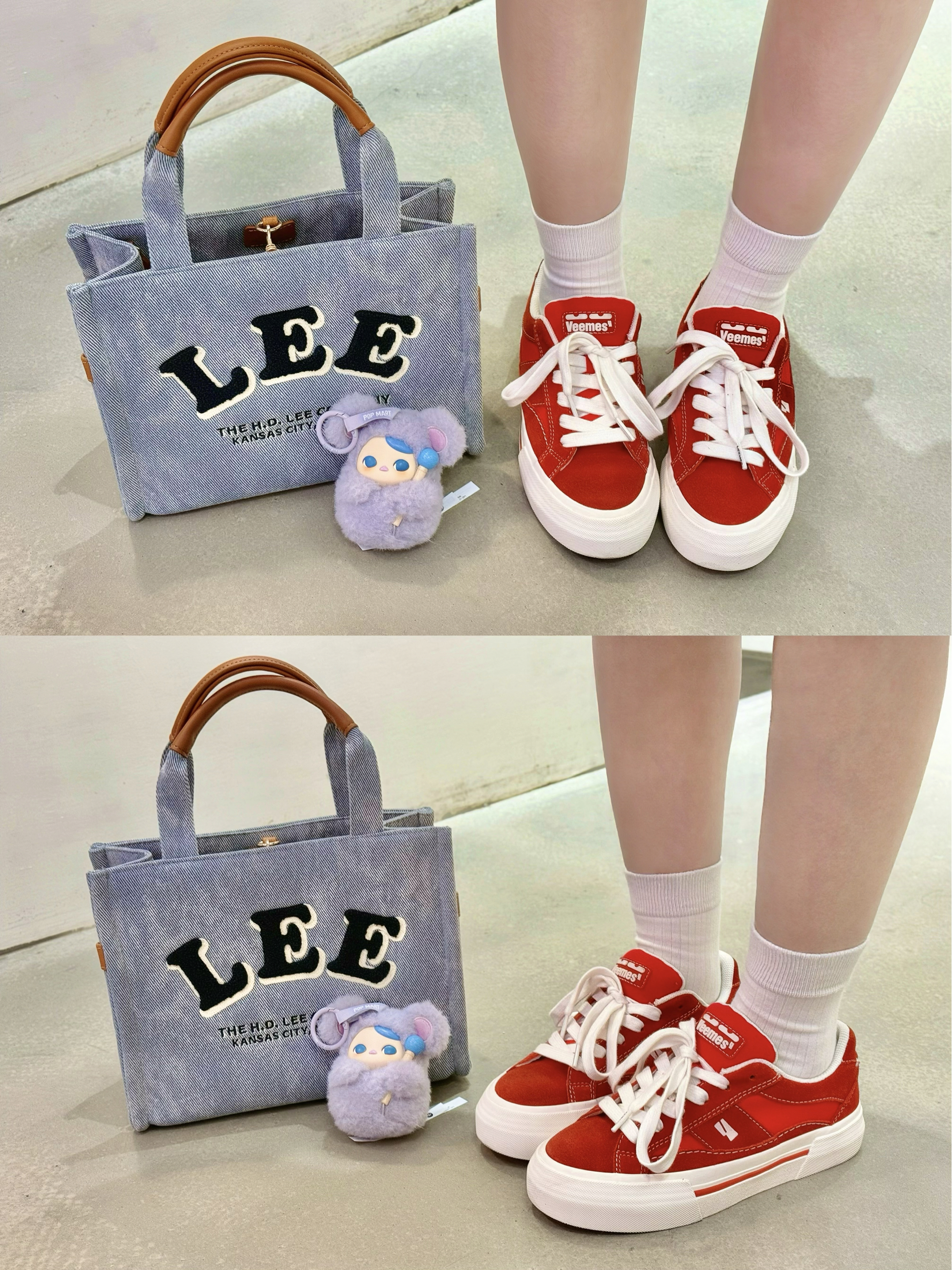 新年衣服不咕咕🐦新年这么穿,保暖又时髦✨ 🖊️百褶裙*韩系风棉外套 再拎个和外套颜色呼应的牛仔托特包 还有小红鞋和发夹,增加点新年氛围 🧸包包上还有个我最爱的毕奇敲敲!为啥这个颜色大家不喜欢!这可是紫腚行~