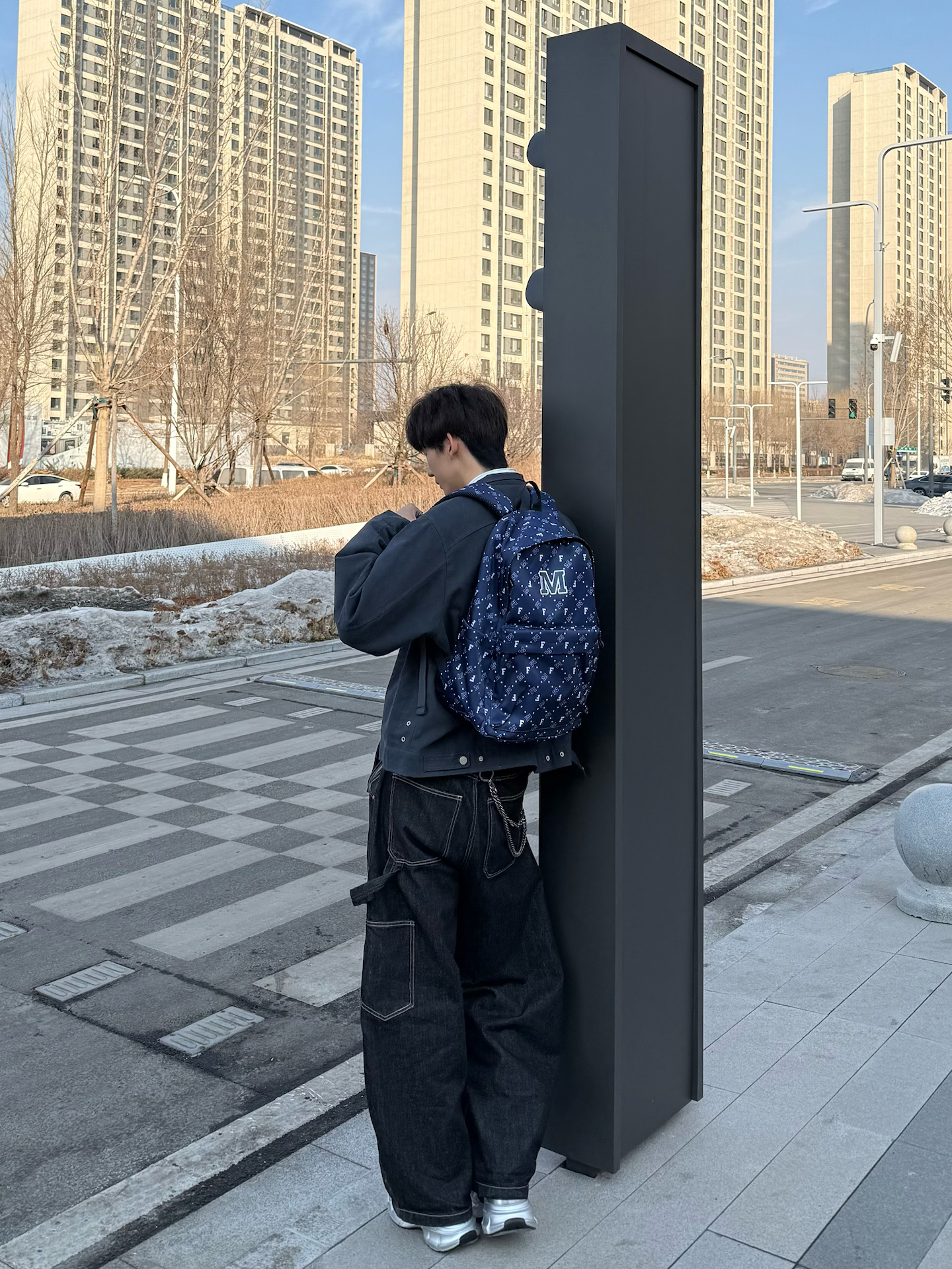 开春了🍃终于不用裹得像个粽子了 今天这身还蛮随性的✌️ 短款藏青夹克+黑色阔腿裤 简单又利落 看起来又不杂乱✅ 里面叠了件条纹衬衫 层次这块也抓住了~ 搭了双ZHR的银白老爹鞋👟 刚好让色调饱和一下 临走抓了个马克华菲的包包 💼 主要是这次带的东西有点太多了 充电宝钥匙啥的 不带包 真的没地方放🤔 在街上闲逛一圈😢感觉人比年前还变少了许多 可能都在为今年的目标而努力吧😎 #预习一下早春穿搭 #开...