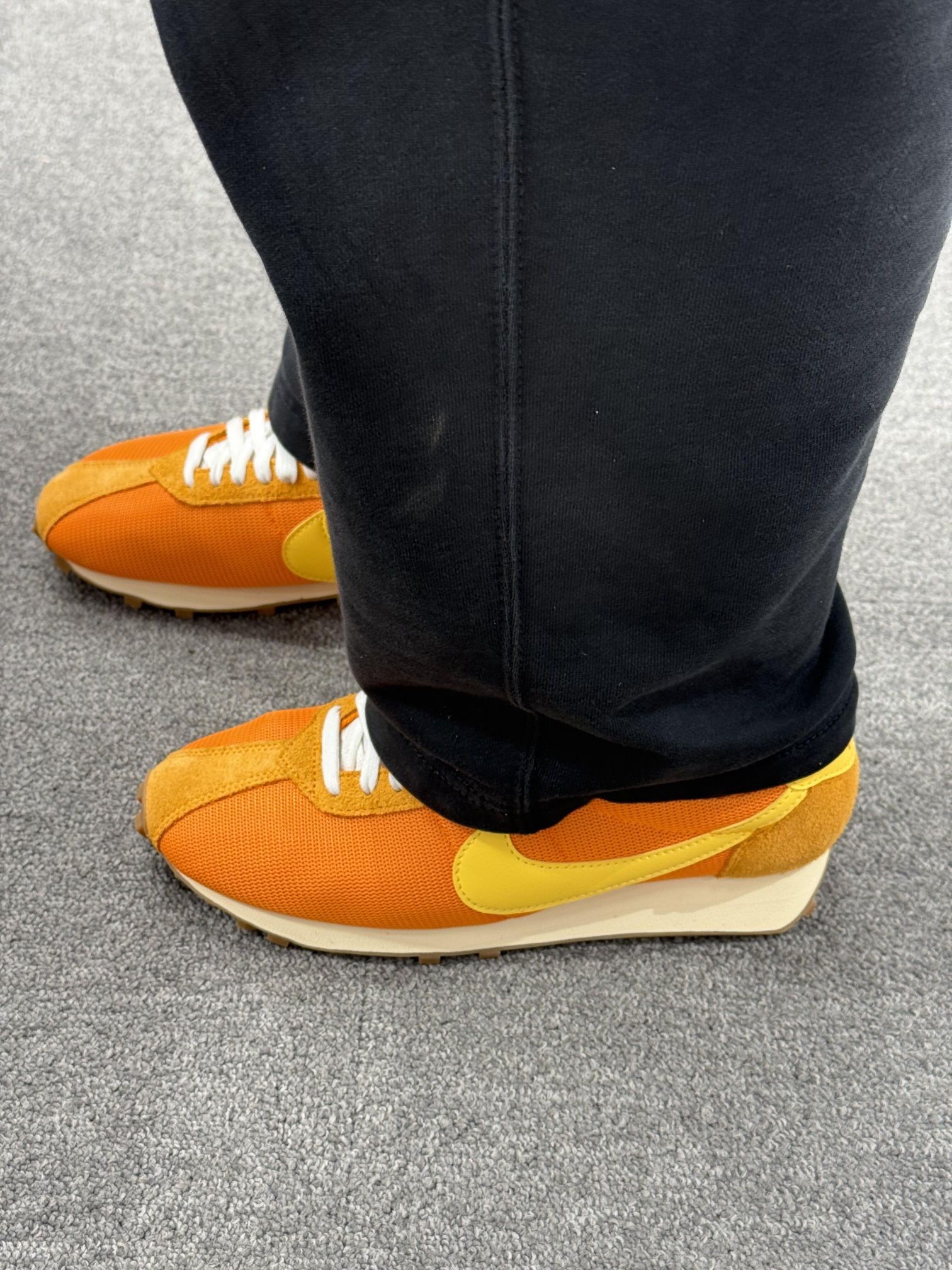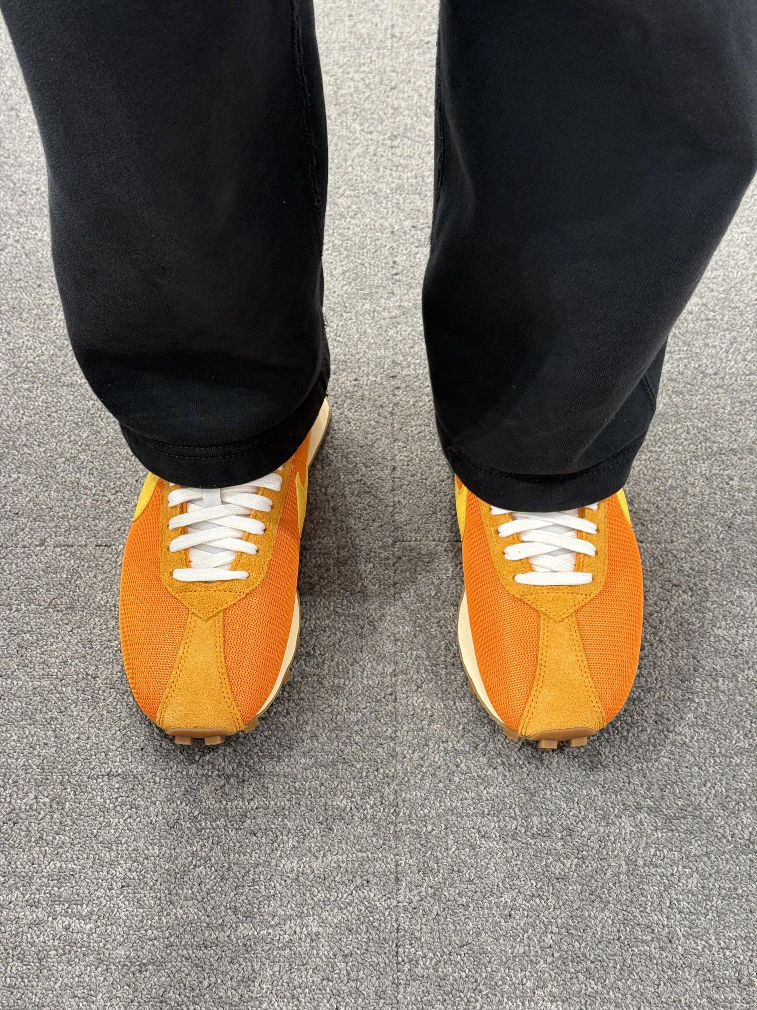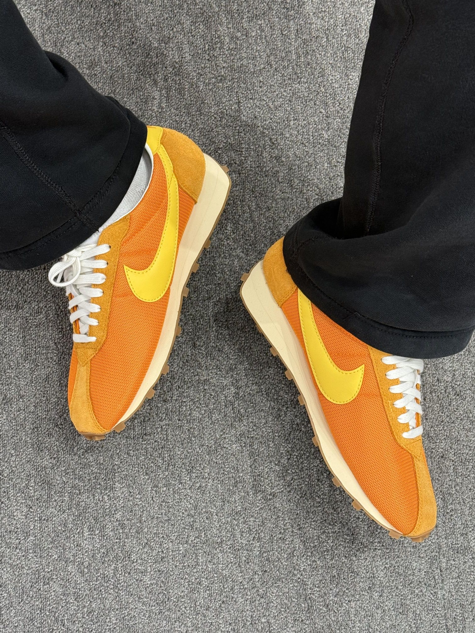 是谁的橙色DNA动了! 这双Nike华夫鞋真的把我拿捏住了✨ 亮橙+暖黄的配色像把橘子汽水穿在脚上 走在街上回头率直接拉满! 网眼+翻毛皮的材质透气又复古 华夫大底踩上去软乎乎的 暴走一天也不累脚~🍍🍍 搭配黑裤子就是美式复古氛围感本人! 今年夏天的显眼包鞋履预定✅