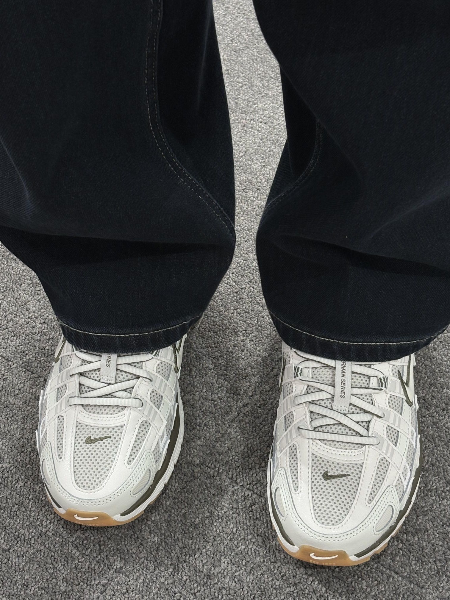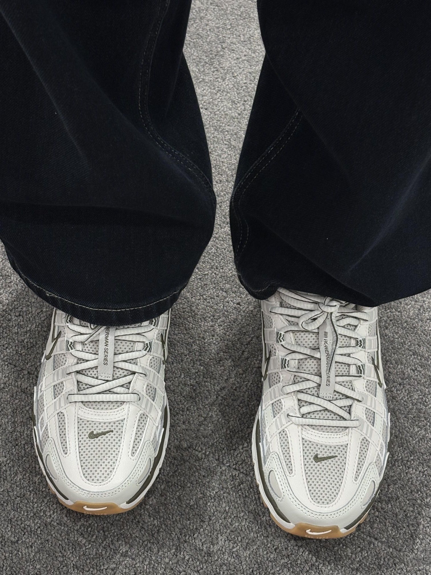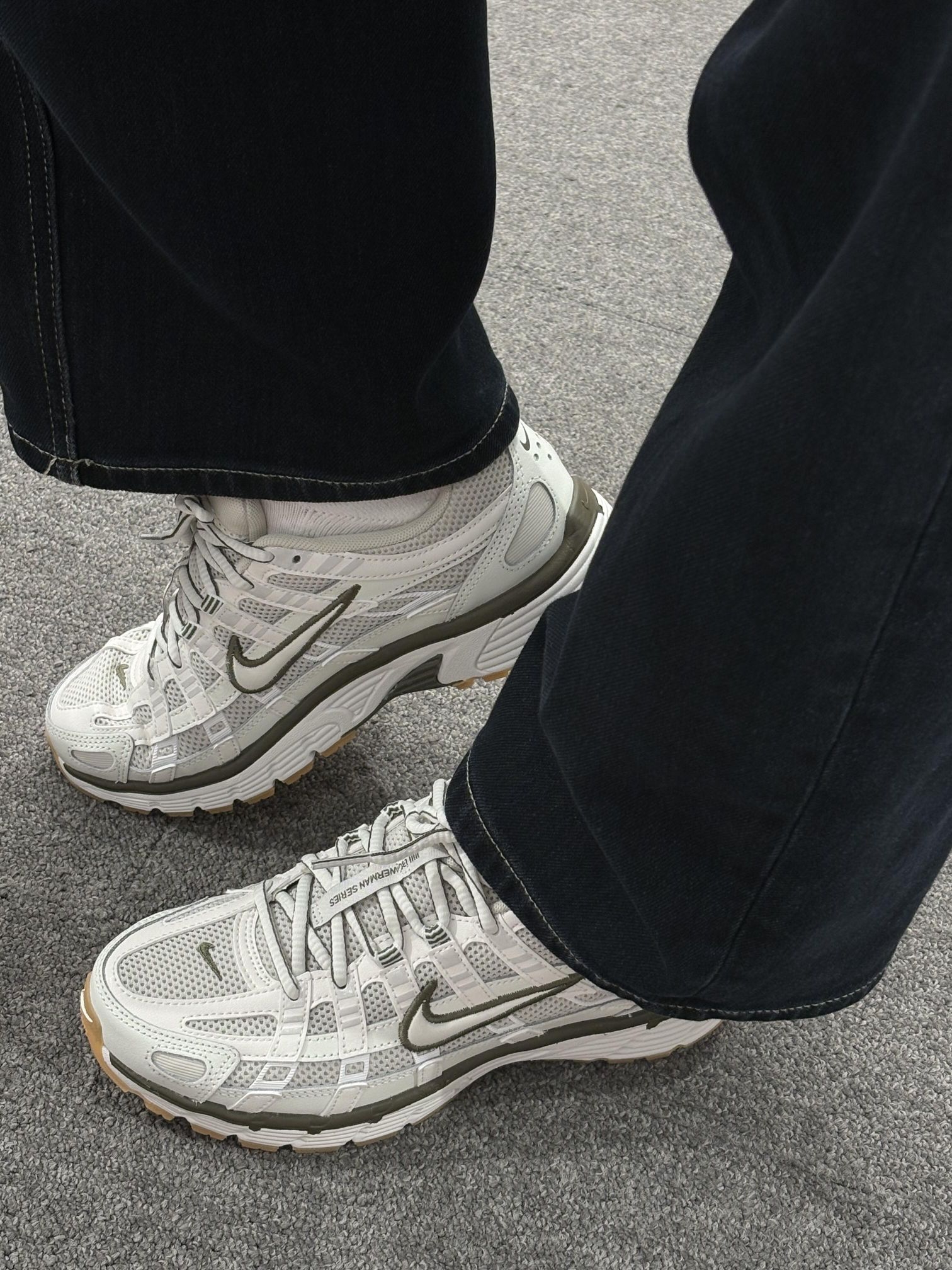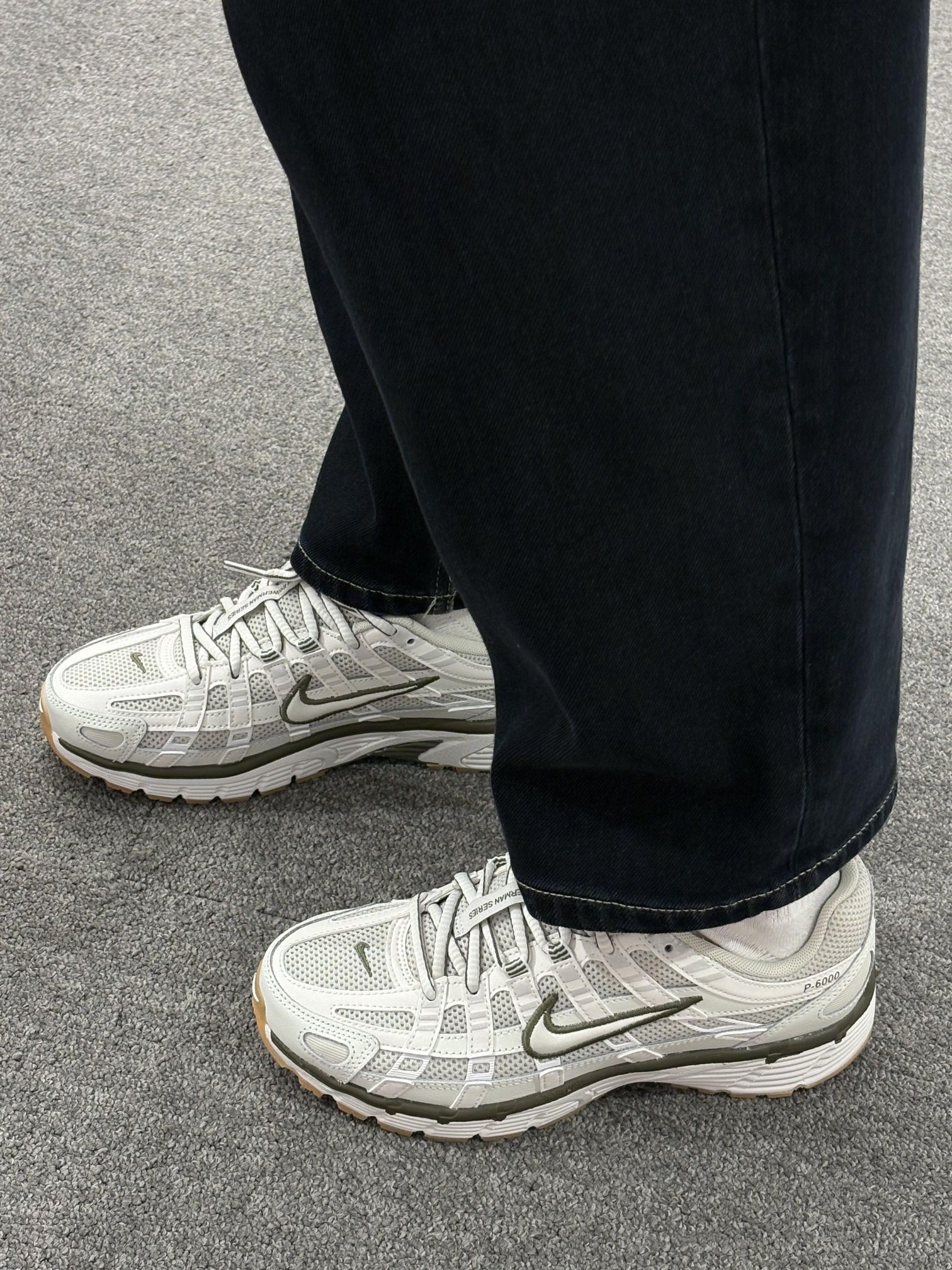 谁懂啊!这双鞋真的把复古感焊在脚上了✨ 今天出门被问了800遍的宝藏老爹鞋! Nike P-6000这双真的是我近期心头爱❤️ ▫️配色是干净的米白+橄榄绿做旧细节 ▫️网眼+皮革的拼接鞋面,透气又有层次 ▫️鞋底自带做旧效果,复古氛围直接拉满 ▫️搭配我的黑牛仔裤,松弛感这不就来了 脚感也很惊喜! 软弹又有支撑力,暴走一天都不累。 不管是日常通勤还是周末citywalk都能打, 百搭程度直接封神...