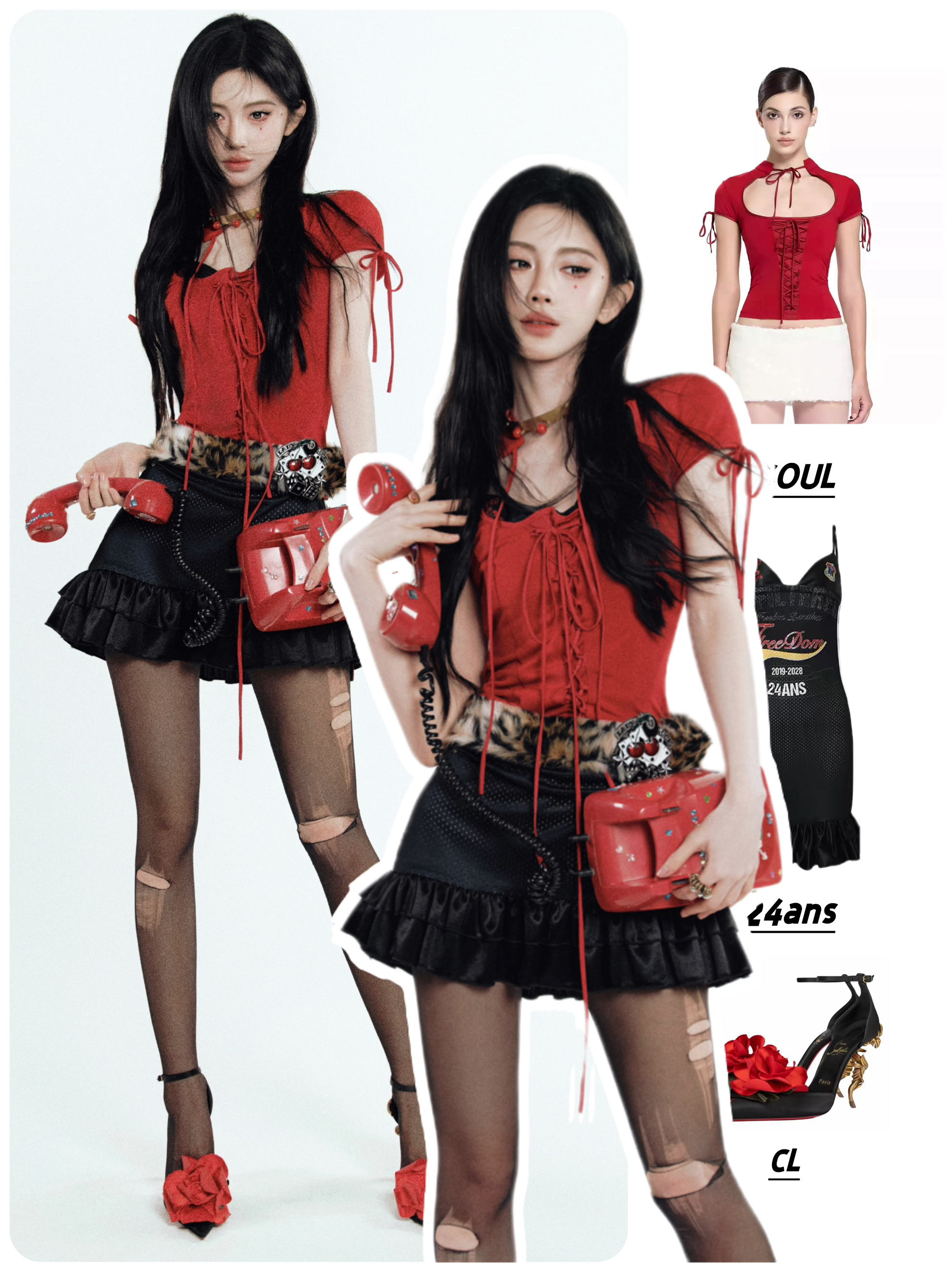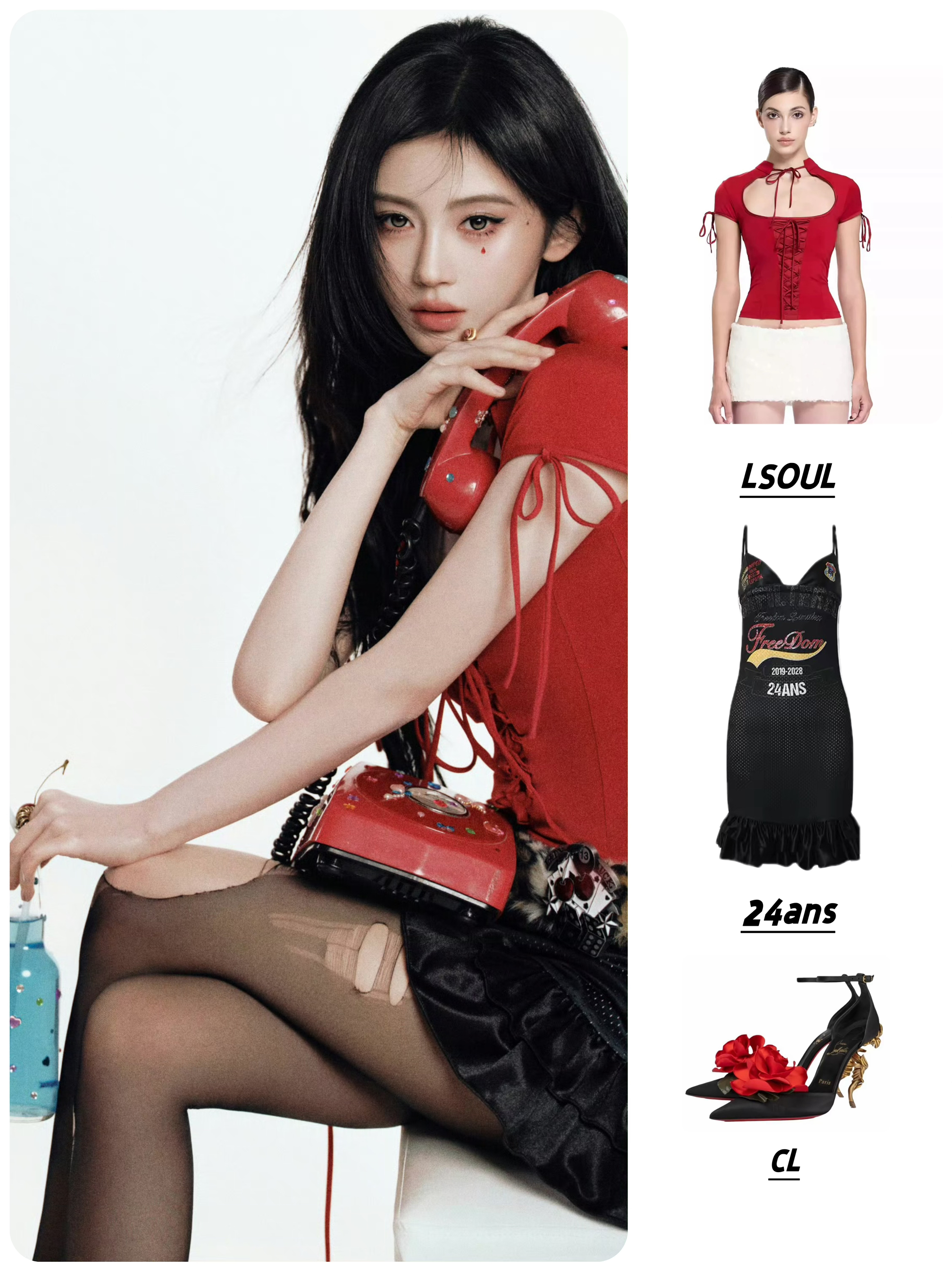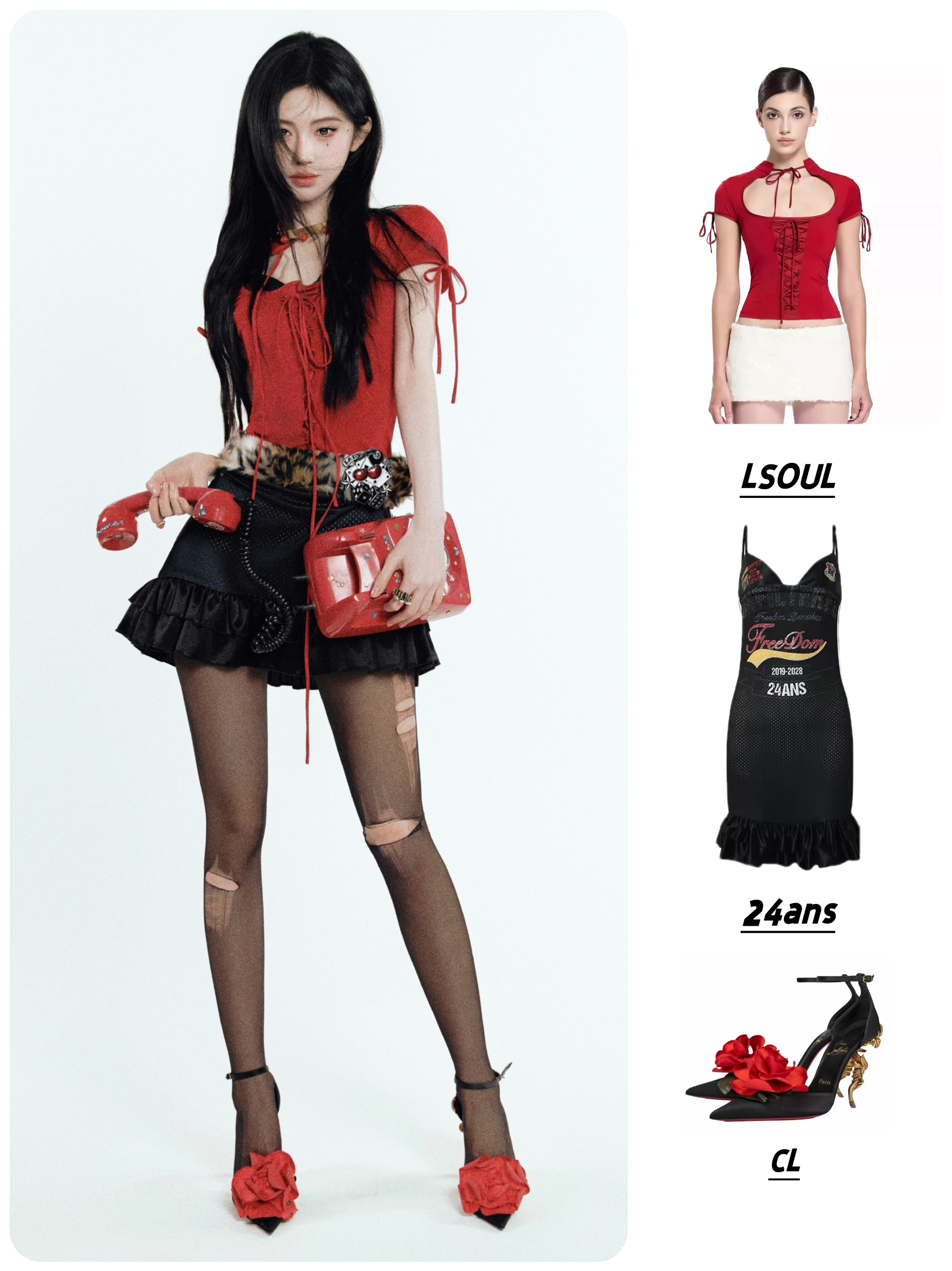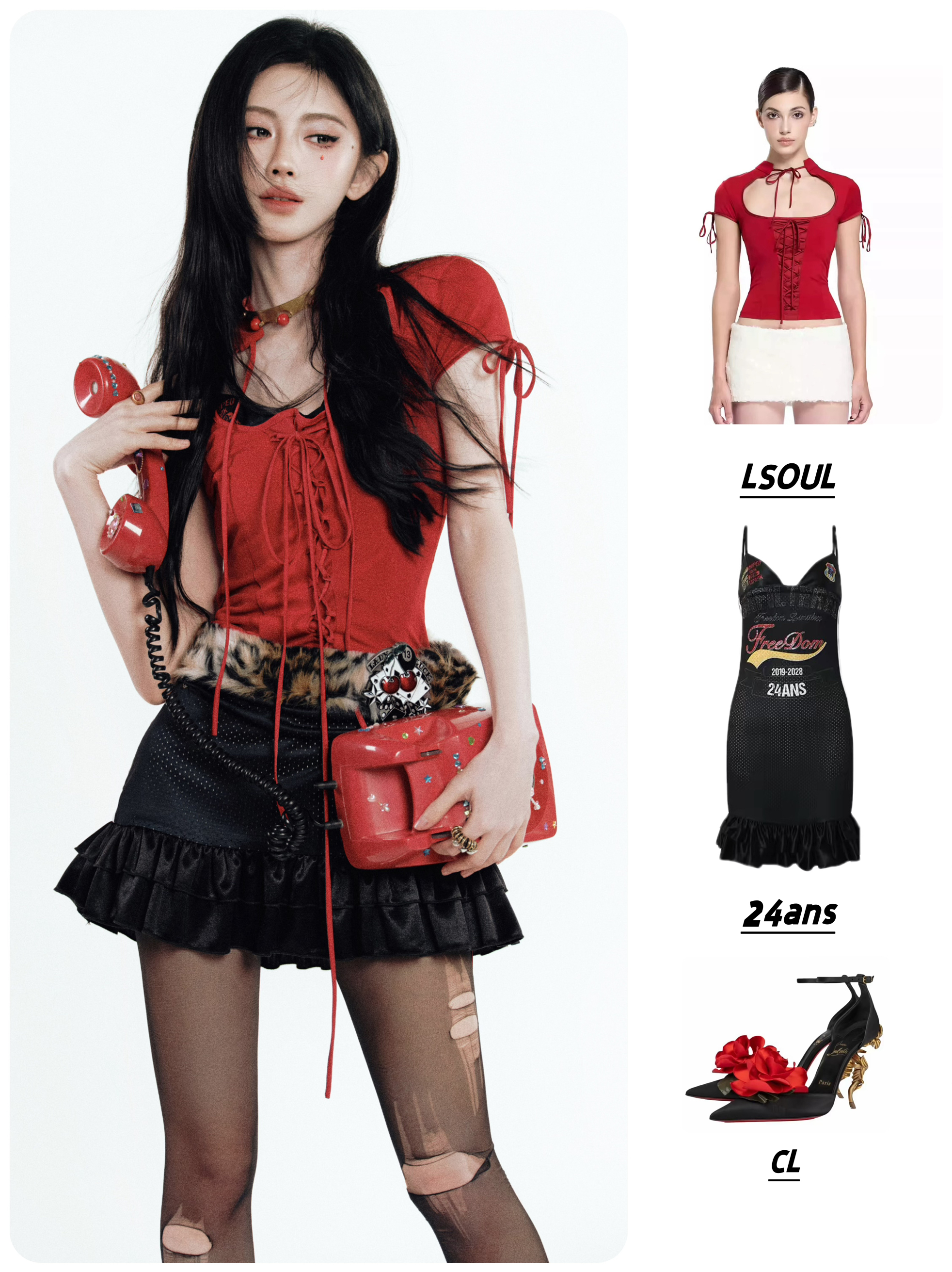 👕LSOUL 系带短袖低领修身短款上衣 👗24ans Strap jersey dress | 字母印花拼接花边球衣吊带连衣裙 👠CL Bellarose 尖头搭扣 异形跟 高跟鞋