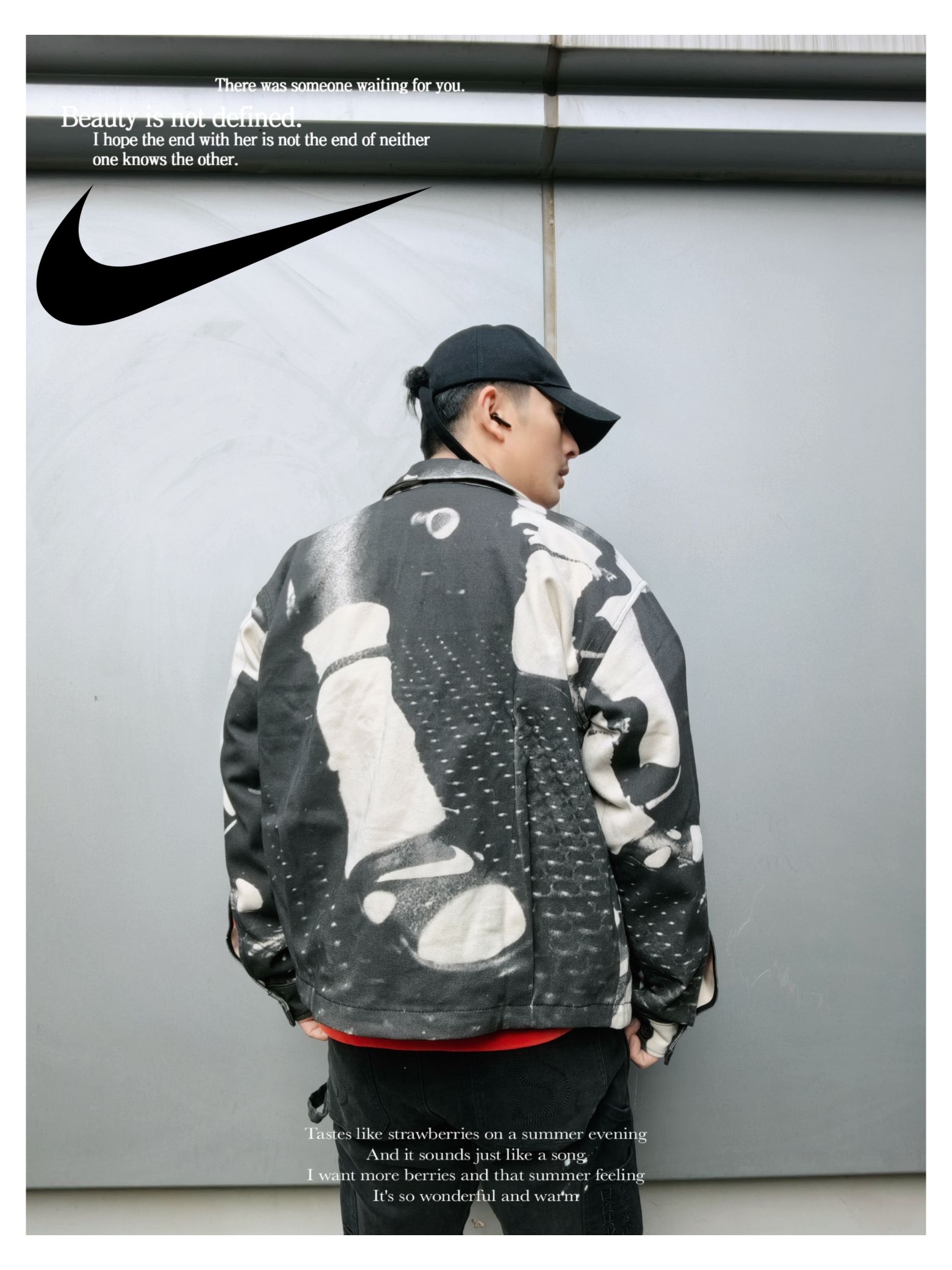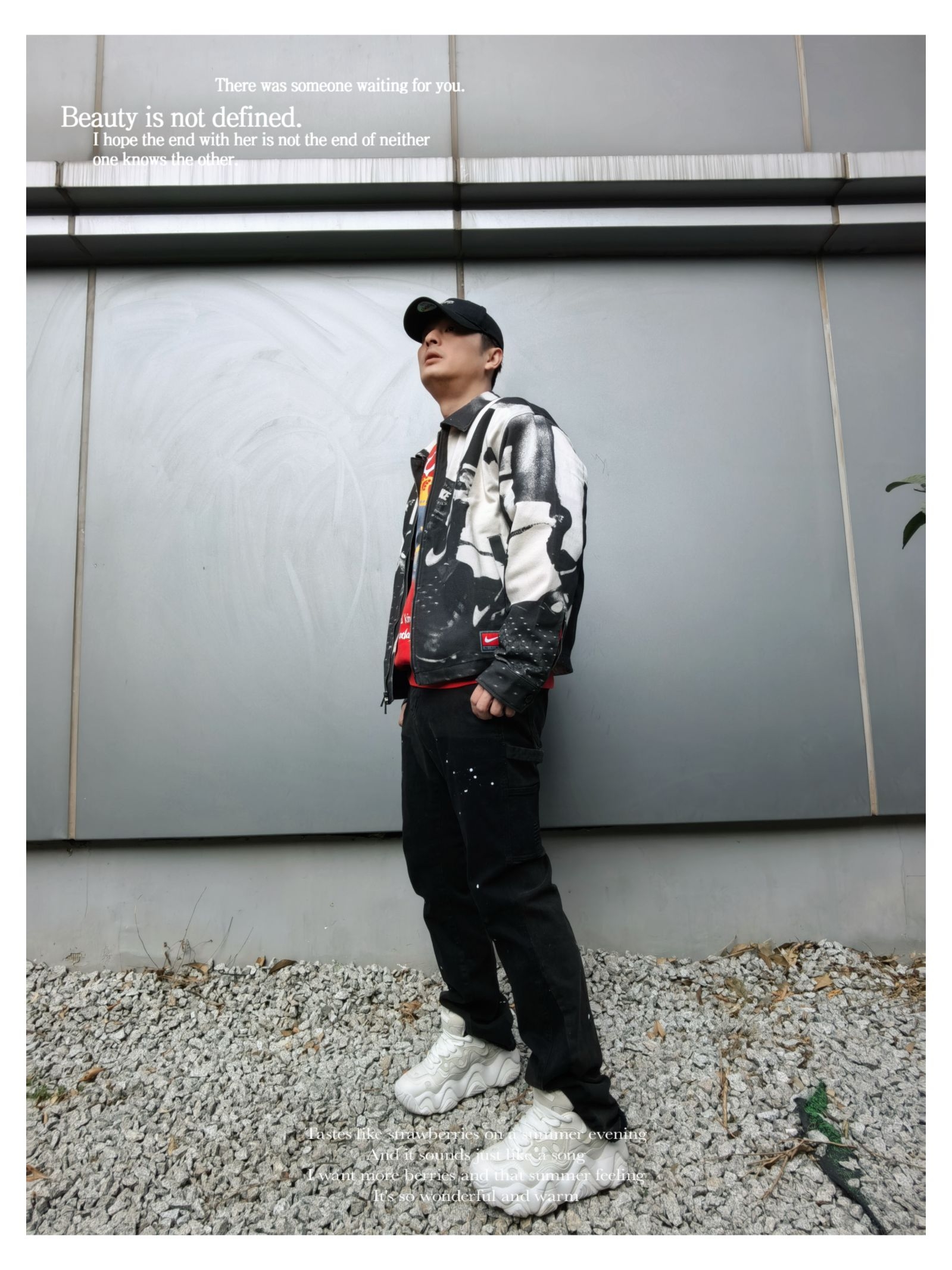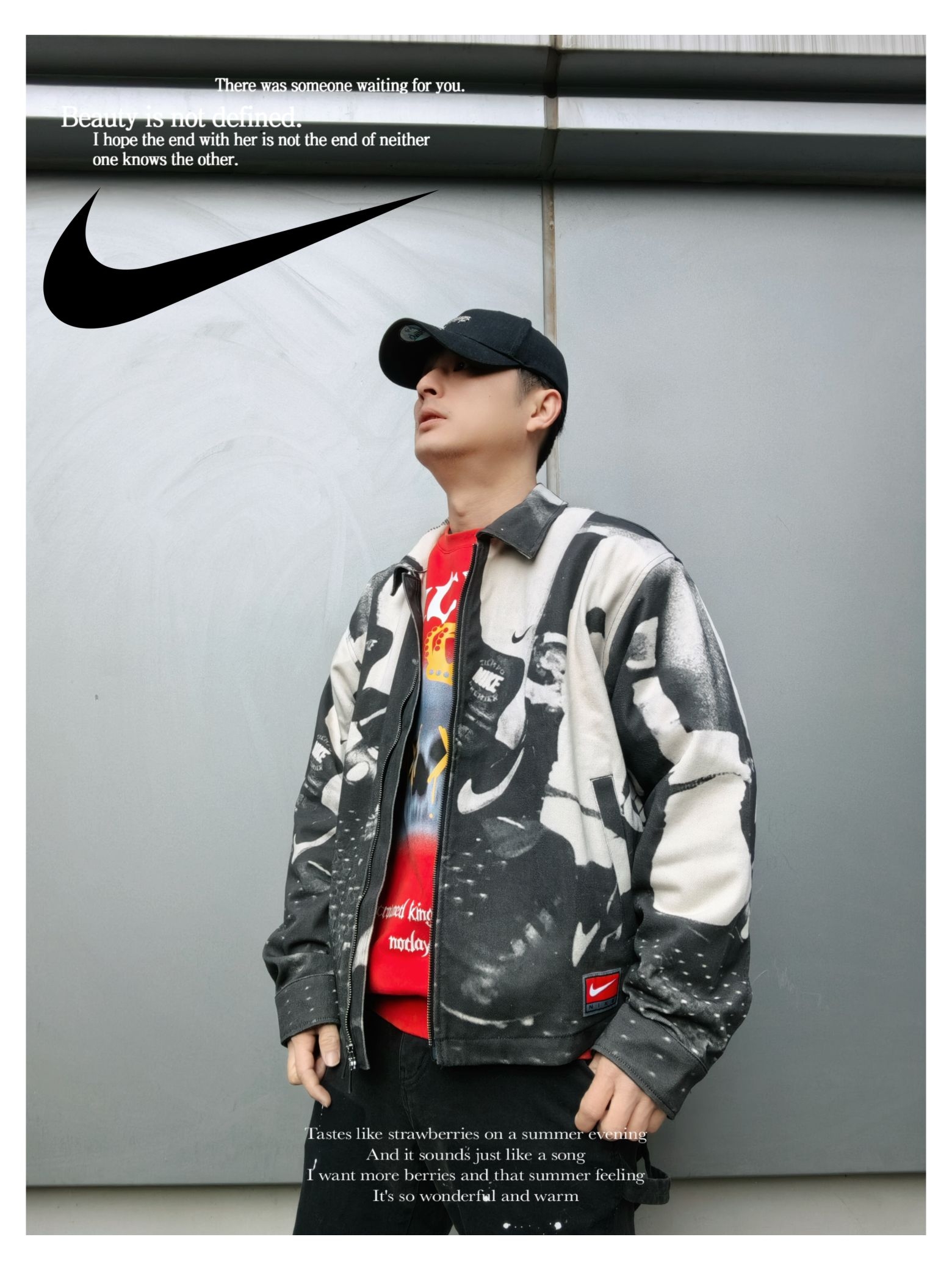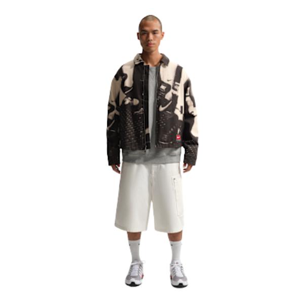 时髦运动户外风早春穿搭 上衣:nike life 户外风 印花休闲夹克 下装:s45 泼墨直筒牛仔裤 厚底老爹鞋出街