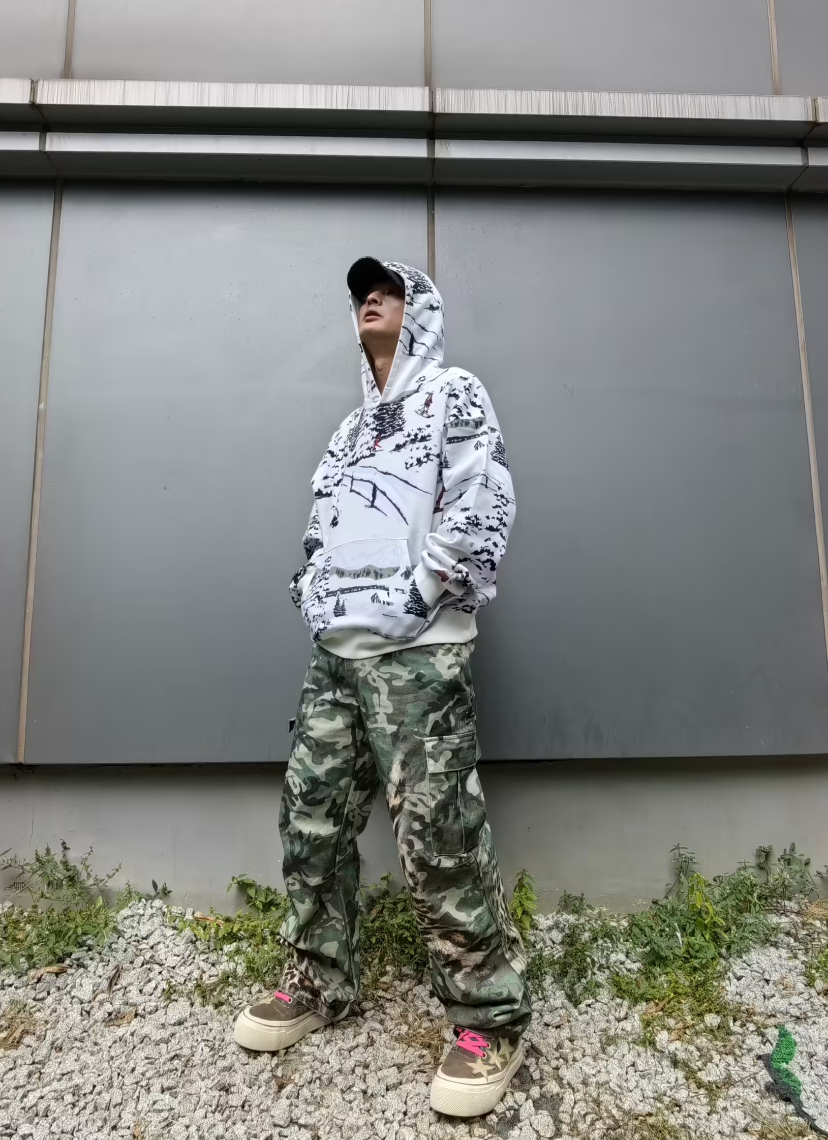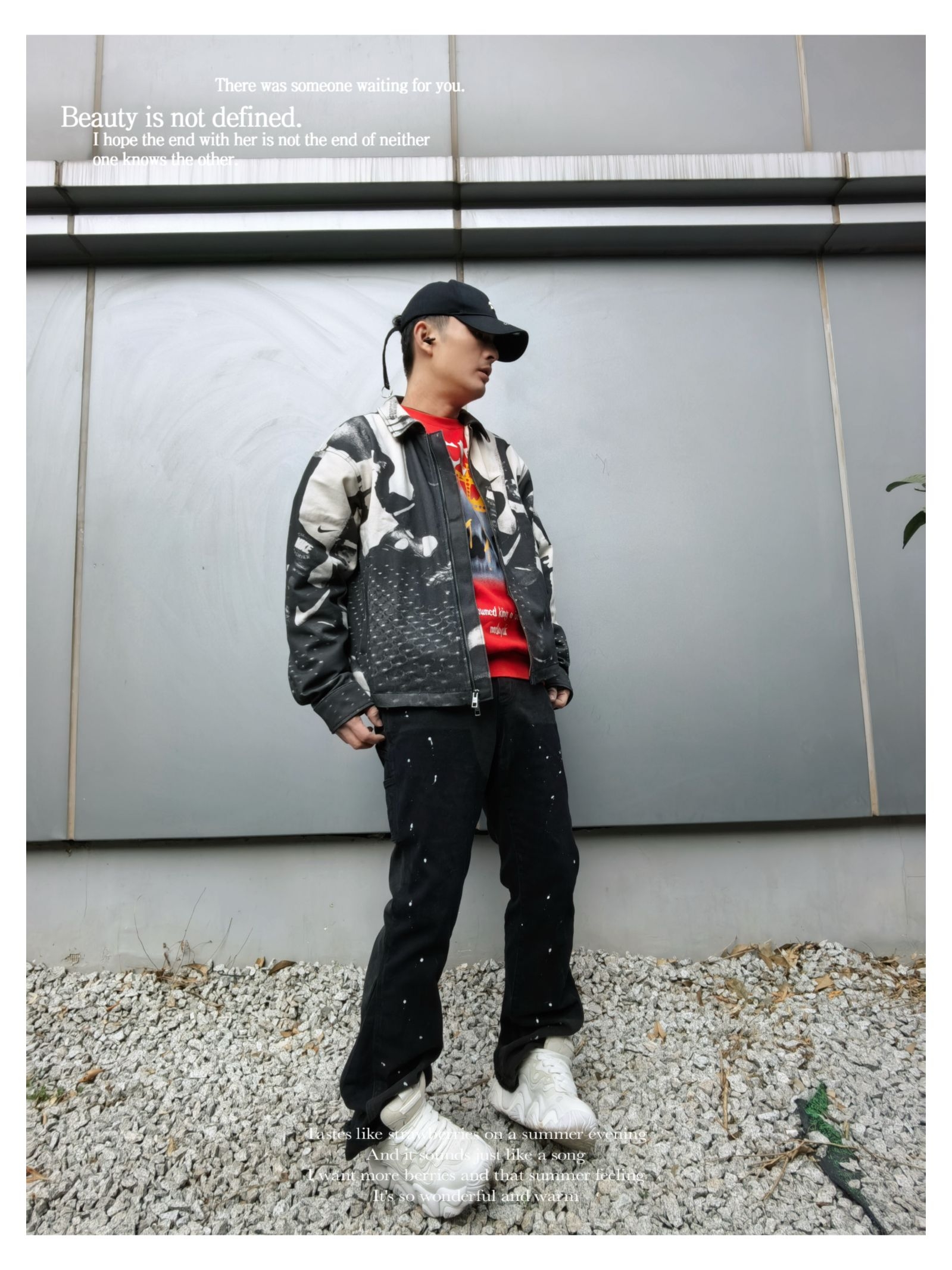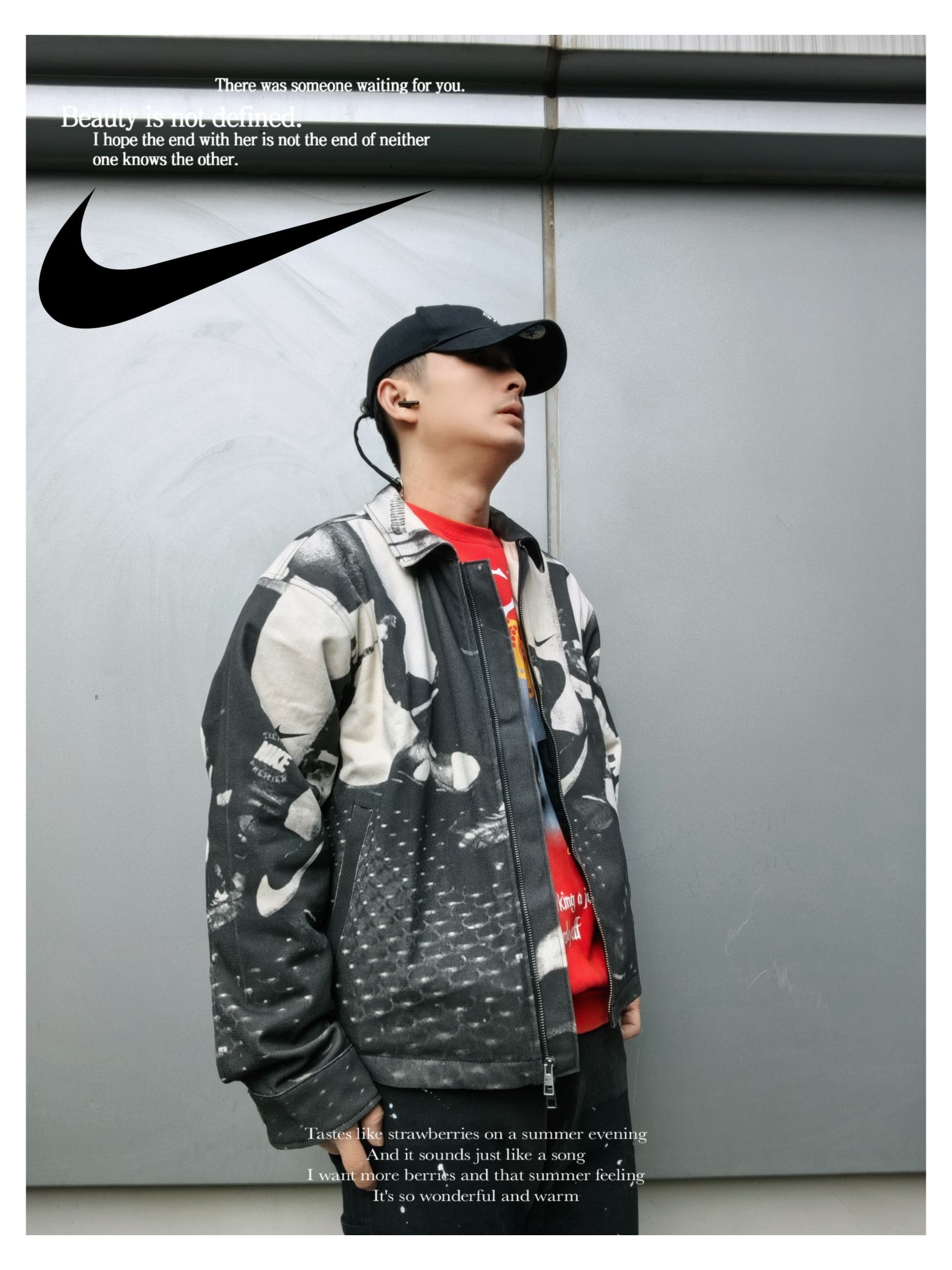 时髦运动户外风早春穿搭 上衣:nike life 户外风 印花休闲夹克 下装:s45 泼墨直筒牛仔裤 厚底老爹鞋出街