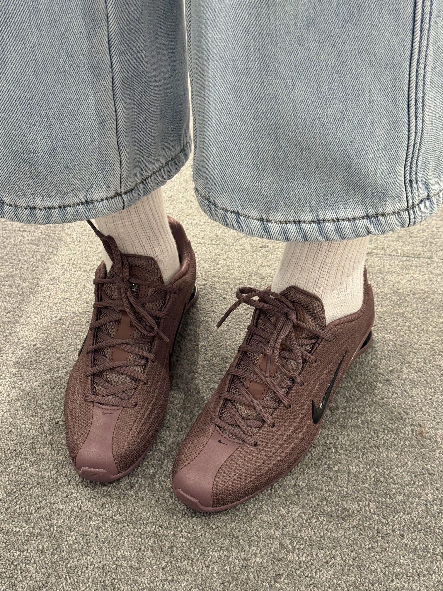 这双巧克力棕的shox真的长在我的审美点上!🥤 低帮的版型搭配阔腿牛仔裤巨显腿细,脚感也很轻,日常通勤暴走都无压力~🦫 棕调的配色低调又有质感,不管搭休闲裤还是运动装都很适配,小众不撞款的快乐谁懂! 📸穿搭小tips:配白色中筒袜能中和深色的厚重感,视觉上更清爽哦~🪺