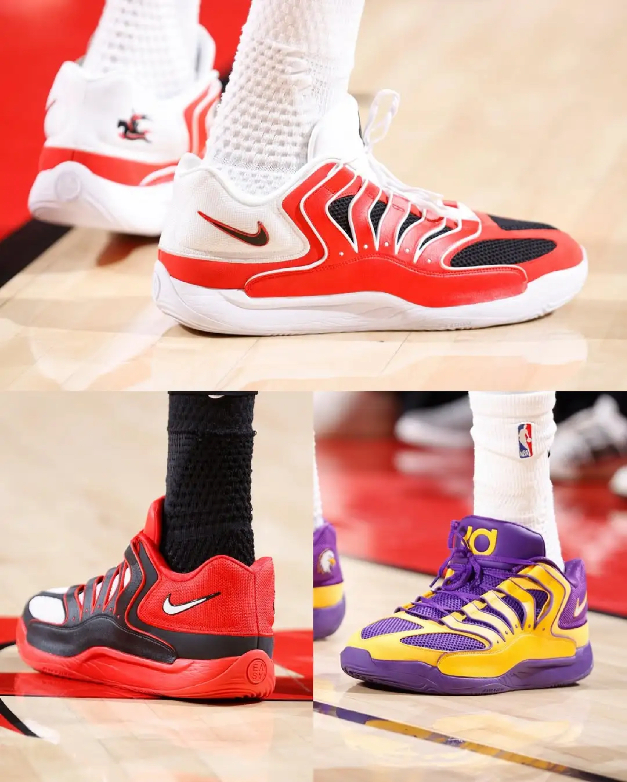 KD18作为耐克为他打造的全新签名战靴,主打舒适与掌控,搭载中足鞋笼,助力赛场表现。鞋款采用低帮设计,耐磨缓震,适合实战党。配色上,红黑橙三色碰撞,视觉冲击力拉满,无论是赛场还是街头,都能轻松吸睛。