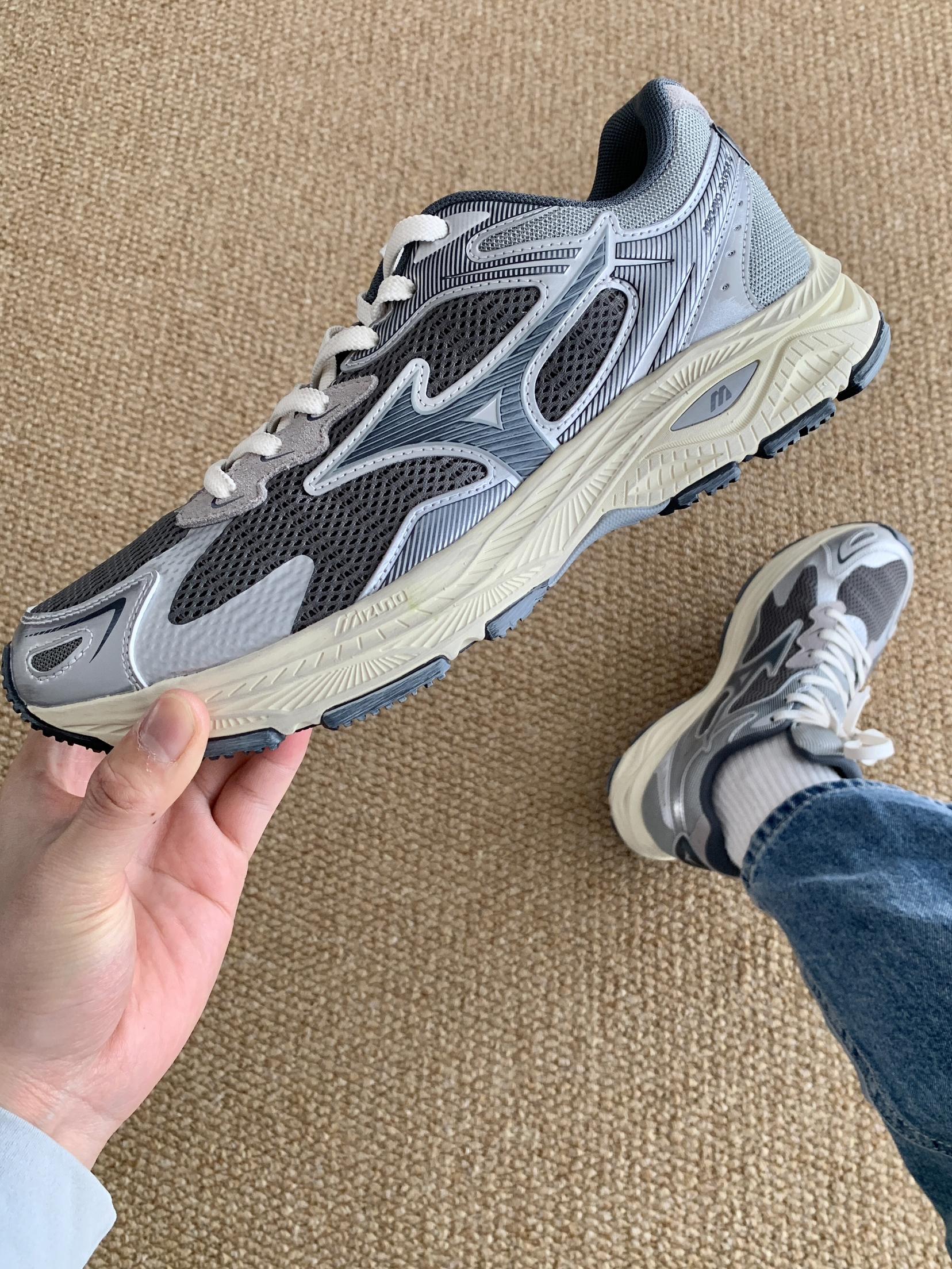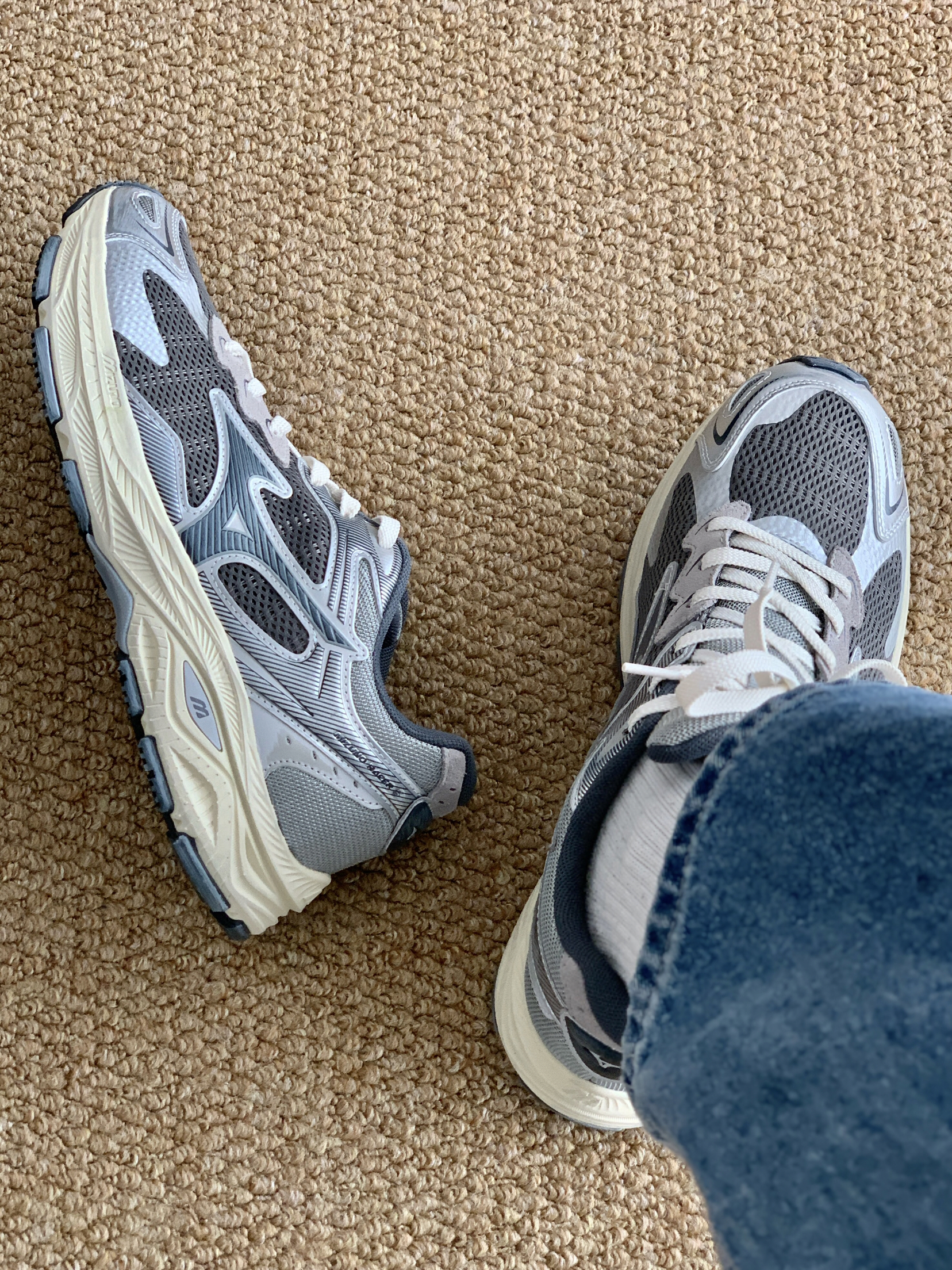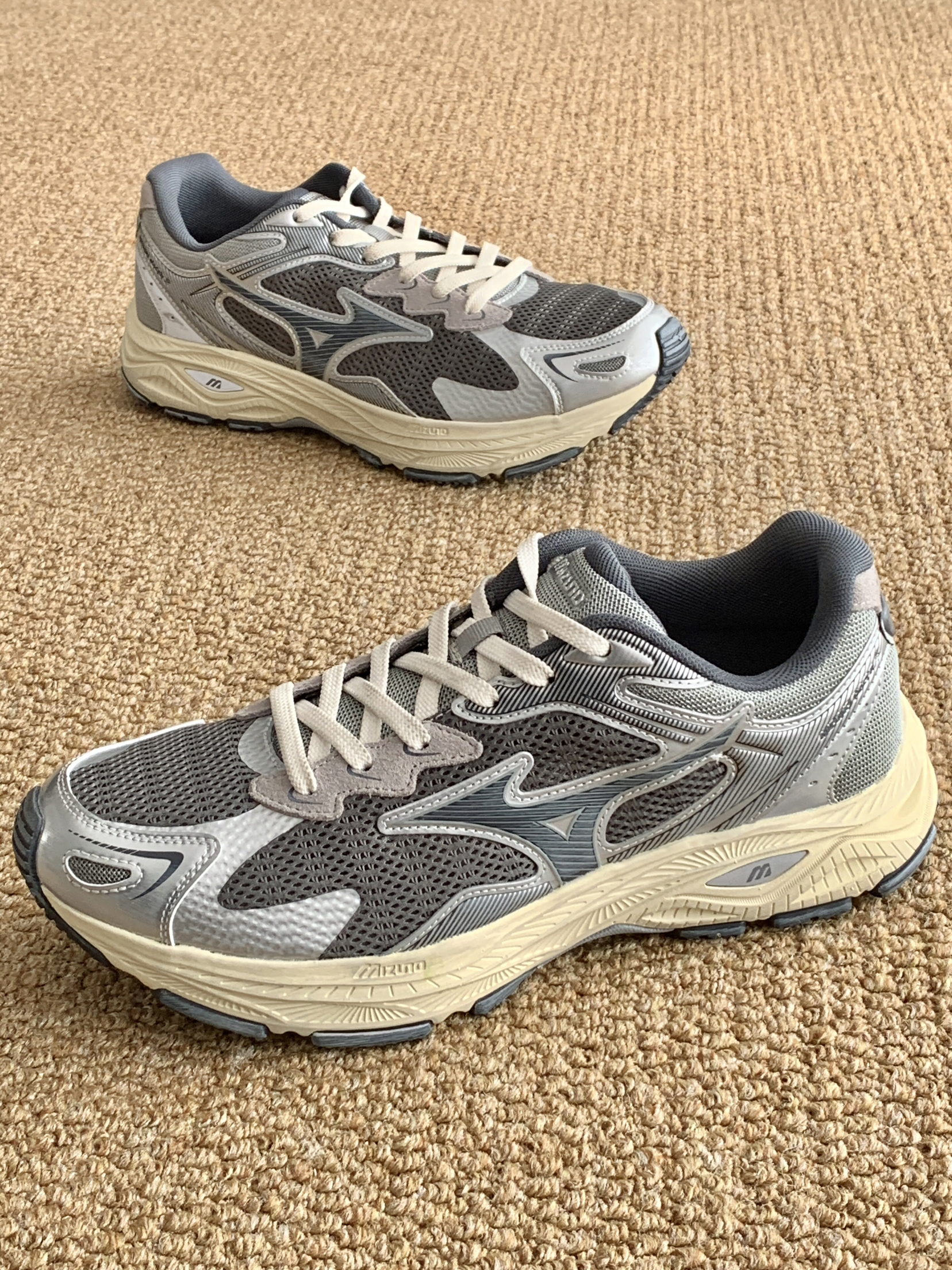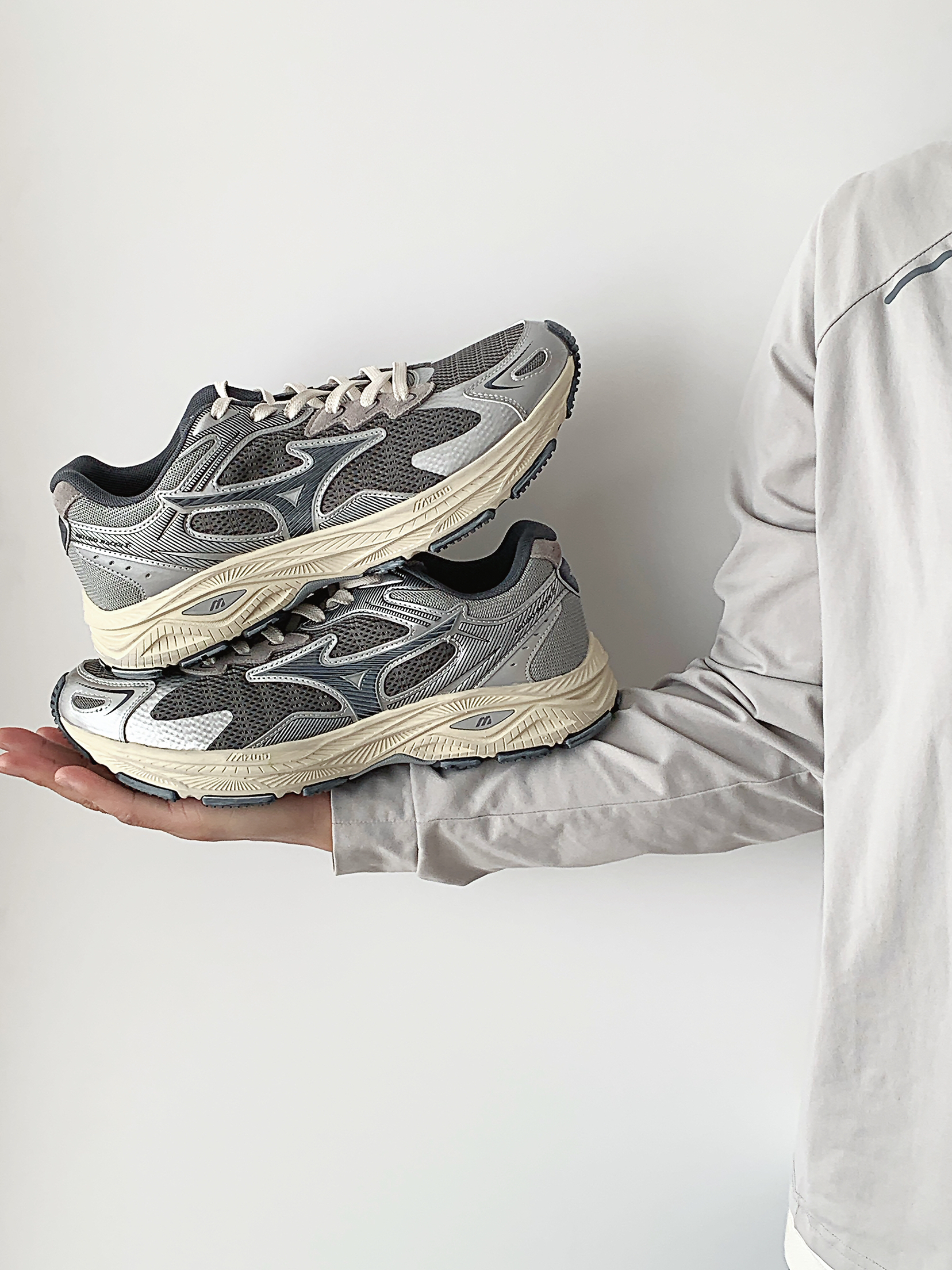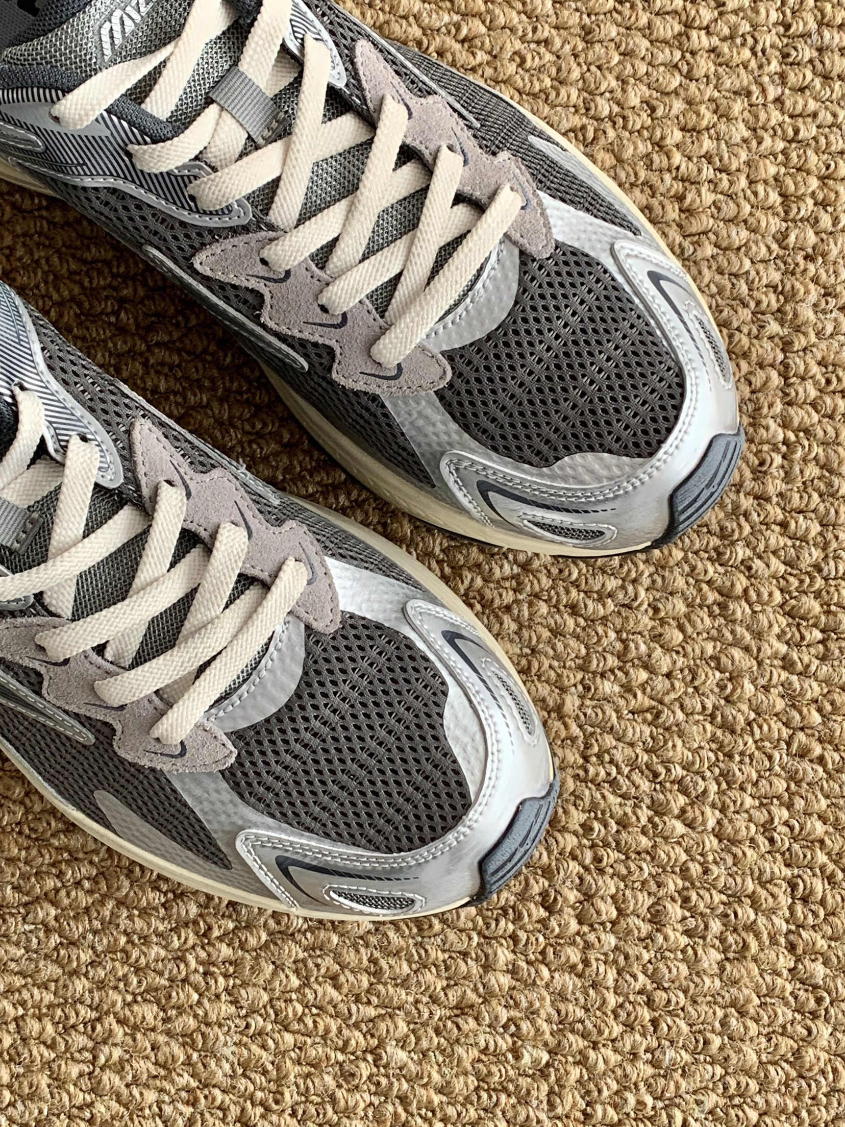 ⚙️配色:未来感与复古感并存的银灰色 ⚙️细节:米色做旧的鞋底蛮有感觉的 ⚙️功能:属于是进可上山退可通勤了 ⚙️季节:网面透气 四季可穿 ⚙️搭配: 依旧是休闲与运动皆可 很好搭