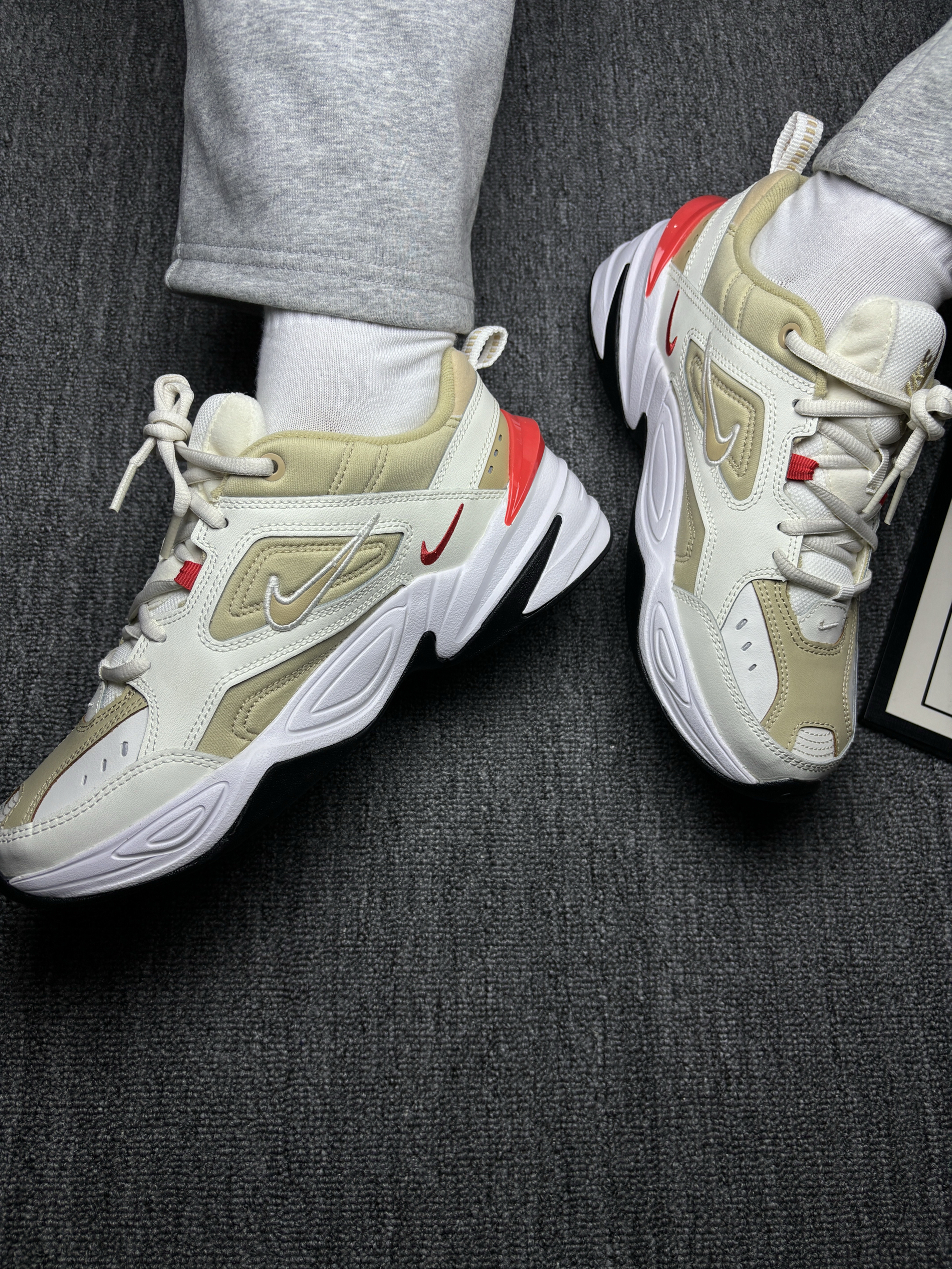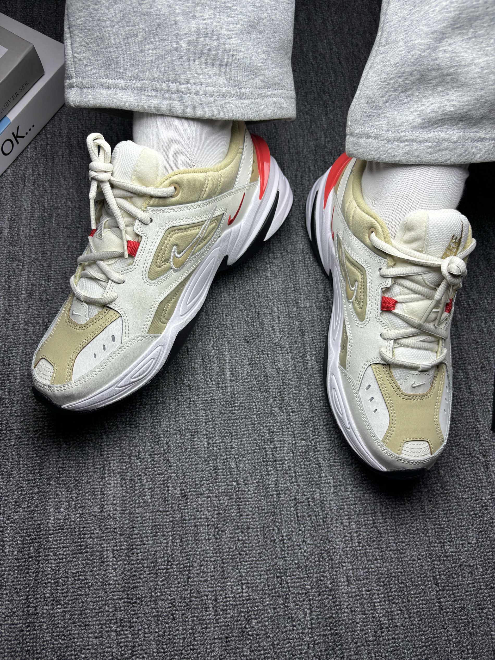 这双宇航员老爹鞋第一眼就被配色吸引住了。整体是偏奶茶色调,看着很柔和,但一点都不寡淡,鞋身上点缀的红色细节刚好起到提亮作用,让整双鞋看起来更有层次,也更有记忆点。老爹鞋的轮廓很明显,厚底、线条感强,上脚之后存在感很足,但又不会显得浮夸。 说说穿着感受和日常搭配👇 脚感依旧是老爹鞋那一挂的稳和厚实,鞋底缓震不错,走路时重心很稳,通勤一整天也不会觉得累。包裹性在线,脚背和后跟都有支撑,穿着很安心。...