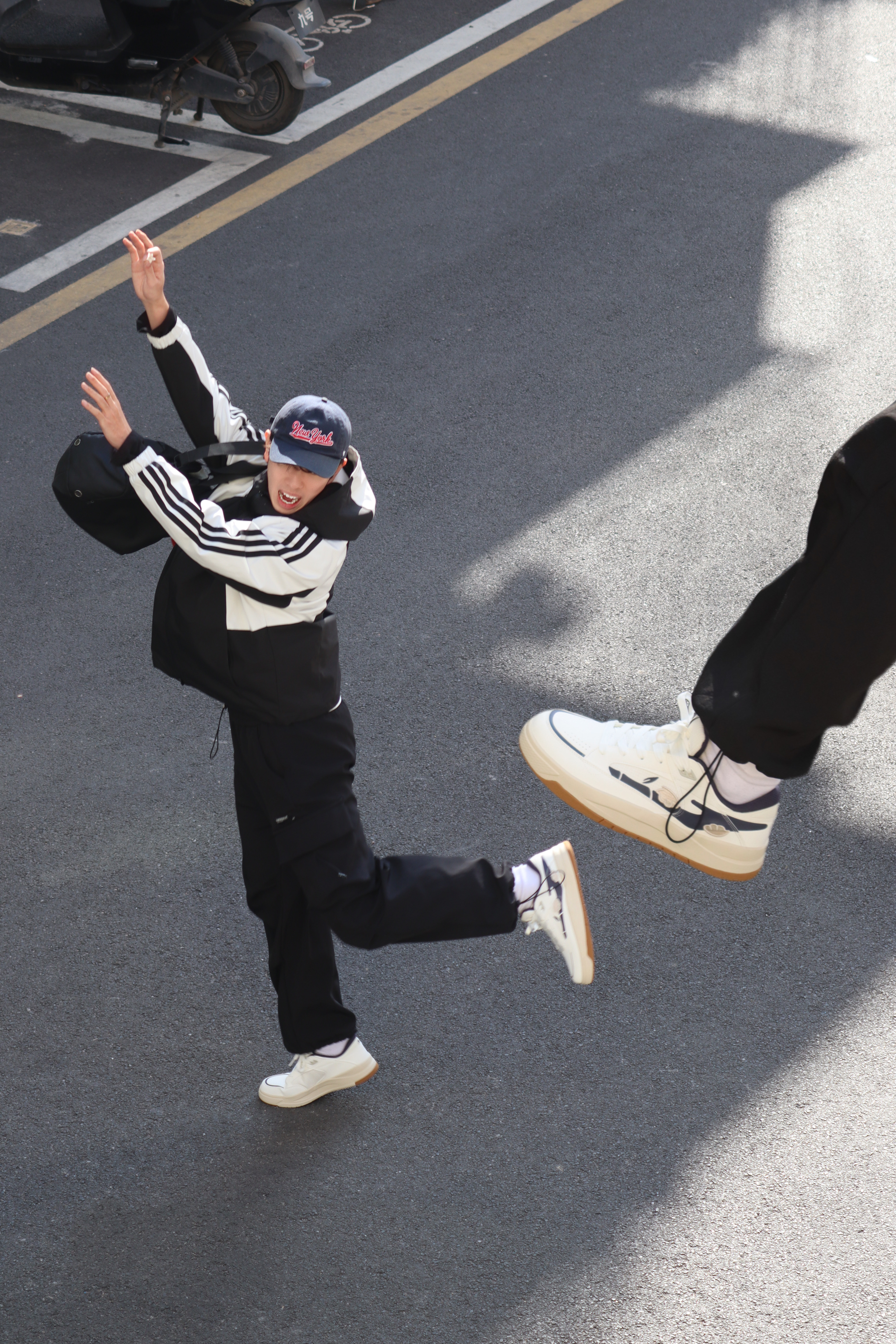 🧍♂️美式街头运动风,黑白撞色+复古校园感,主打一个“简单但不路人”的松弛感,穿出少年气‼️ 👔上衣:经典三条杠设计,防风又有型,内搭白T打底,层次感MAX✅黑白配色不出错,随便一穿就很有美式校园那味儿😎 👖下装:宽松版型对腿型包容度蛮高的,搭配长筒白袜,秒变美式高中生🕶️冬天也能穿出清爽感 👟鞋子:白黑渐变跑鞋,鞋型显脚小🤏渐变设计整体造型更有层次✅鞋子没什么重量,感觉穿上可以框框暴走😆...