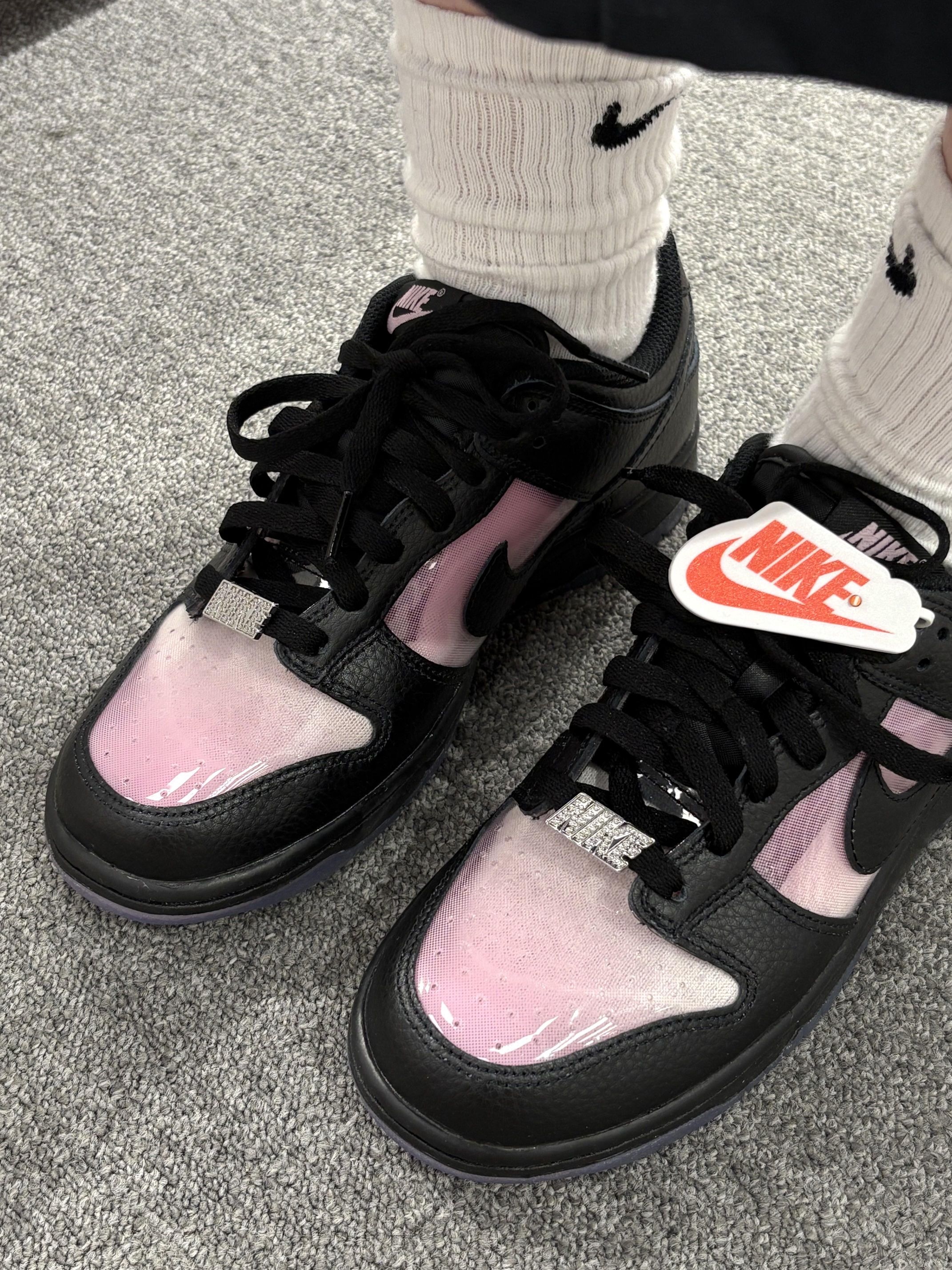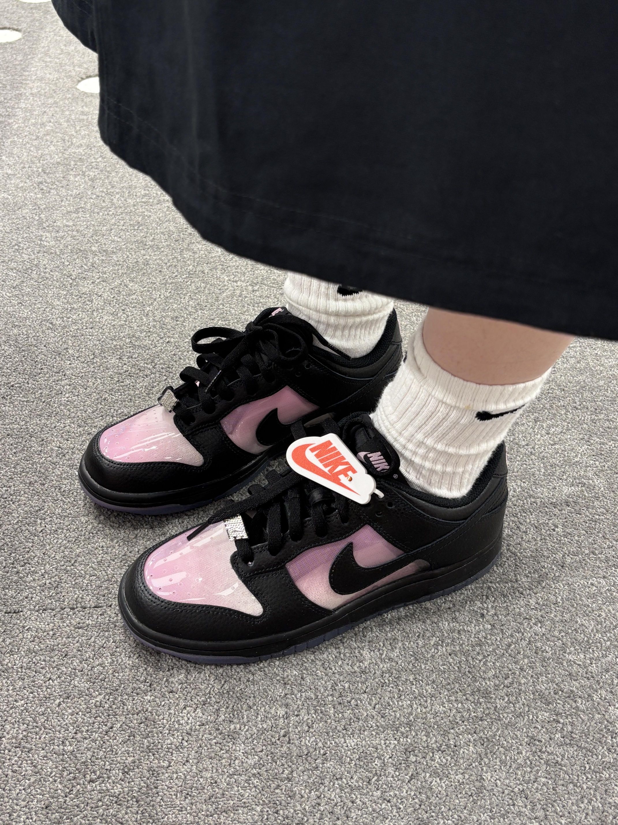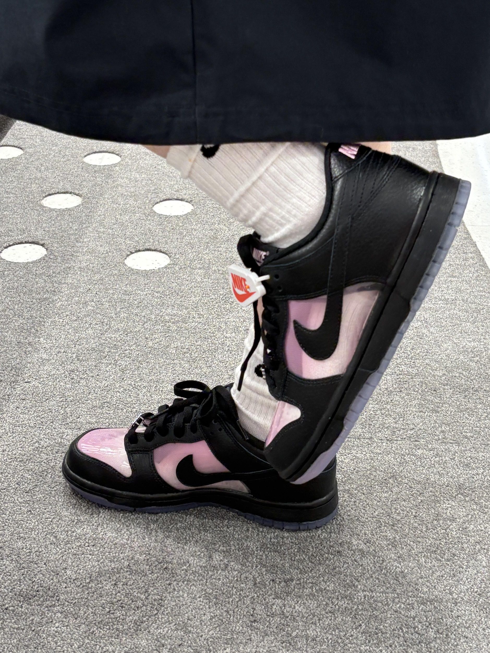 谁能拒绝这双粉黑撞色的Nike鞋啊!!💖 半透明鞋面,别出心裁~🍬 粉粉的部分像甜甜的马卡龙,🍰 和酷黑搭配在一起,又甜又飒~ 上脚很舒服,而且巨巨巨百搭,🍦 休闲风、甜酷风都能轻松hold住,出街回头率直接拉满✨