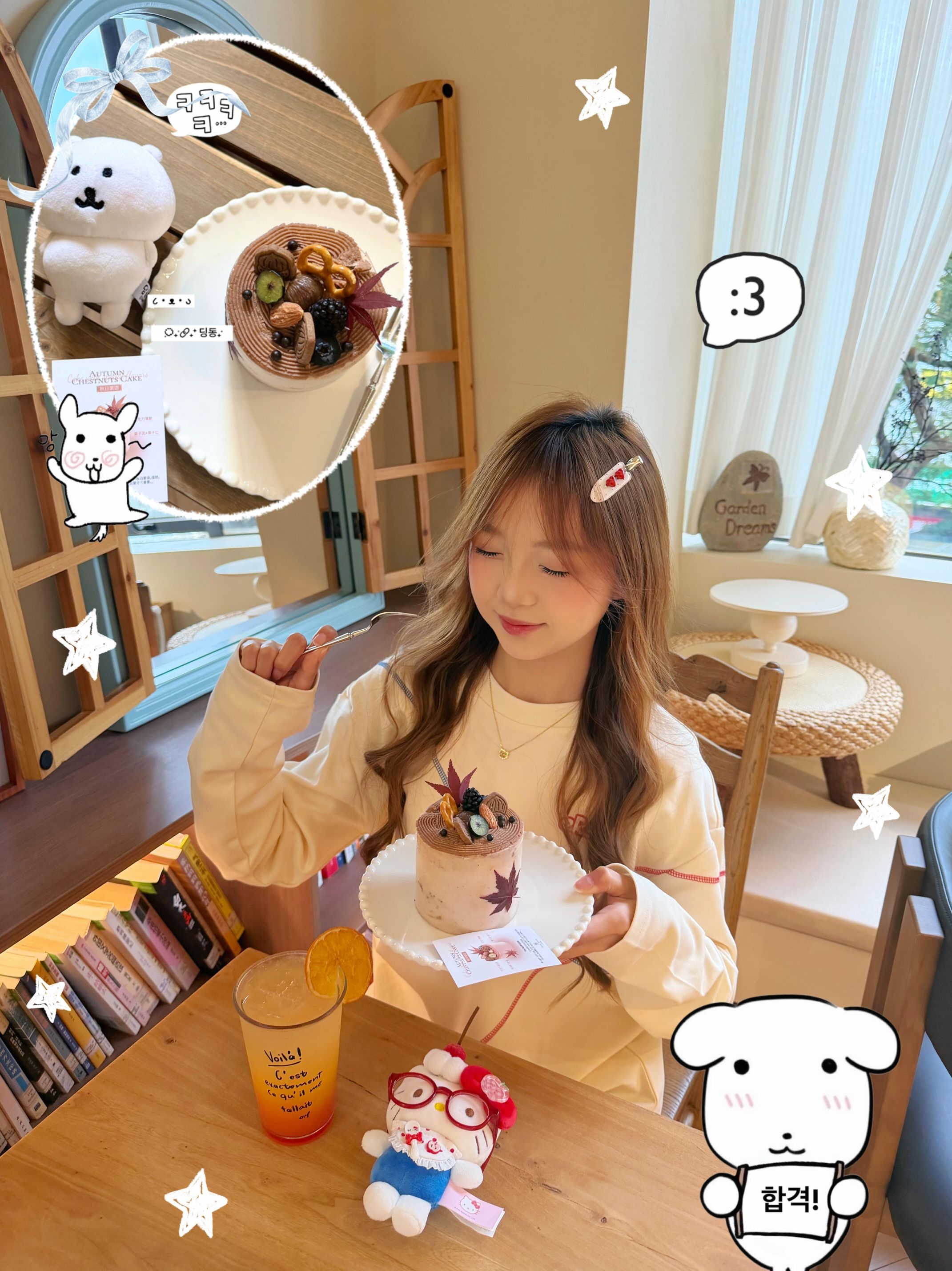 又来子路制造吃糕啦 上新的🌰栗子蛋糕我太爱噜!!🍰是有一整颗的栗子 顶部还有栗子泥和坚果碎 整体吃起来口感很丰富!甜度也刚好 搭配气泡🍹完全不腻!爱吃栗子的宝子们快冲!! 环境:店内装修整体温馨木质风格🚪 我们下午两三点时候到的 光线好好 和朋友👭在这度过了一个松弛的下午时光~